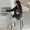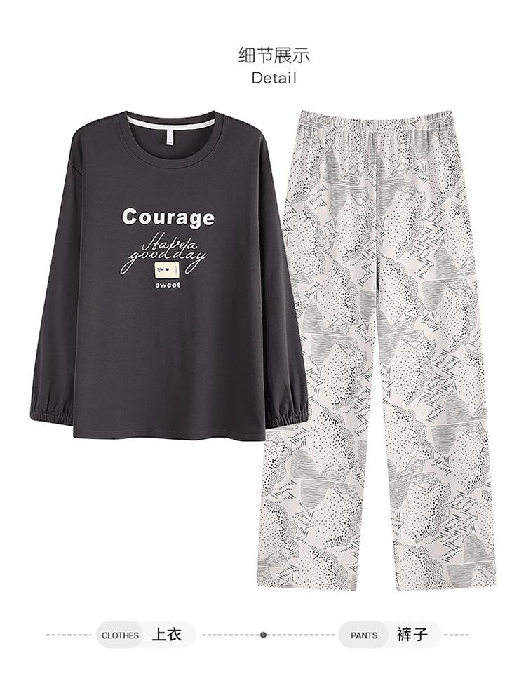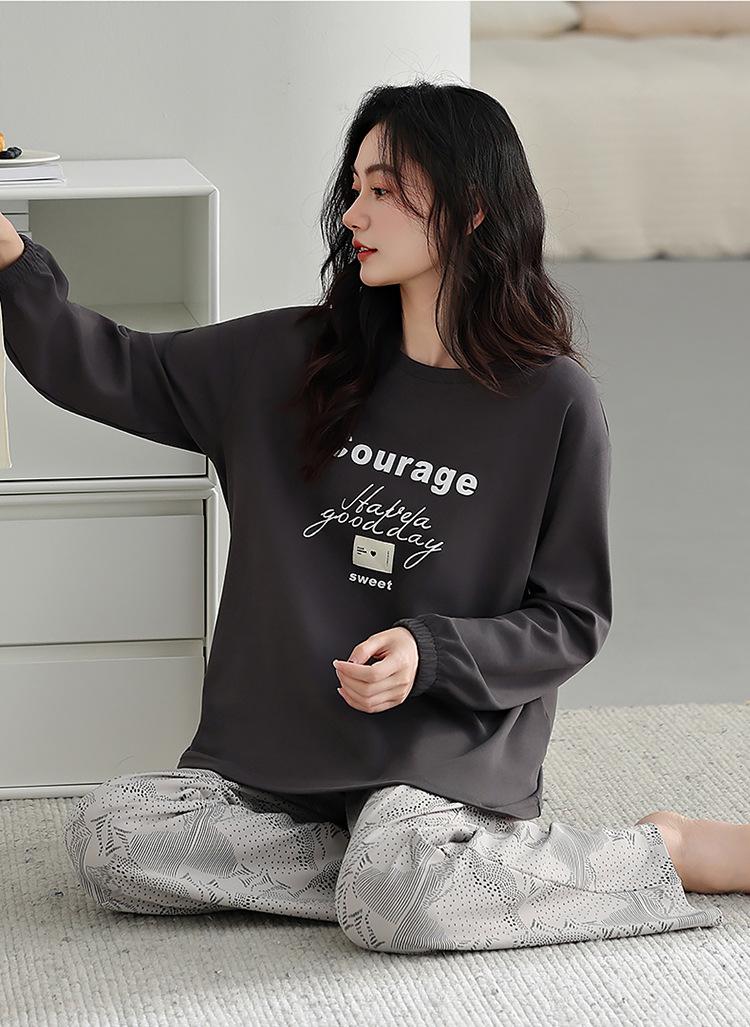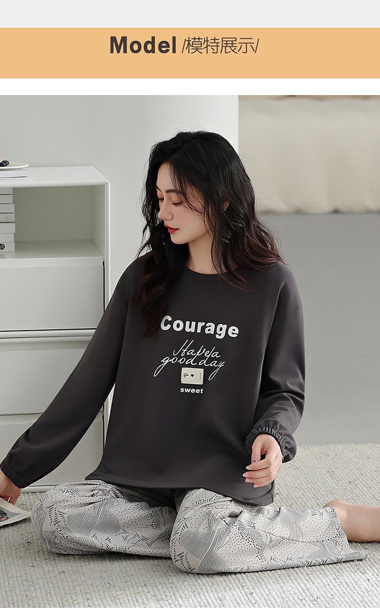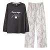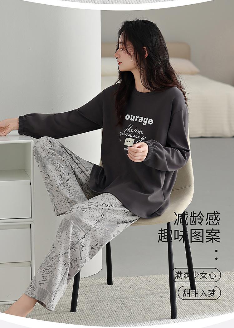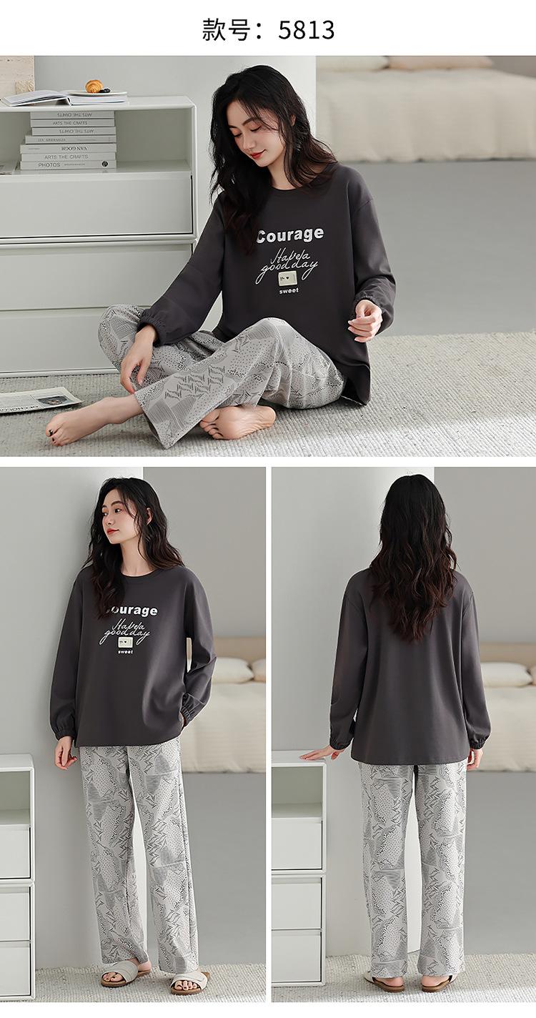 Nuevo Estilo de Primavera y Otoño 100% Algodón Puro Manga Larga Pantalón Largo Cuello Redondo Holgado Casual Pijama Ropa para el Hogar Se Puede Usar Afuera Mujer