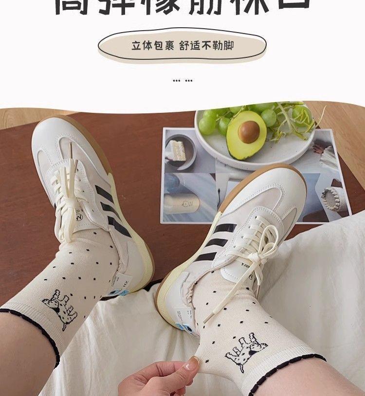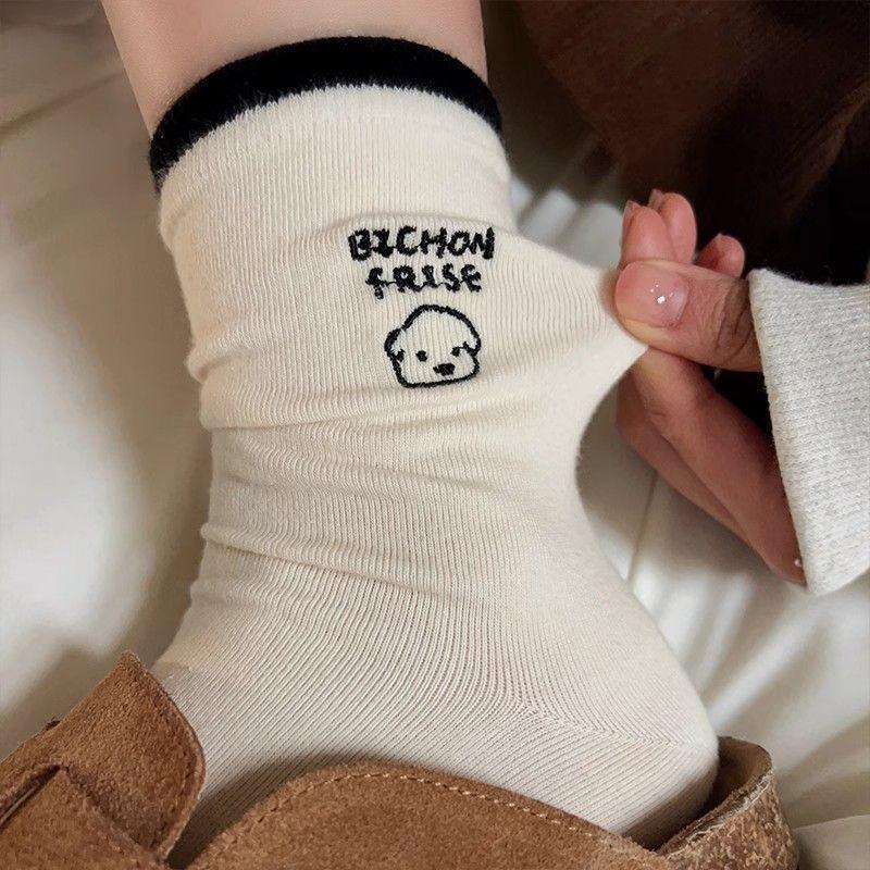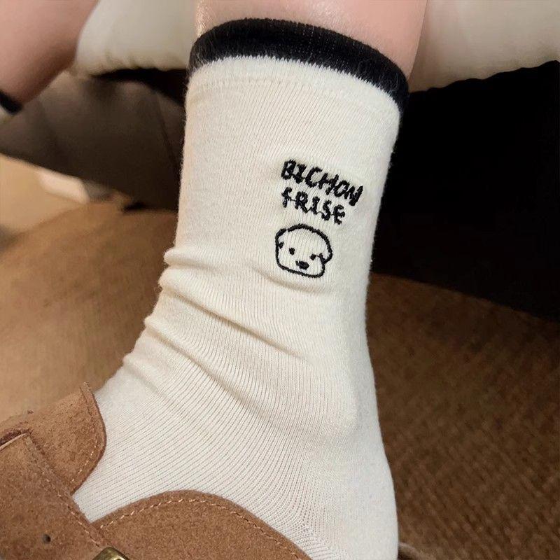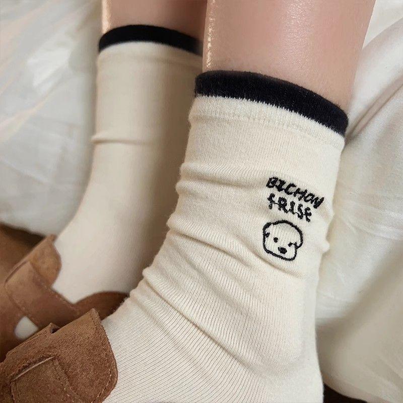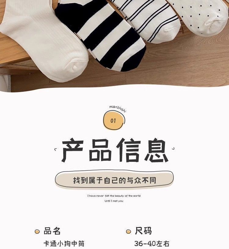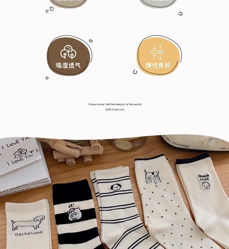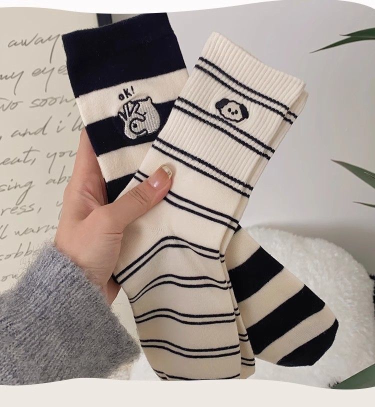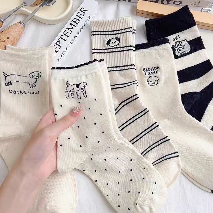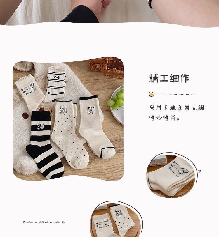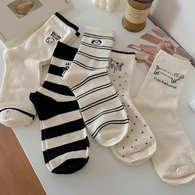 Calcetines de mujer de verano hasta media pantorrilla ins calcetines modernos de rayas de cachorro calcetines de dibujos animados lindos estilo de verano calcetines largos japoneses lindos de estudiante