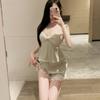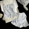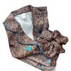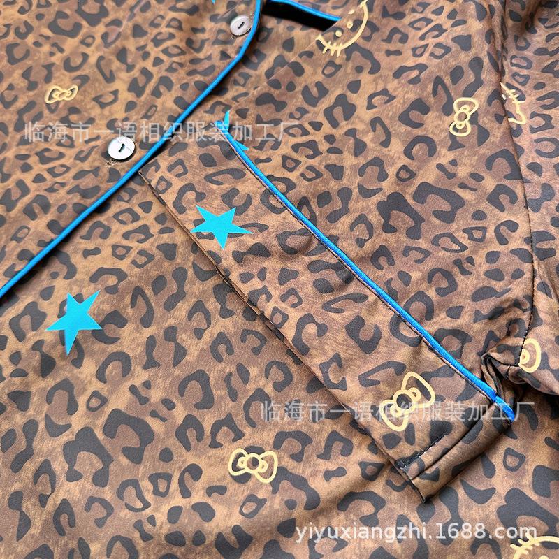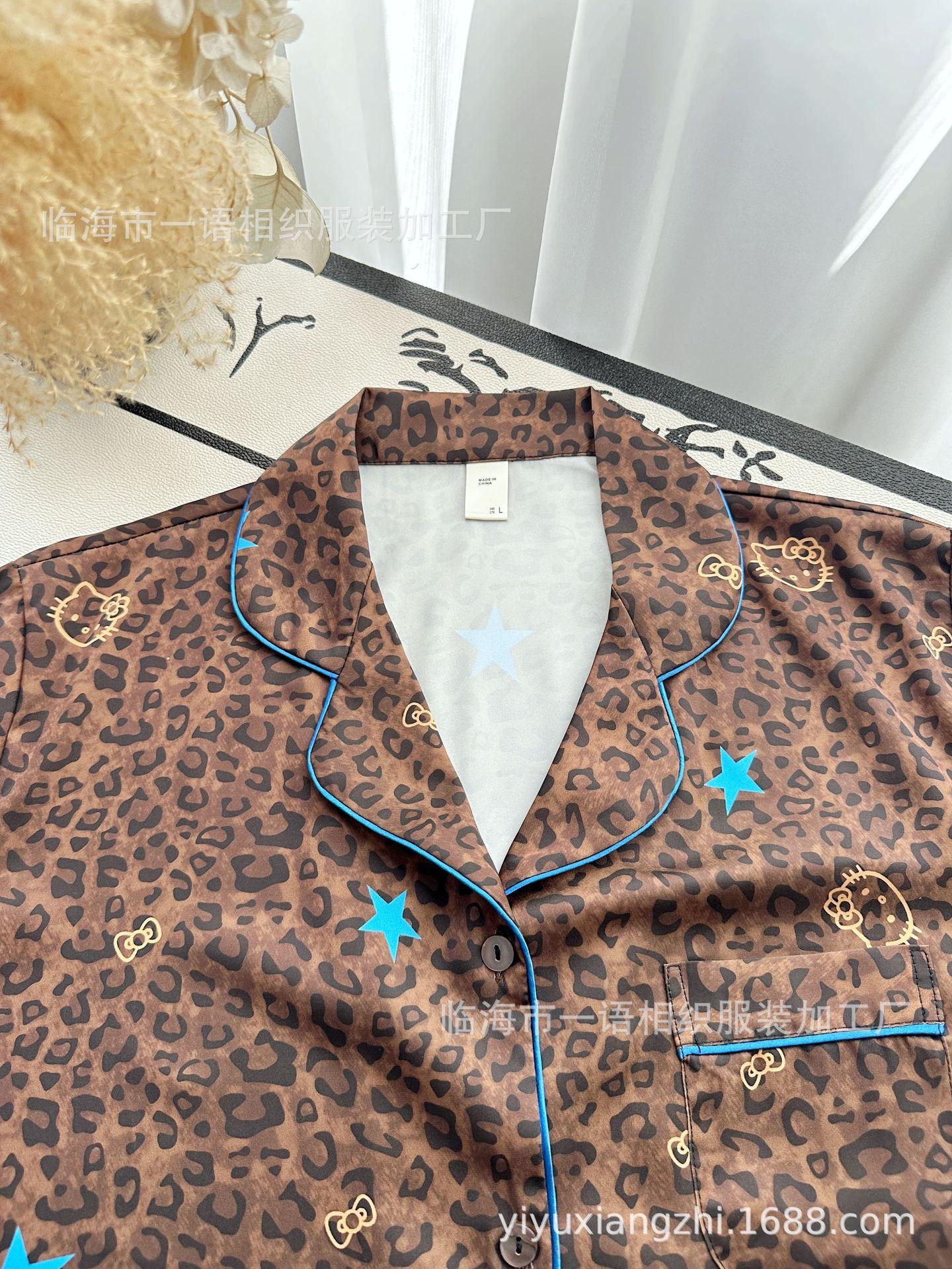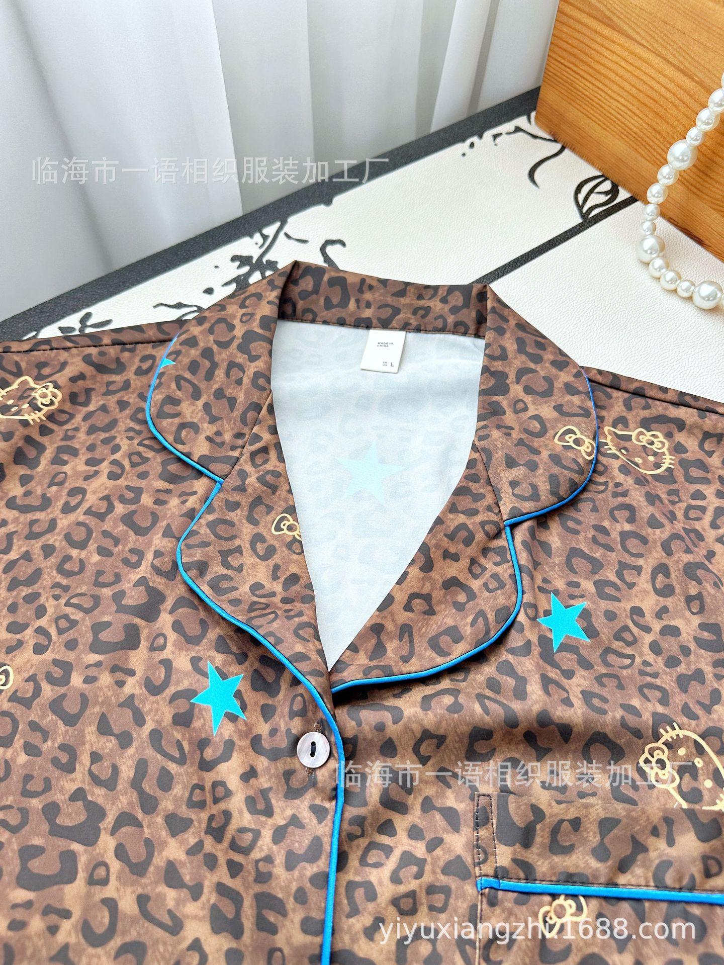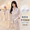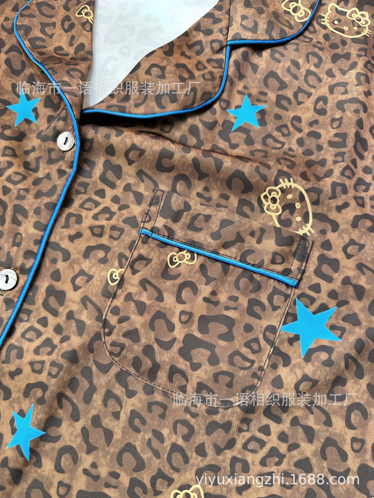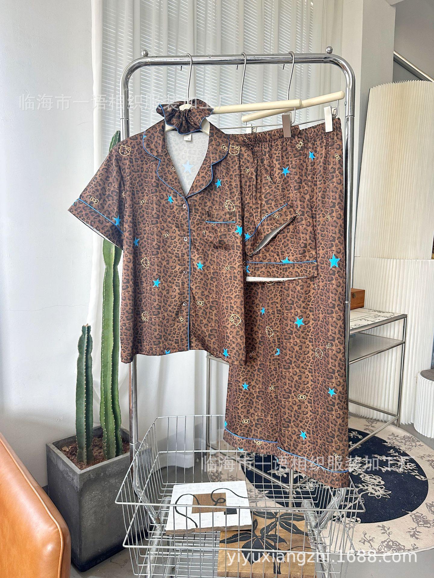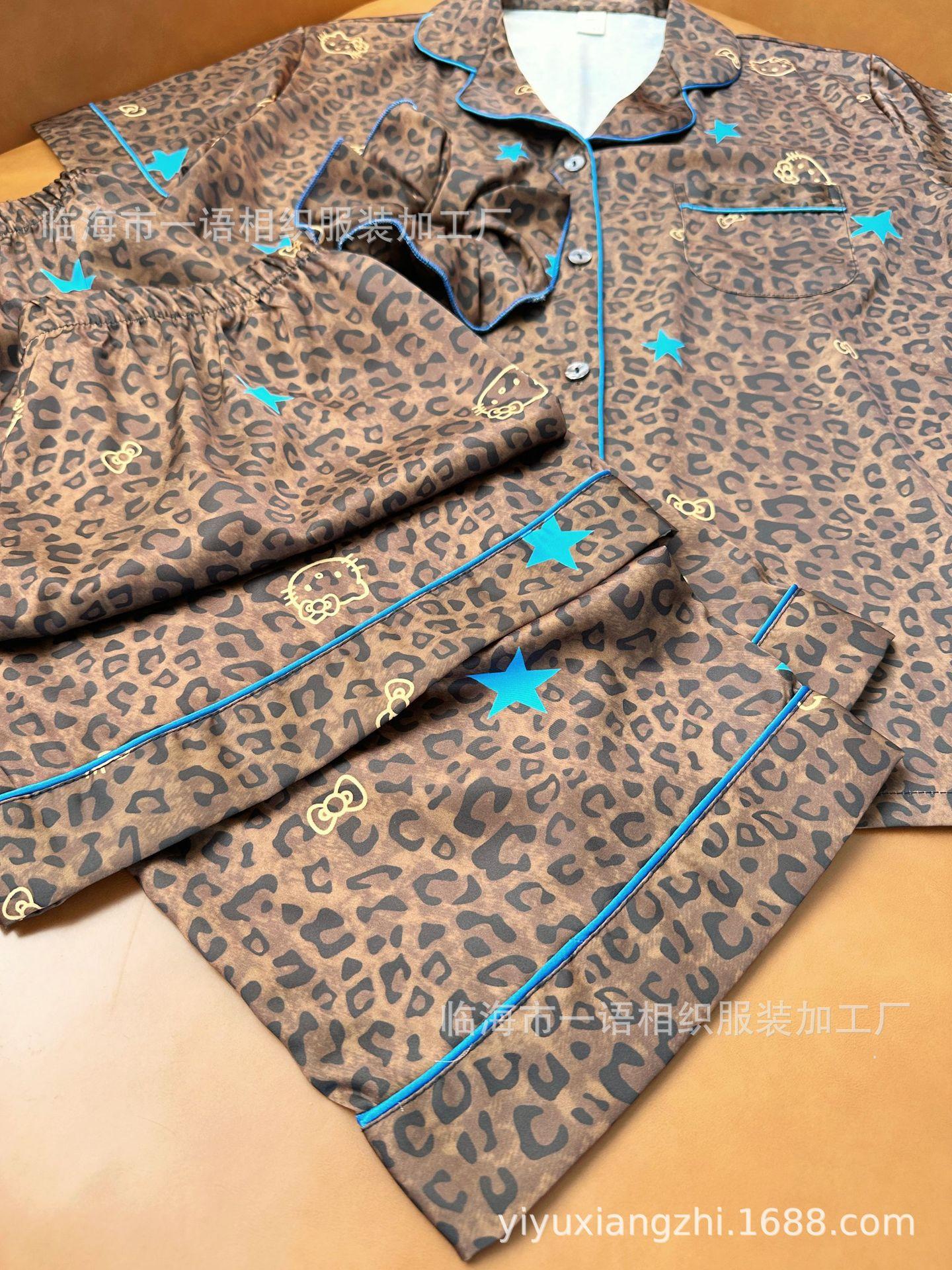 Conjunto de tres piezas Otoño Nueva Estrella KT con Lazo para el Cabello Pijama de Seda de Hielo para Mujer Solapa Delgado Conjunto de Ropa de Casa para Mujer