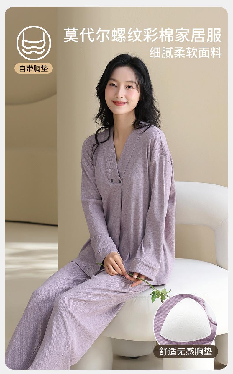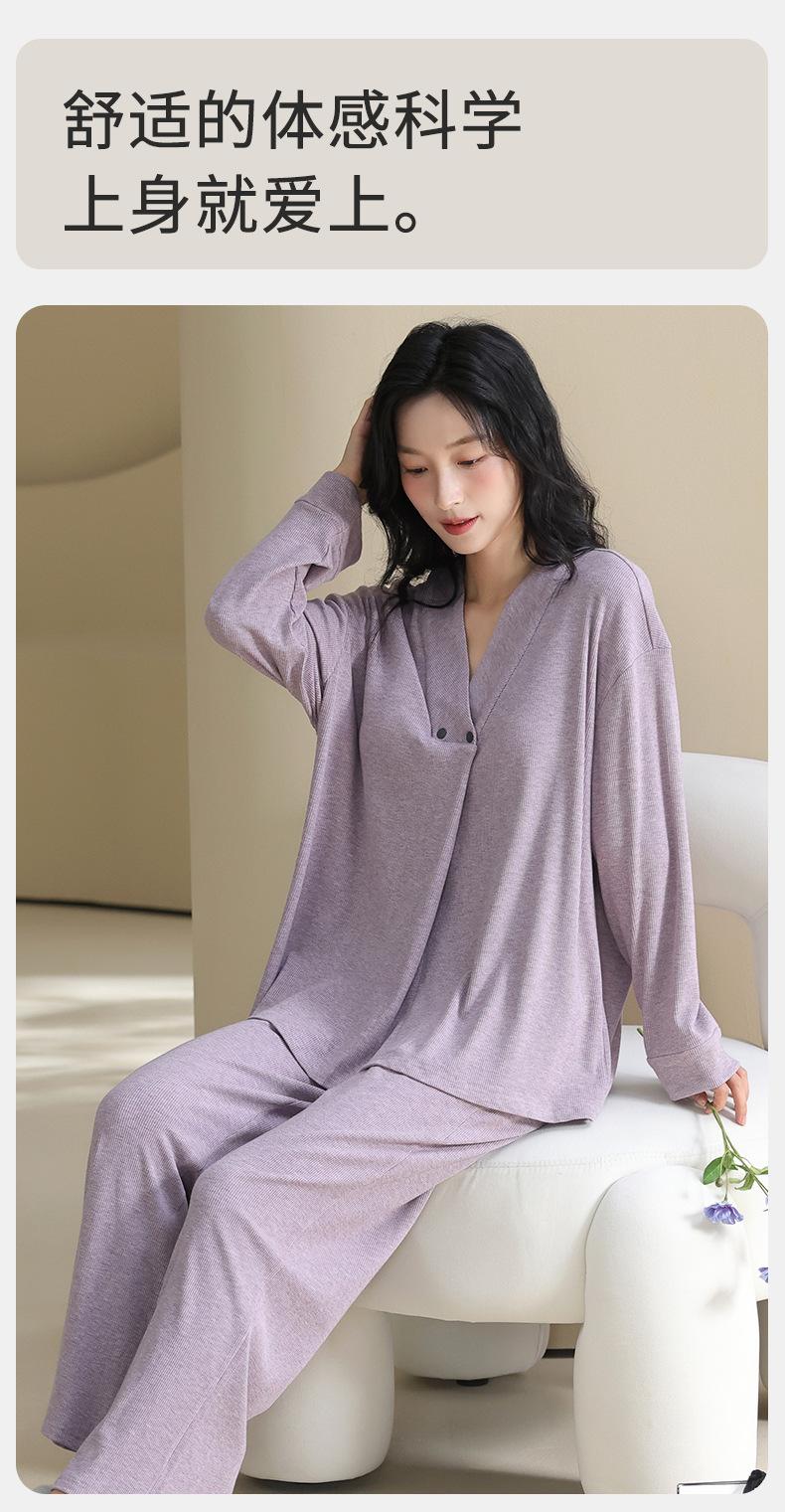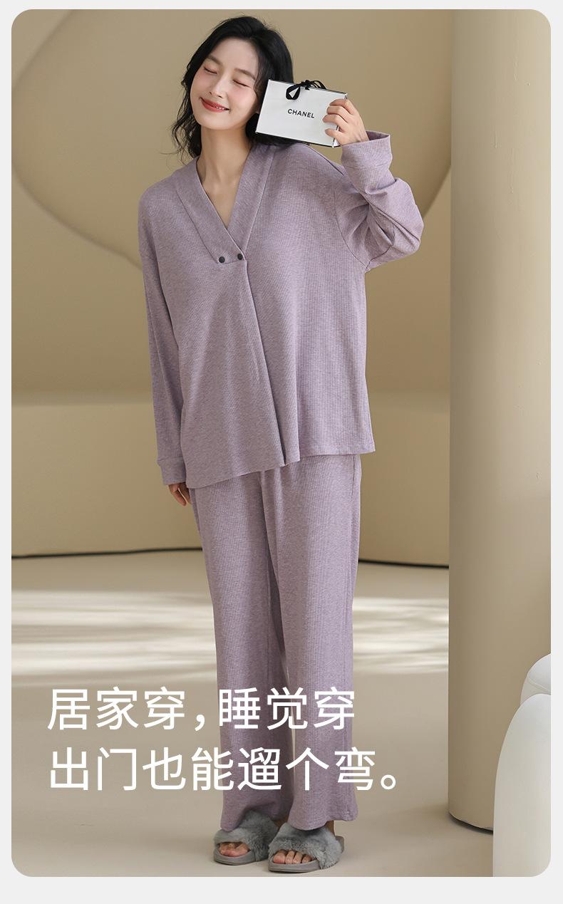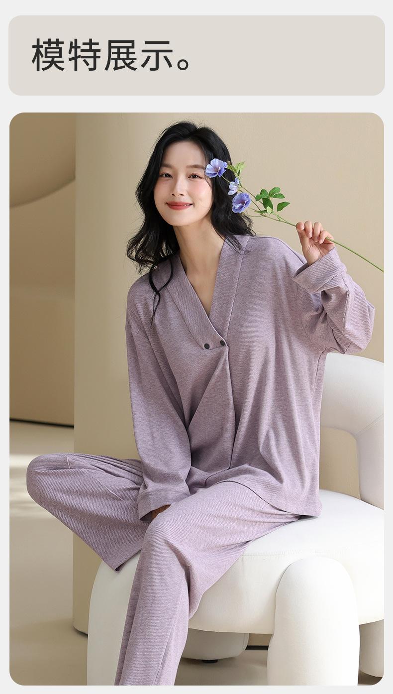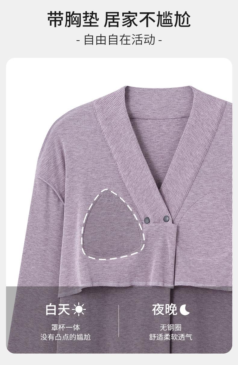 Xi Yue Nuevo Color Modal Algodón Acanalado con Almohadilla para el Busto Ropa de Maternidad Temporada Primavera Otoño Mujeres Embarazadas Lactancia Pijamas Dulces
