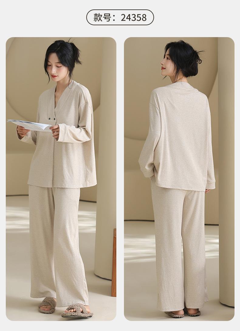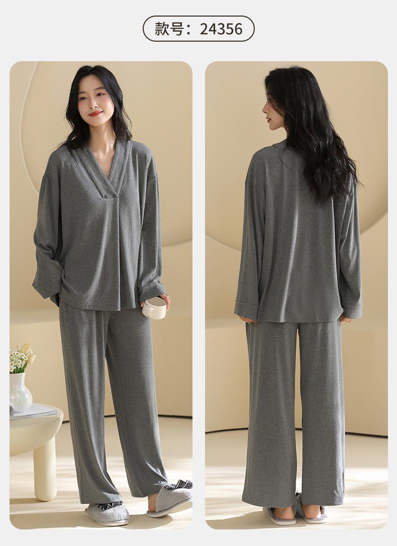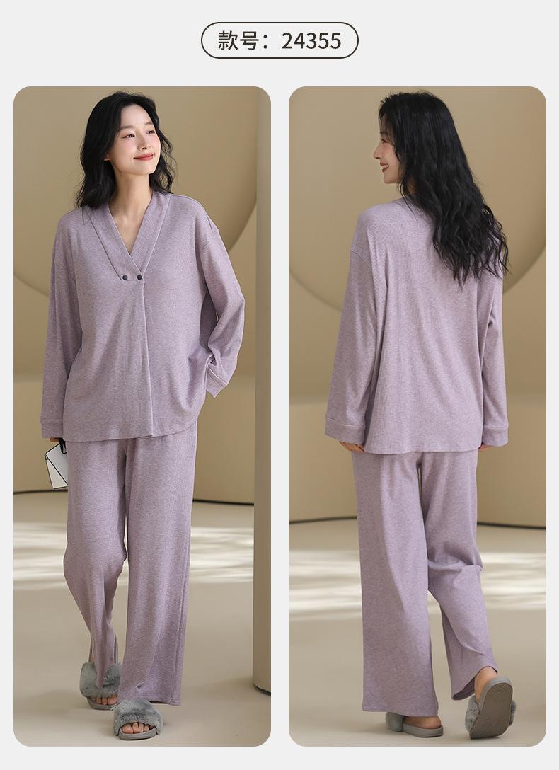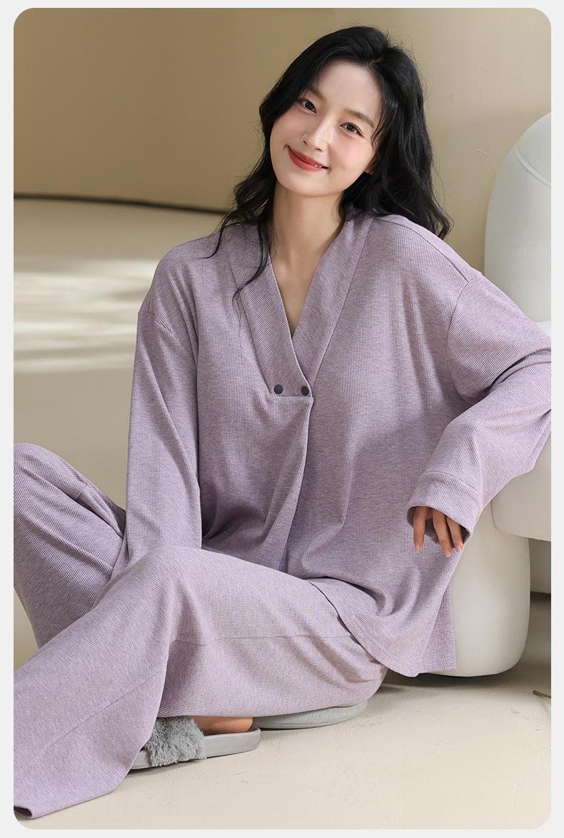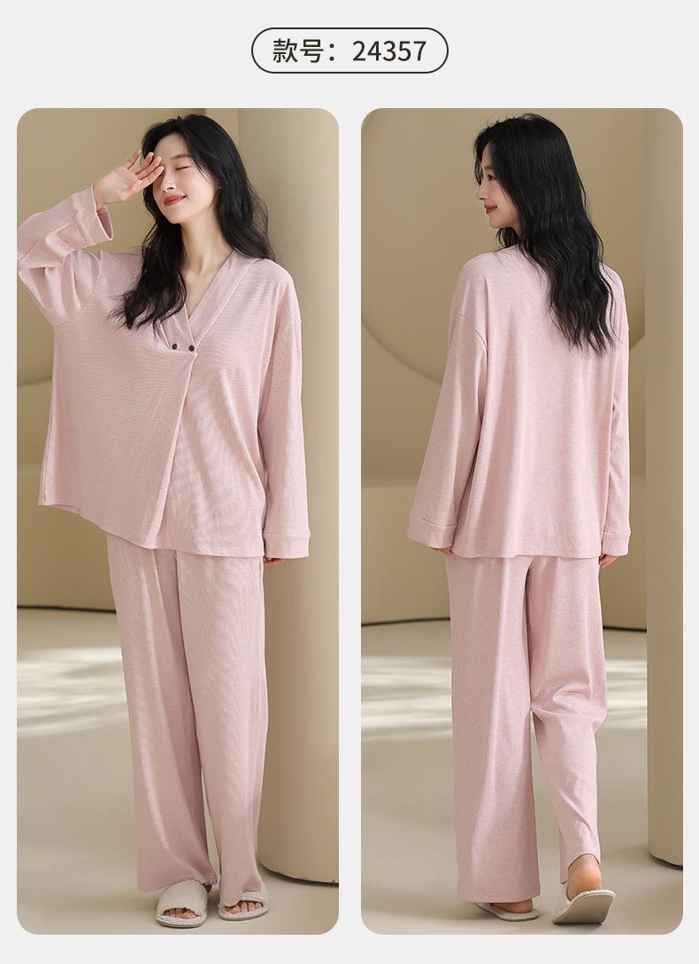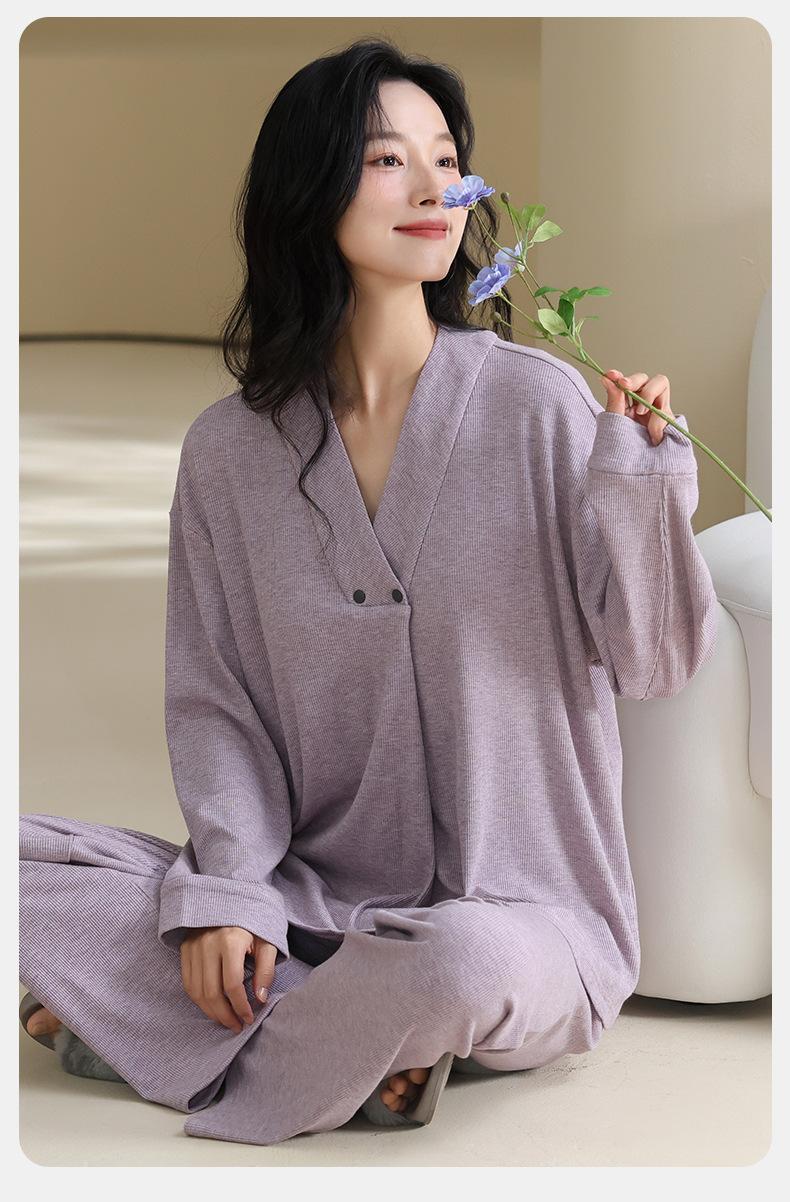 Xi Yue Nuevo Color Modal Algodón Acanalado con Almohadilla para el Busto Ropa de Maternidad Temporada Primavera Otoño Mujeres Embarazadas Lactancia Pijamas Dulces