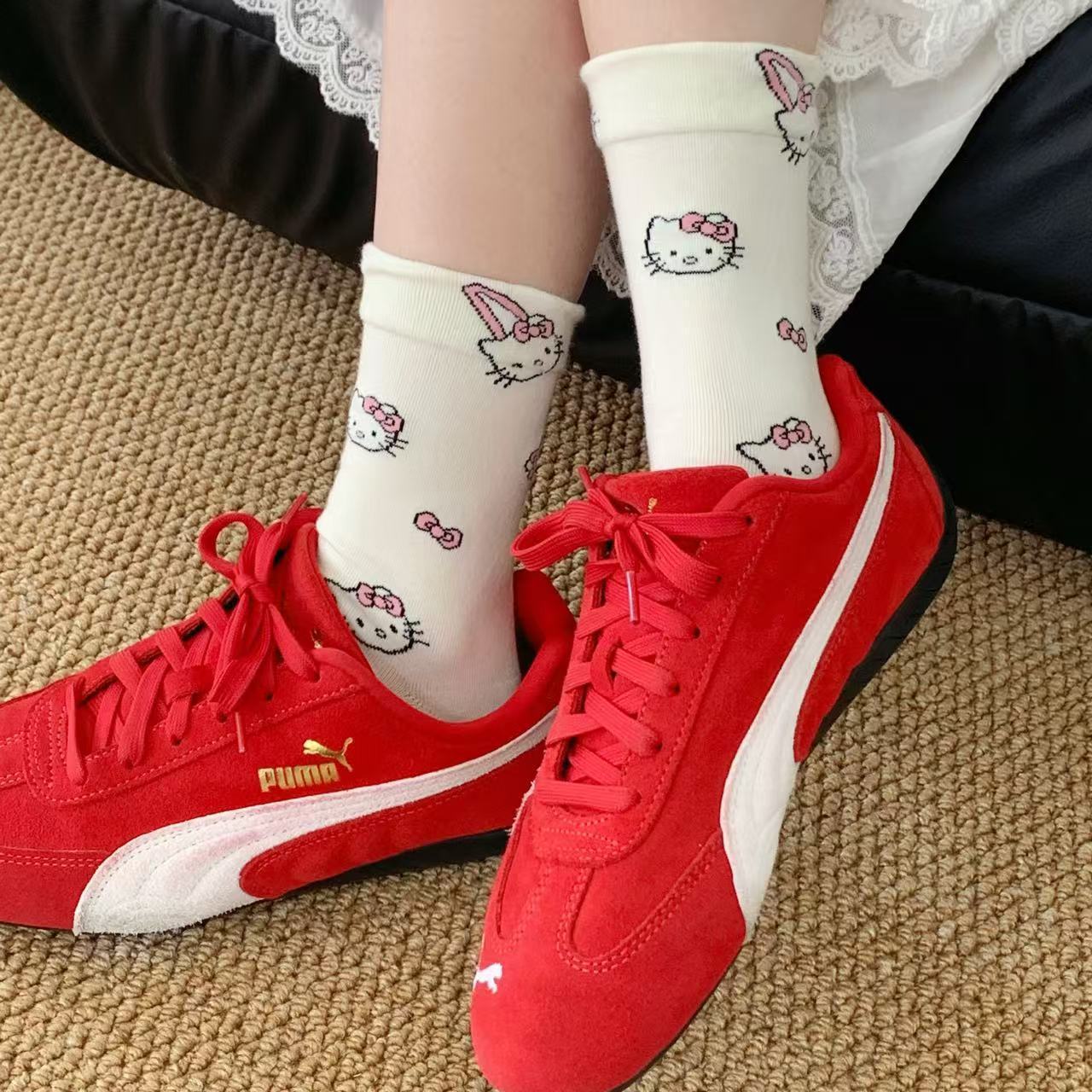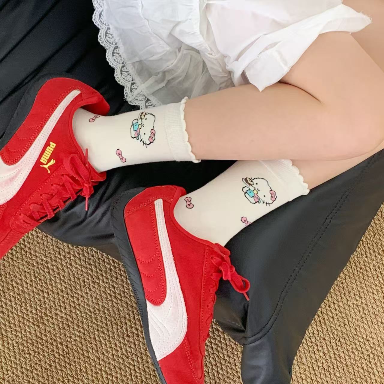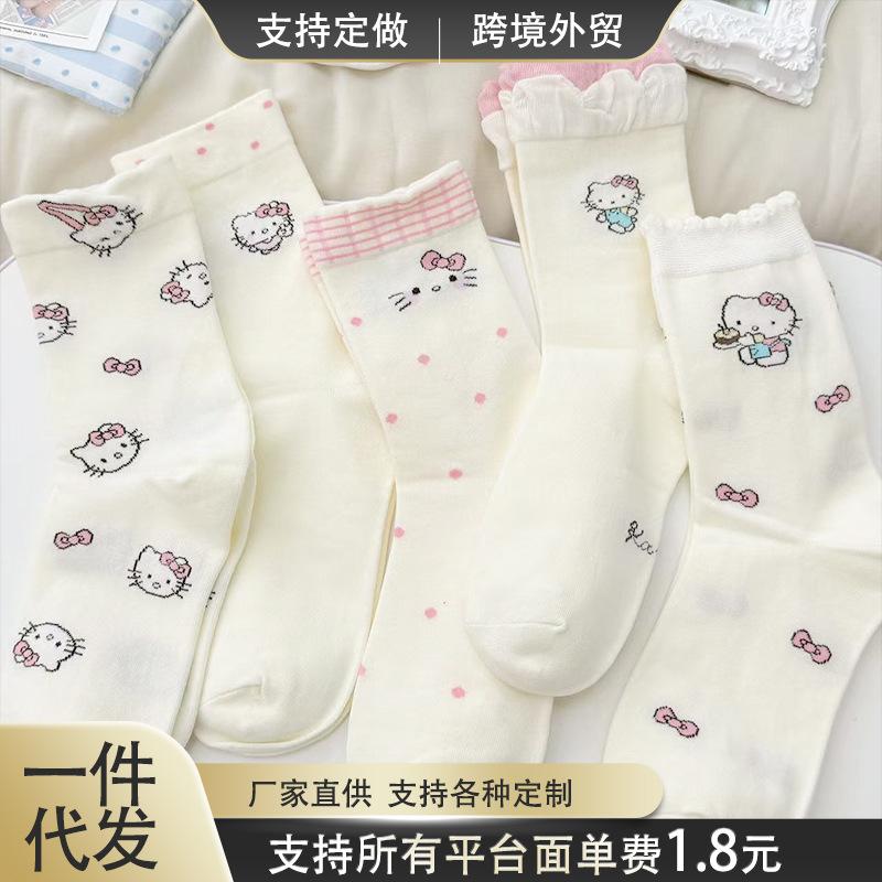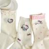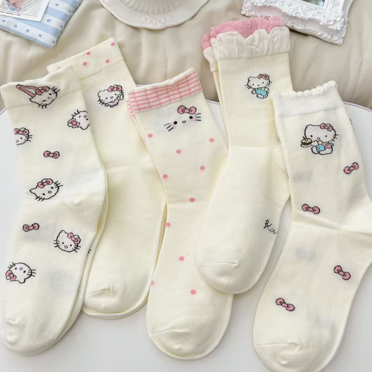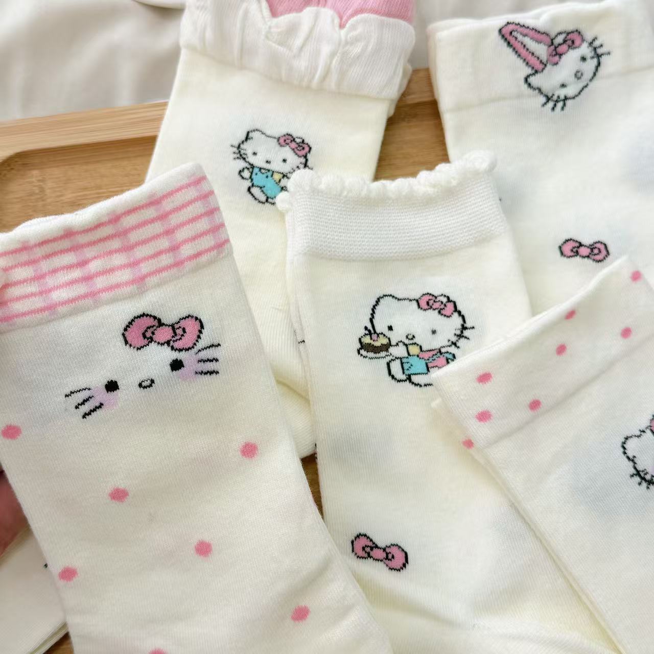 Calcetines Delgados de Verano de Gato KT Calcetines de Media Caña para Mujer ins Blancos Calcetines Largos hasta la Rodilla para Mujer Dulces de Dibujos Animados Japoneses Encaje
