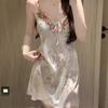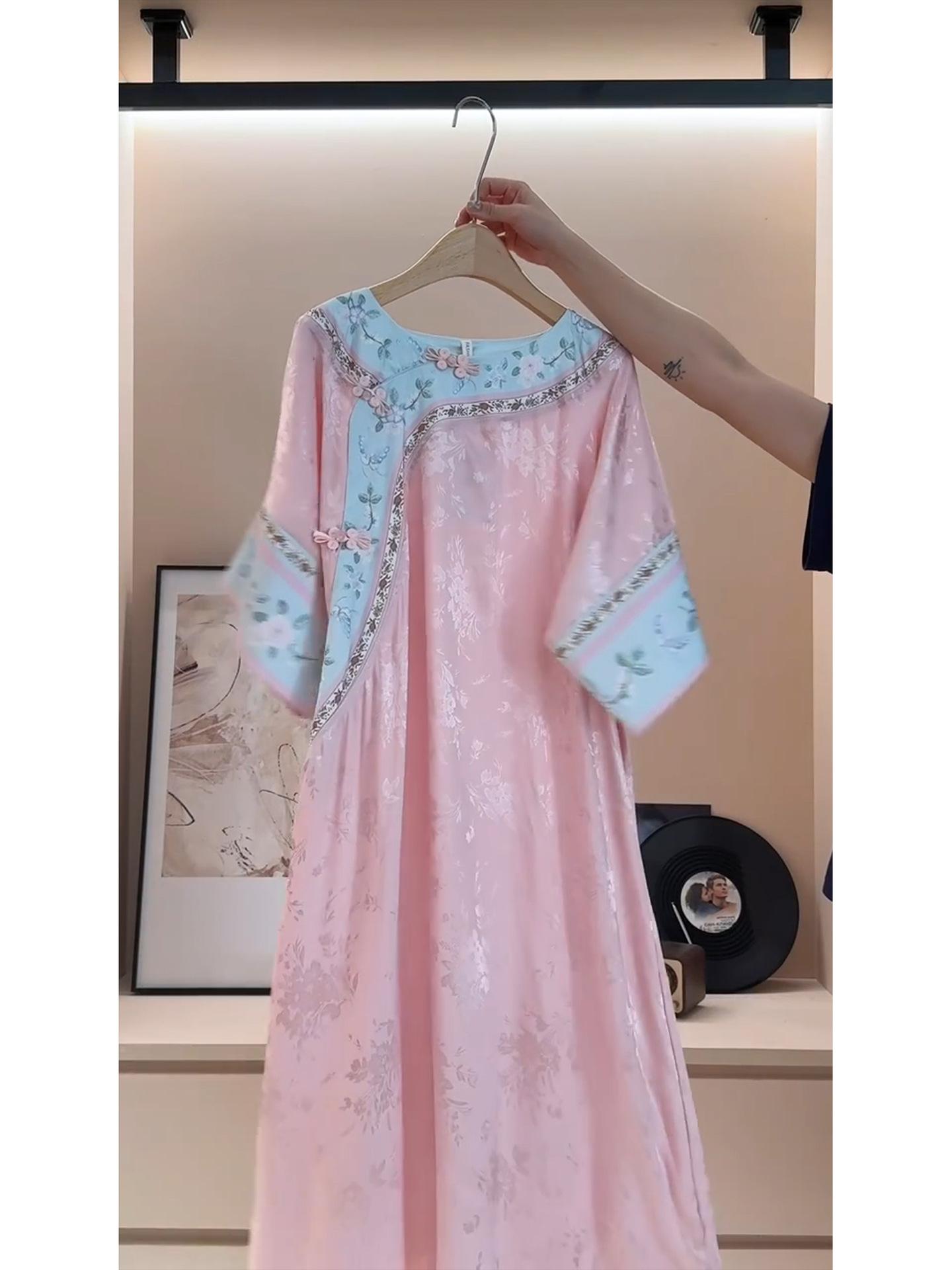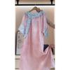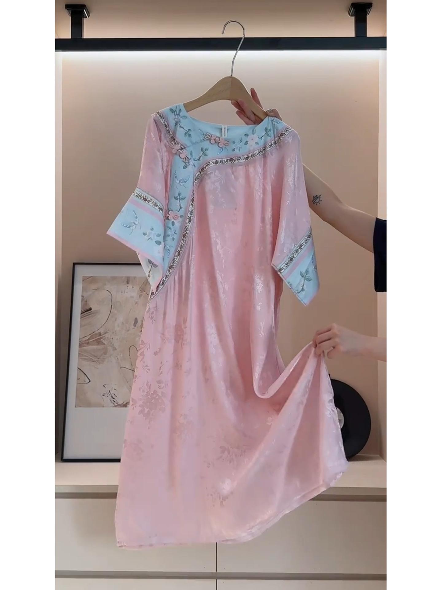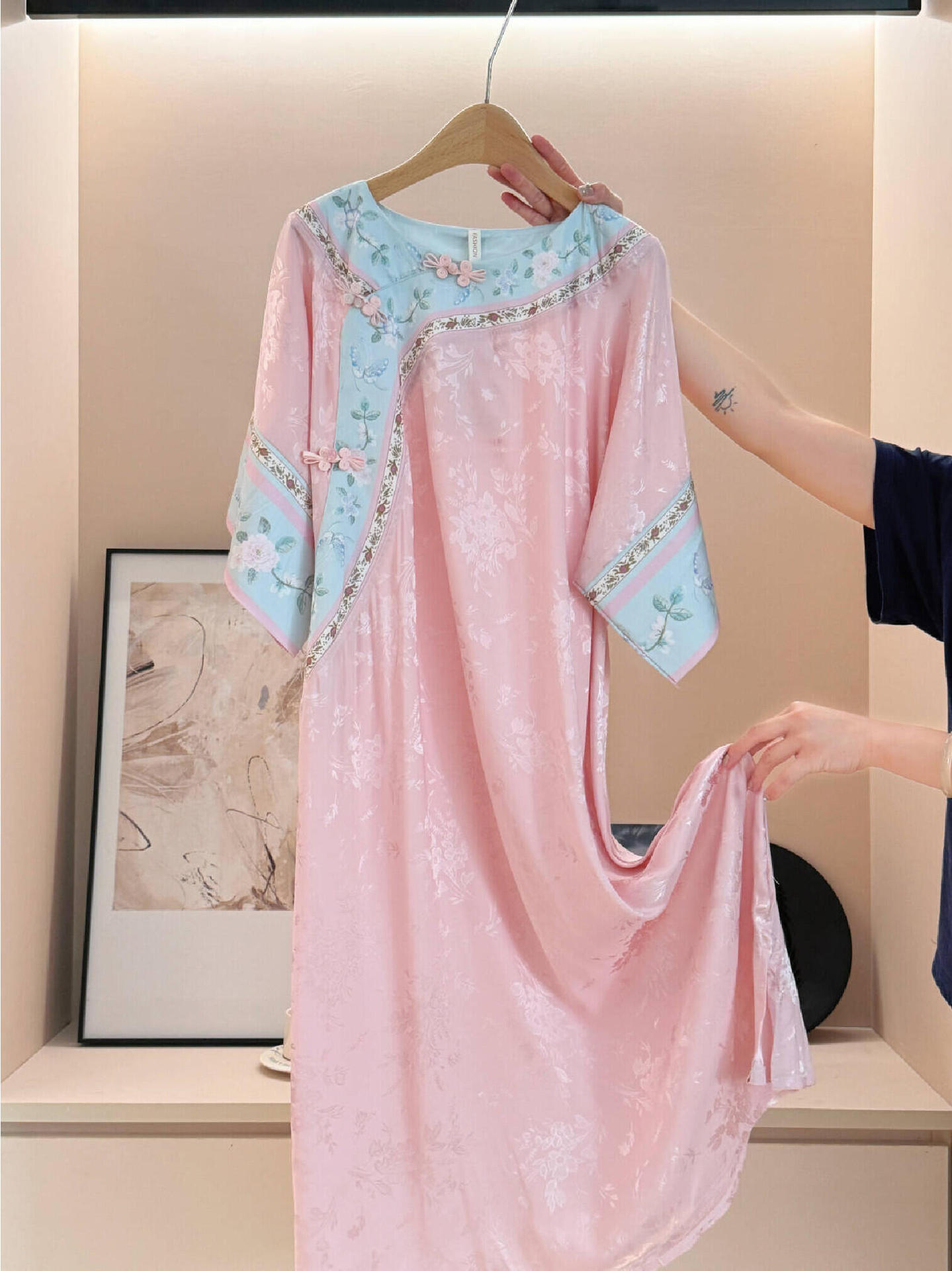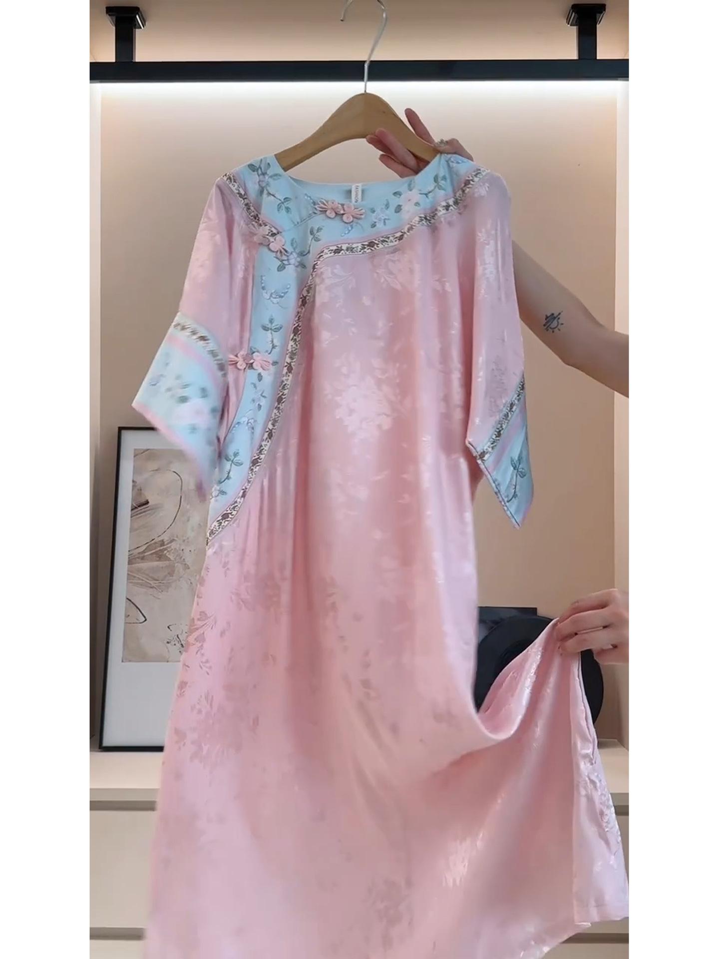 Camisón de Manga Corta de Seda de Hielo de Alta Gama Estilo Chino para Mujer, Pijama Adelgazante de Verano de Talla Grande Respetuoso con la Piel, Ropa de Casa para Salir