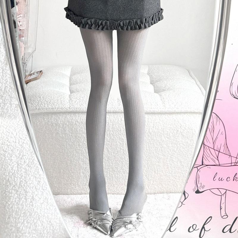 Medias blancas mujer verano hilo plateado deseo puro pantimedias negras rayas verticales sexy medias de red brillo