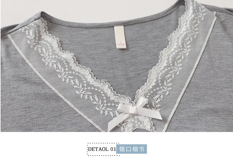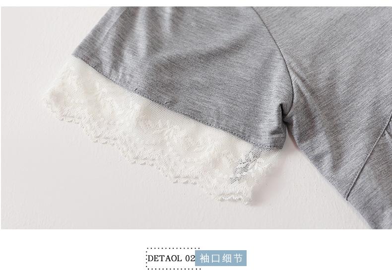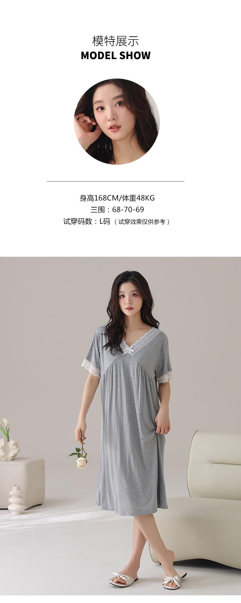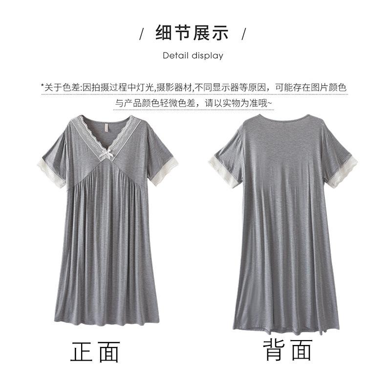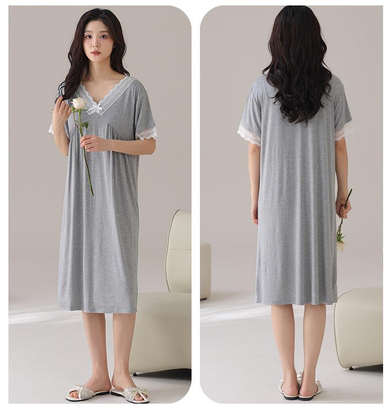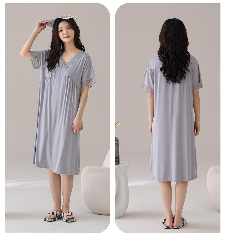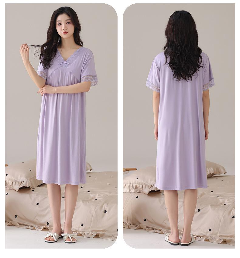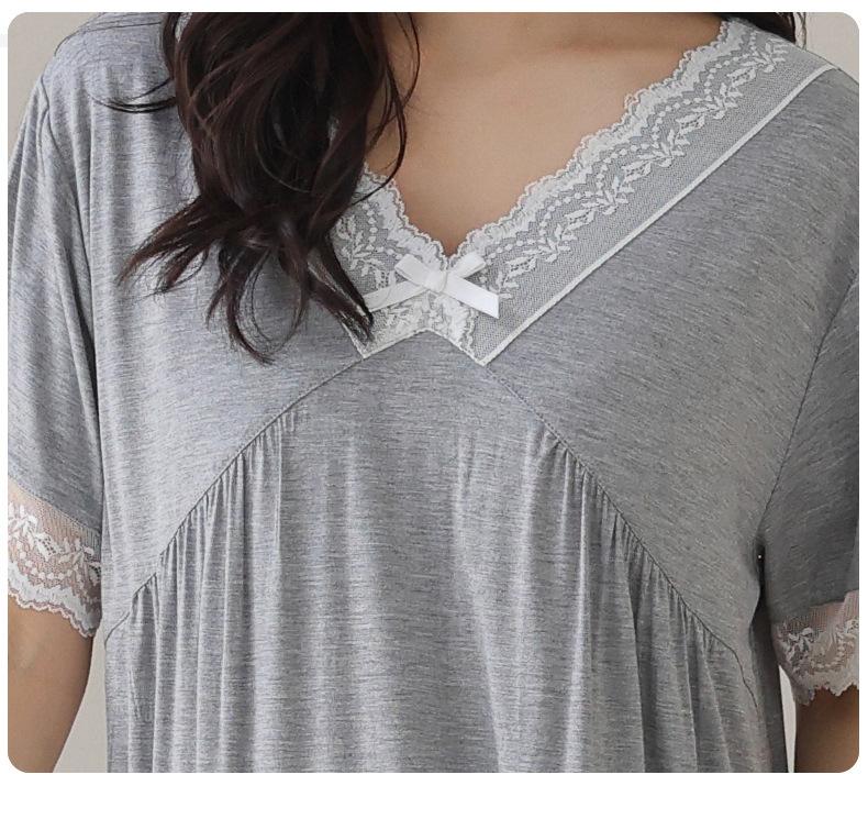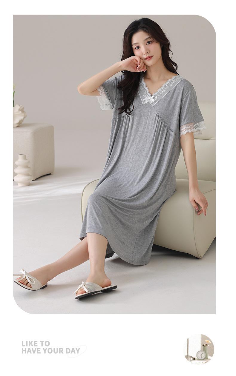 Pijama Sexy de Encaje de Verano para Mujer de Modal de Manga Corta y Largo Medio con Almohadillas para el Busto, Vestido para Estar en Casa