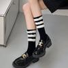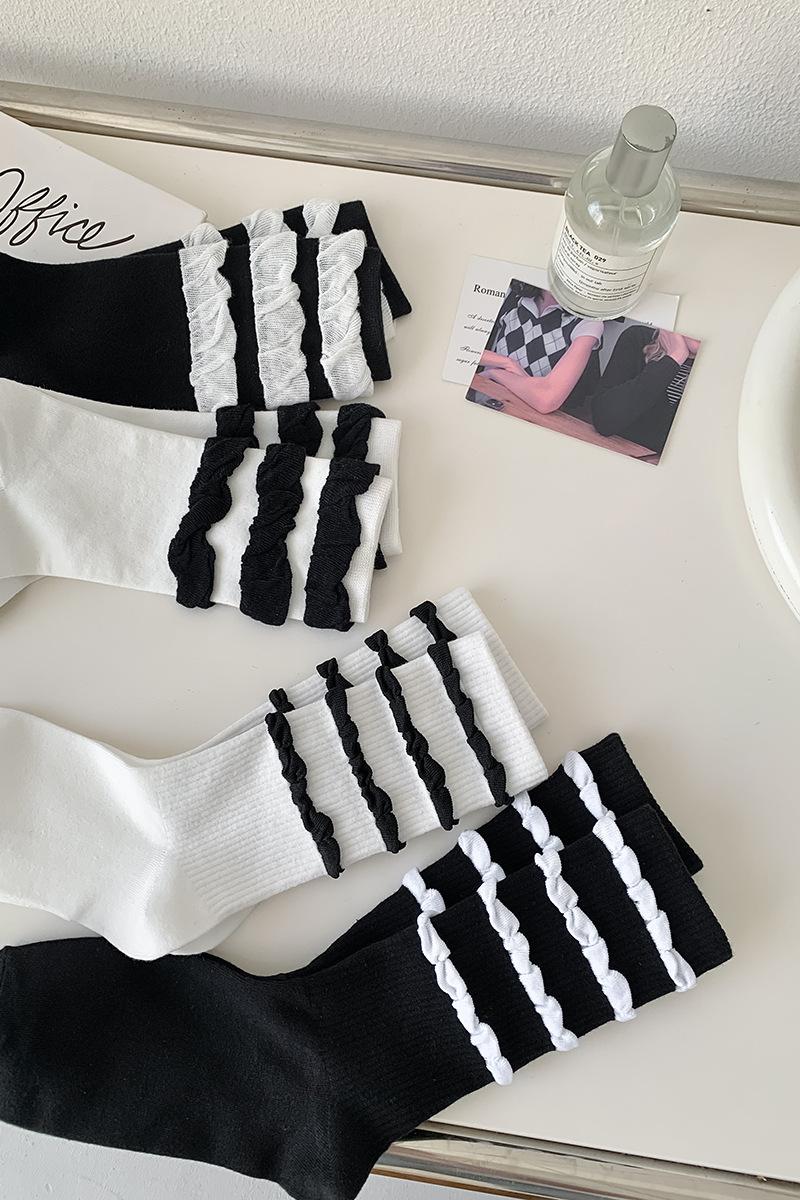 Calcetines de boca de burbuja para mujer primavera y otoño estilo academia japonés jk lolita dulces calcetines hasta la rodilla encaje blanco y negro calcetines de media pantorrilla
