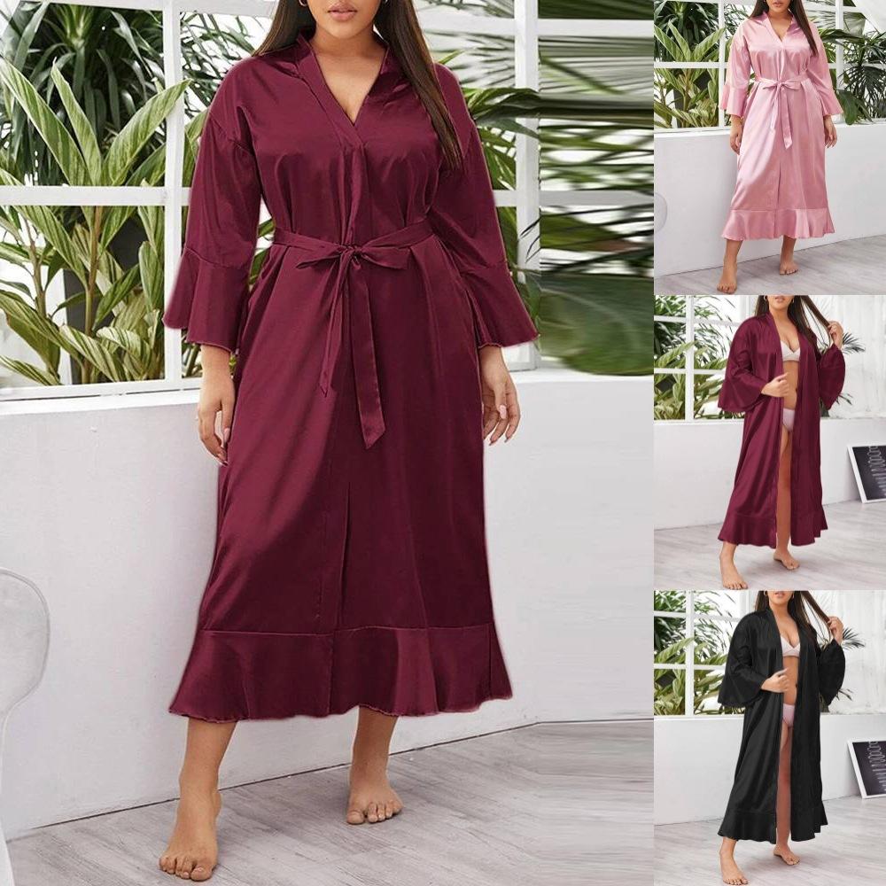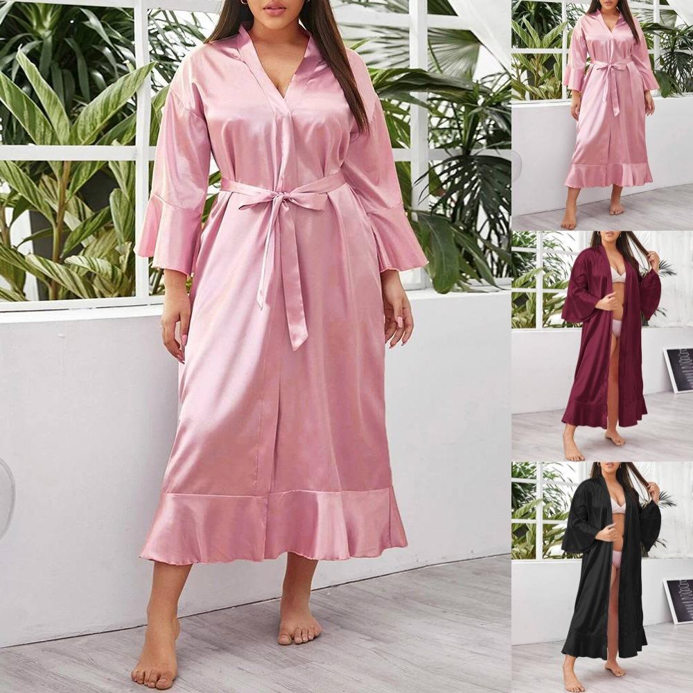 Satén Bata Nueva Sexy Mujer Japonés Seda de Hielo Cárdigan Camisón Bata Delgada de Media Longitud Pijama Estilo Deseo Puro Primavera Verano