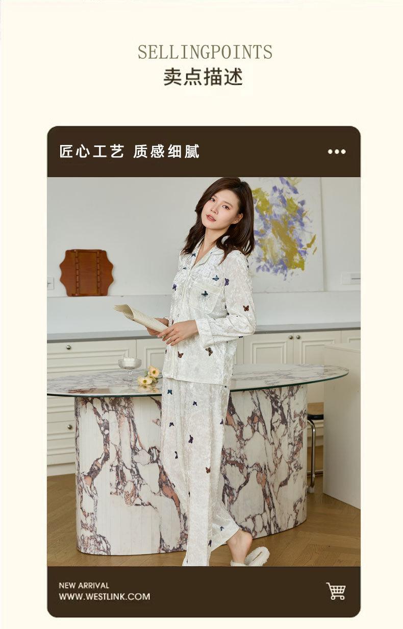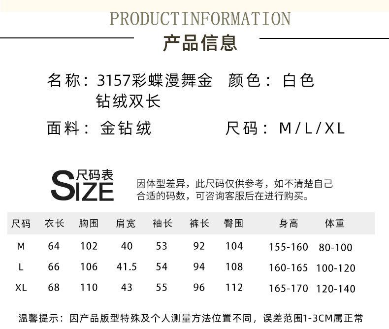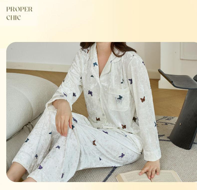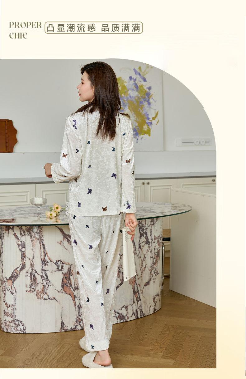 2025 Pijama Nuevo de Terciopelo Dorado para Mujer Manga Larga Pantalón Largo Dulce Estampado Colorido de Mariposas Conjunto para Estar en Casa Se Puede Usar Afuera