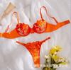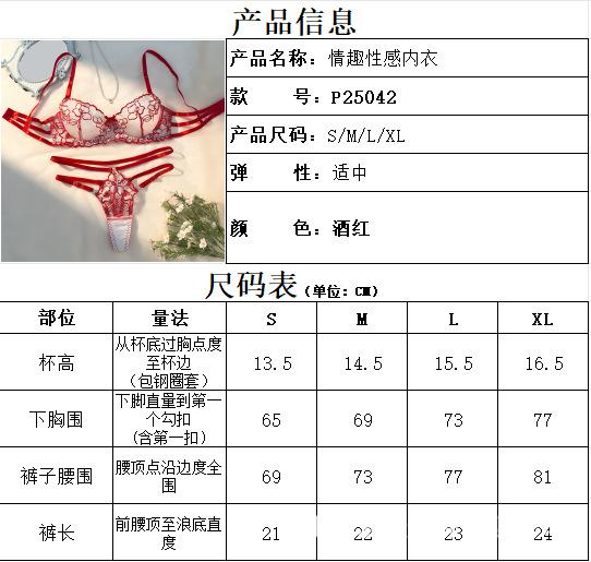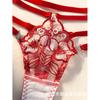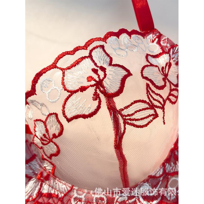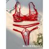 Y Sexy Set de Brasier con Aros de Copa Delgada Rojo Año Benming Malla Lencería Brasier Panties Doble Cinturilla 25042