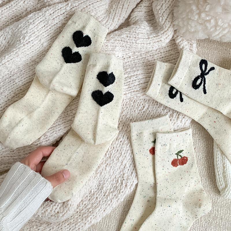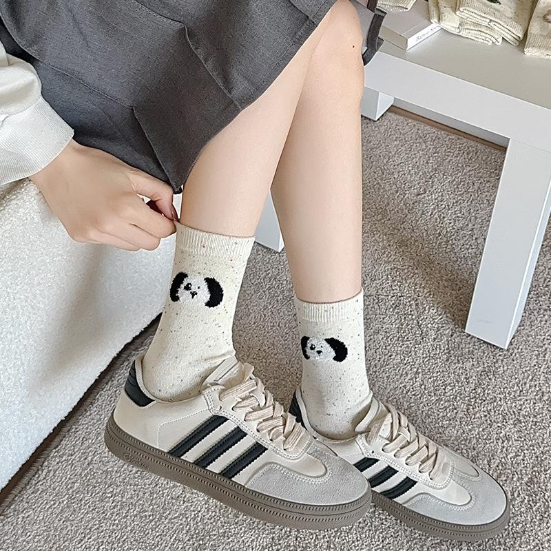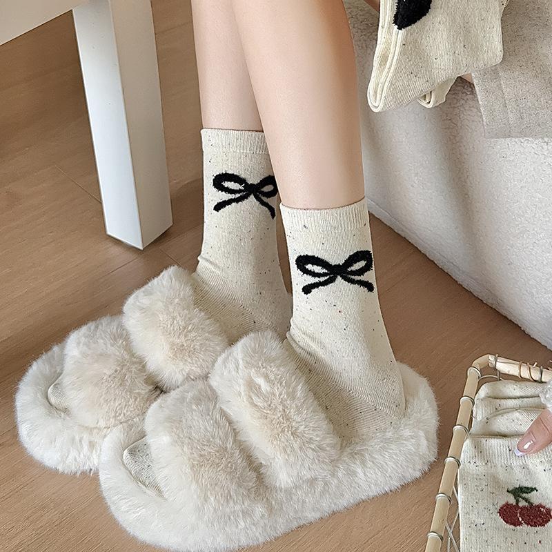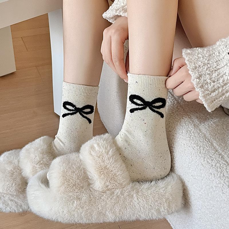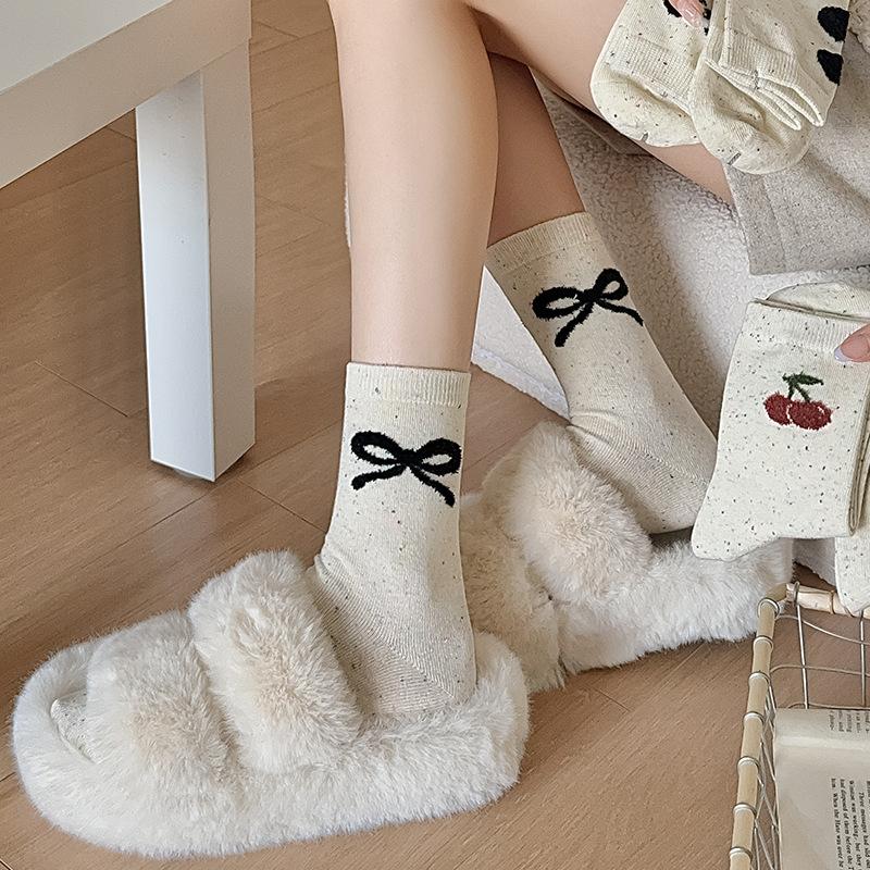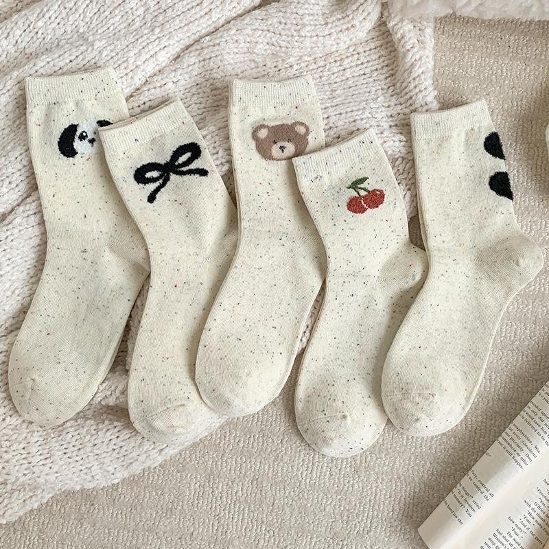 Otoño e invierno calcetines de lana de fantasía de oso de dibujos animados para mujer calcetines de media caña lazo calcetines de algodón versátiles calcetines largos venta al por mayor al por menor