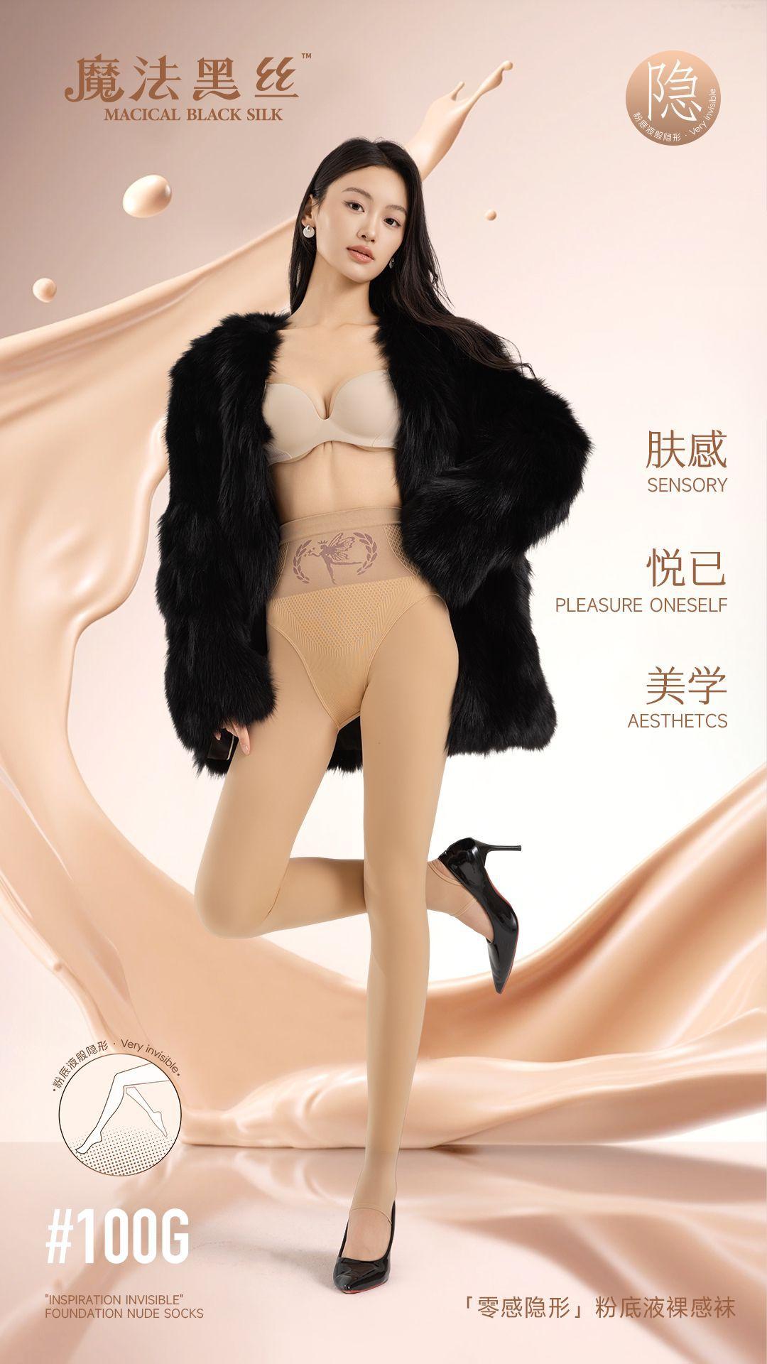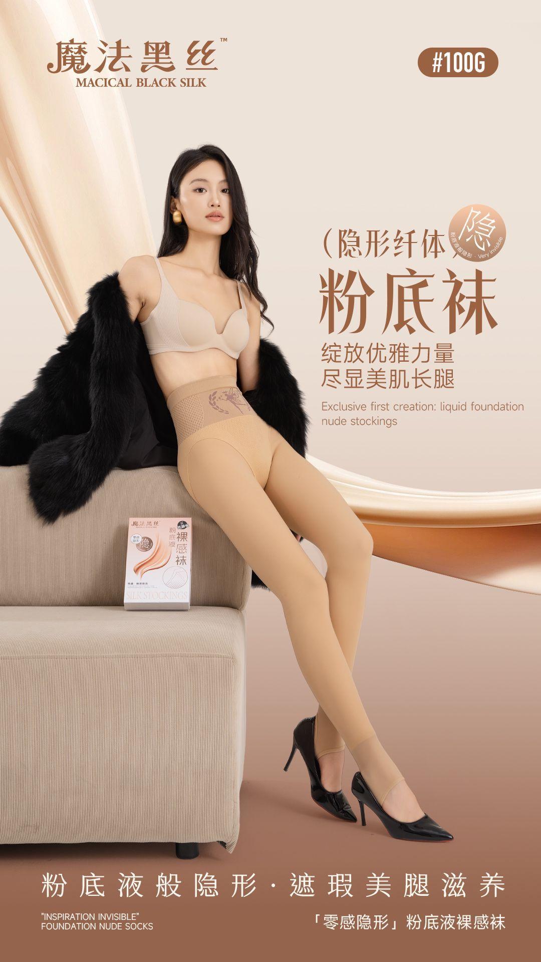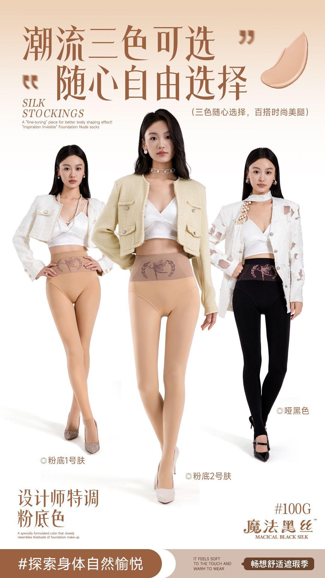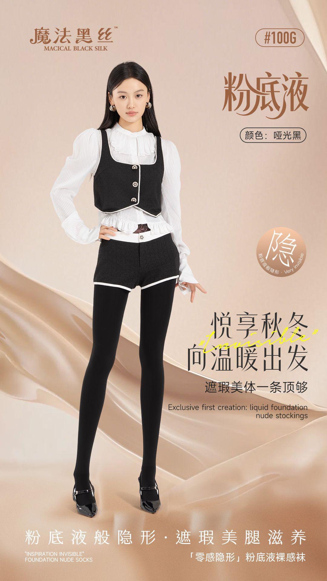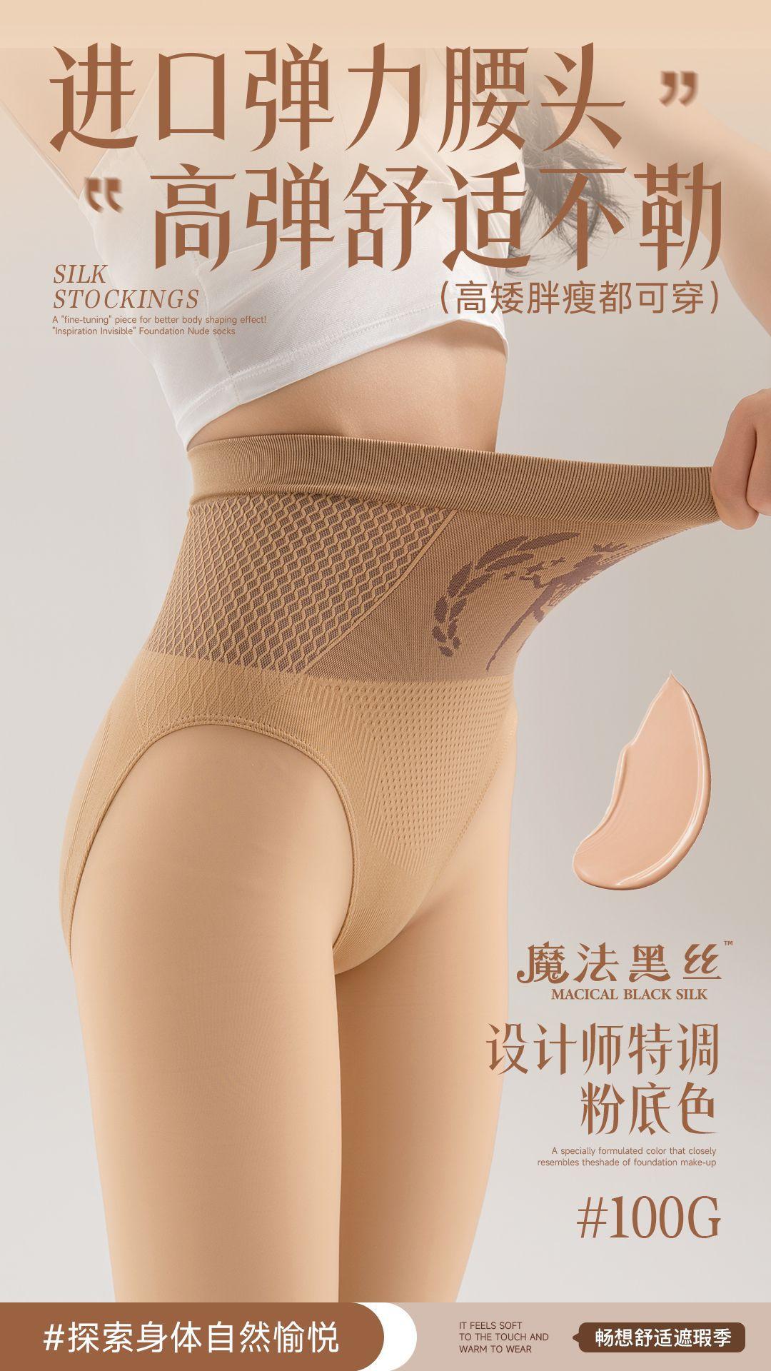 Base Mágica de Seda Negra Líquida Agua Ligera Medias Cintura Alta Adelgazante Otoño Invierno Espesado Forrado con Felpa Sensación Nude Artefacto Pierna Desnuda Medias Mujer