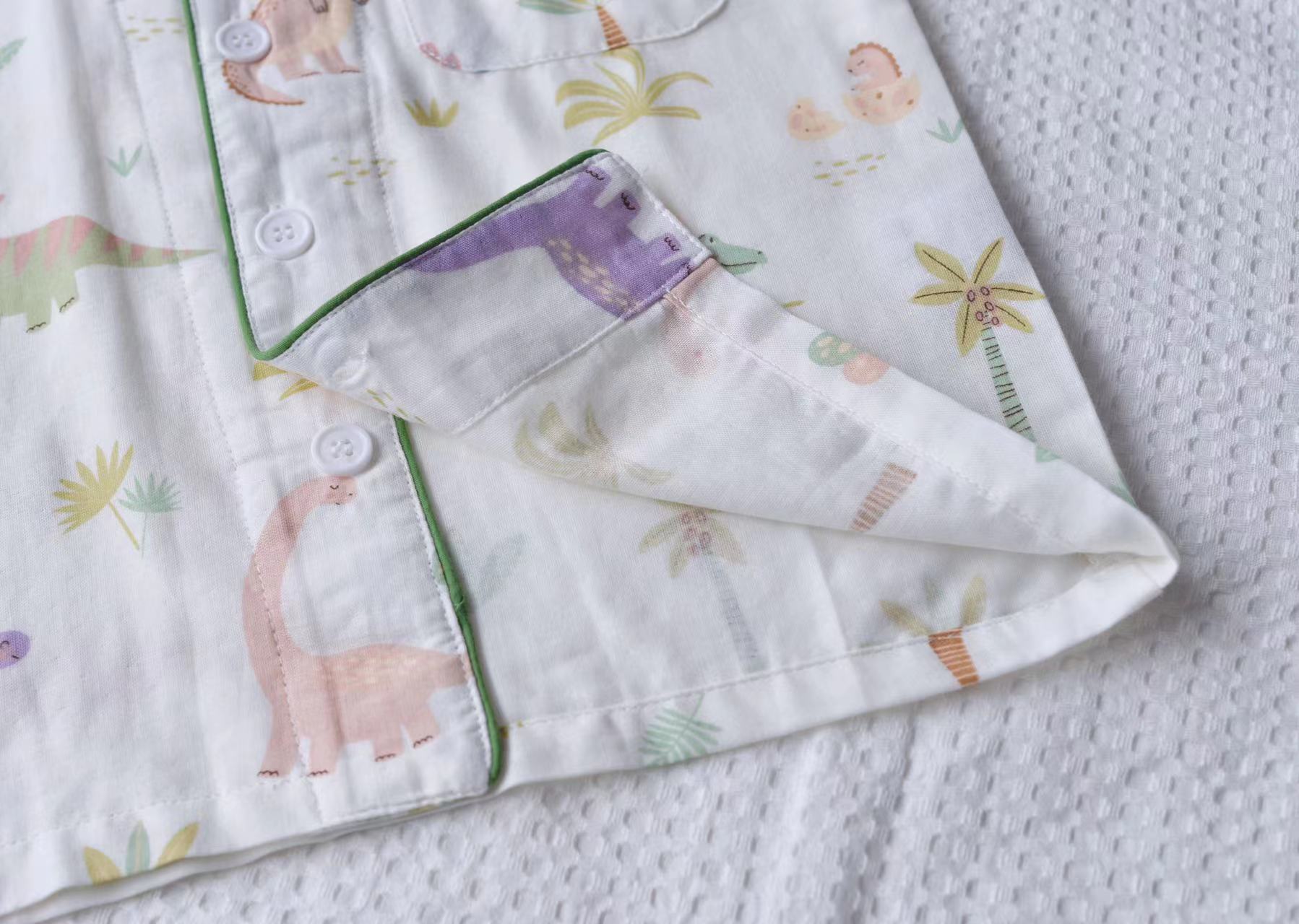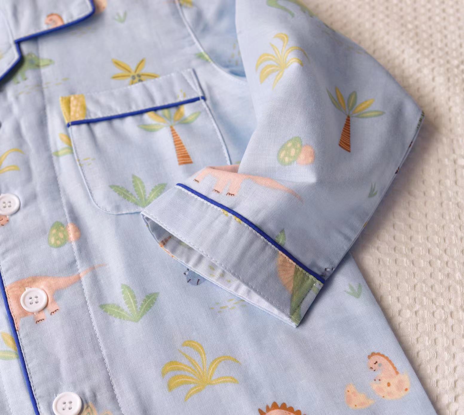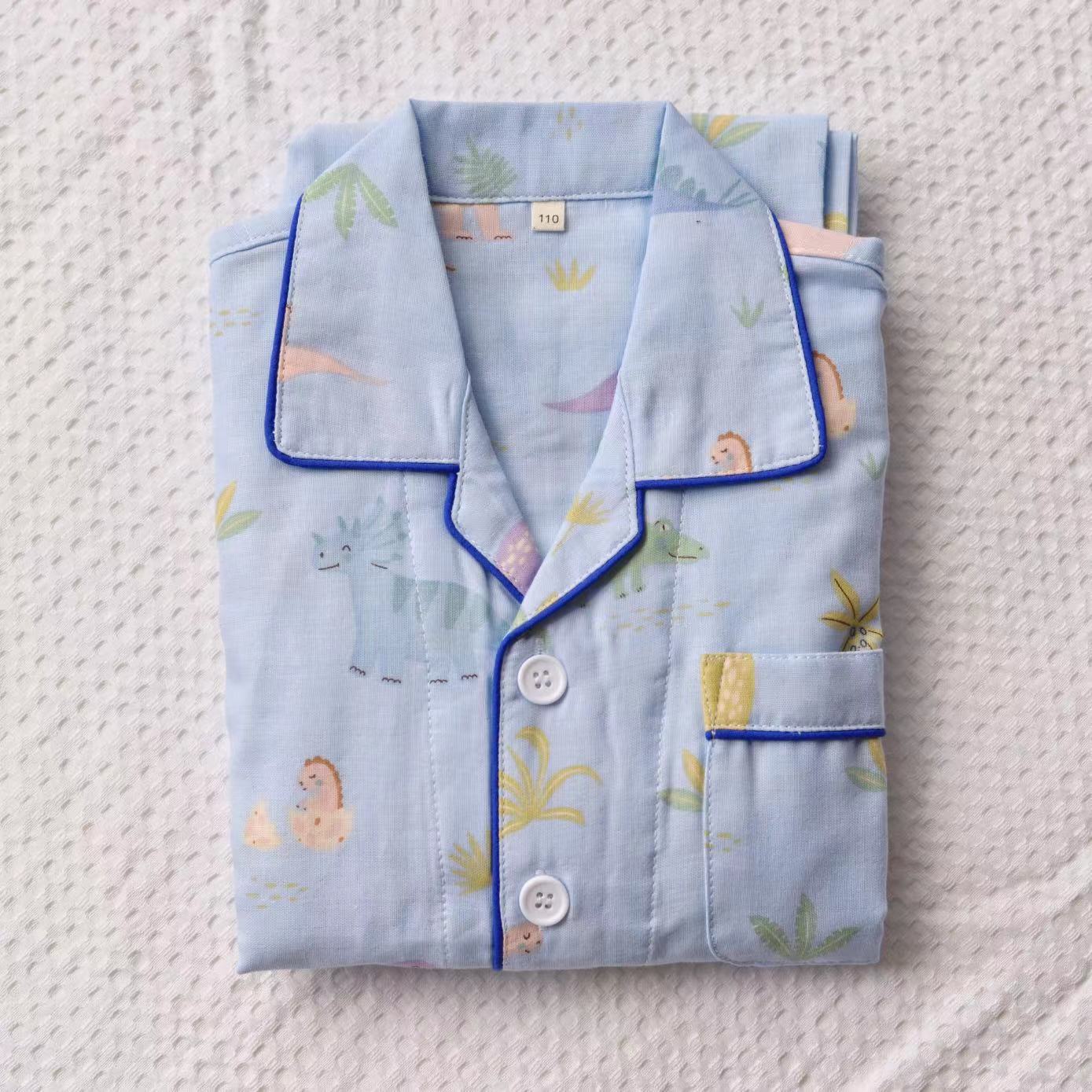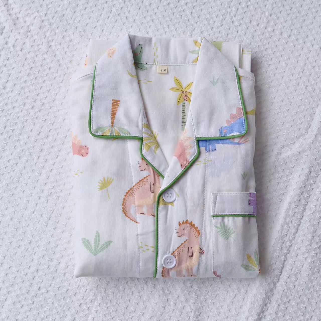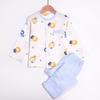 Pijama nuevo de algodón de doble capa de gasa de manga larga para niños, algodón, caricatura infantil, lindo cárdigan, traje para estar en casa