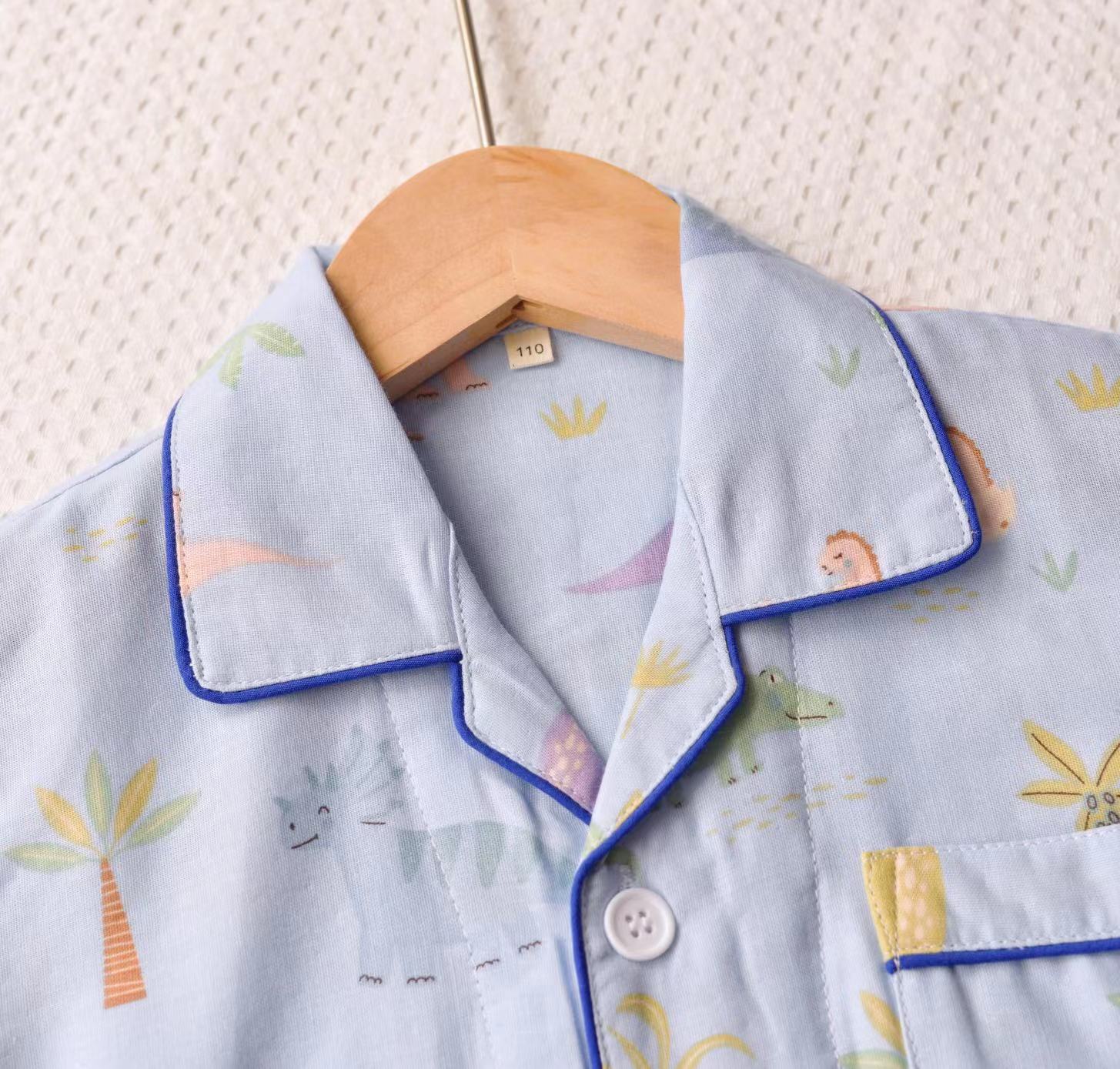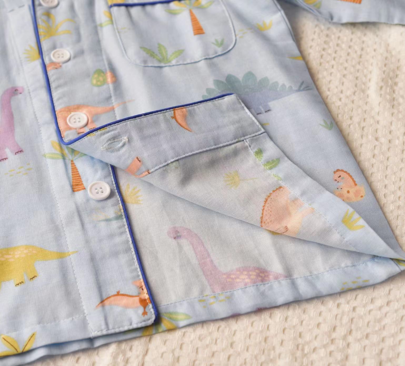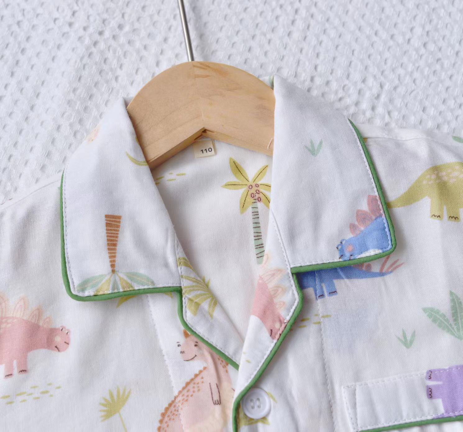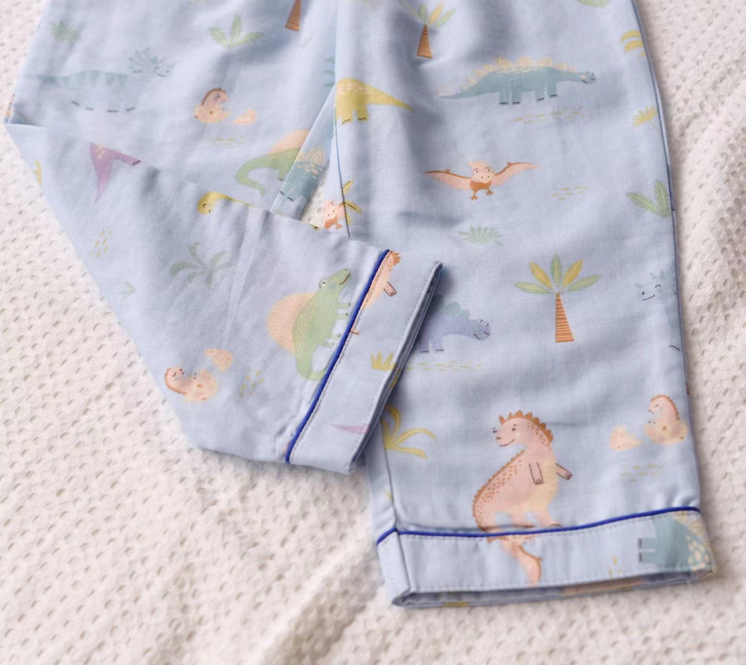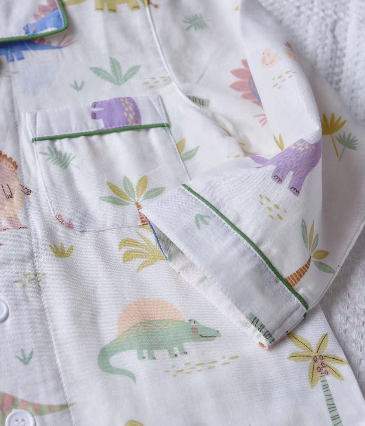 Pijama nuevo de algodón de doble capa de gasa de manga larga para niños, algodón, caricatura infantil, lindo cárdigan, traje para estar en casa