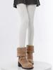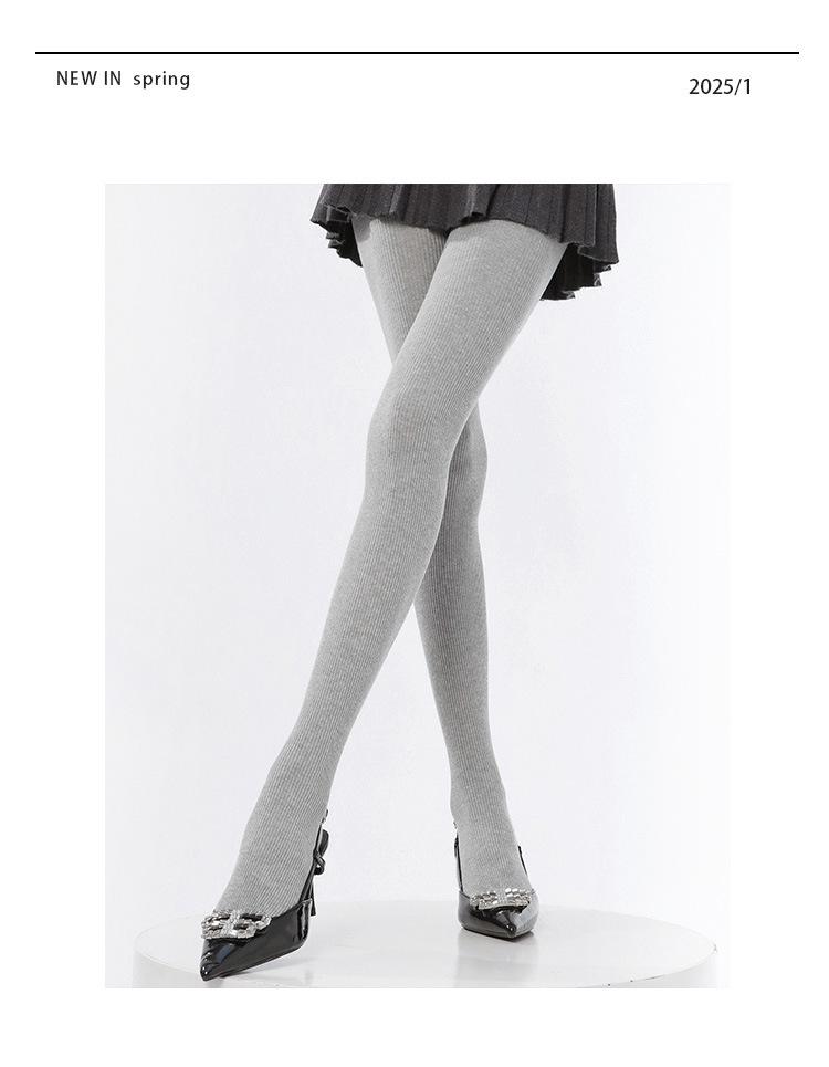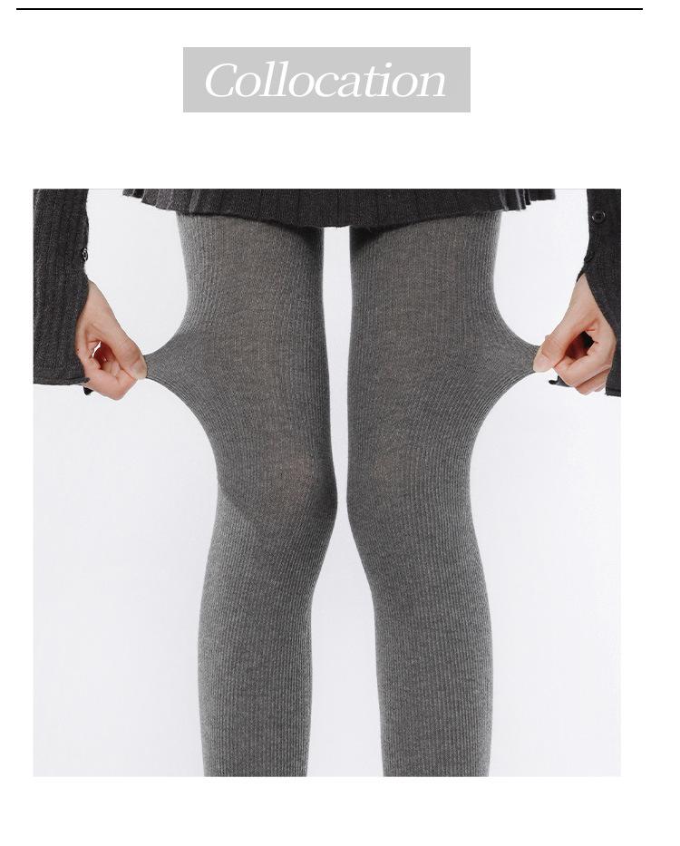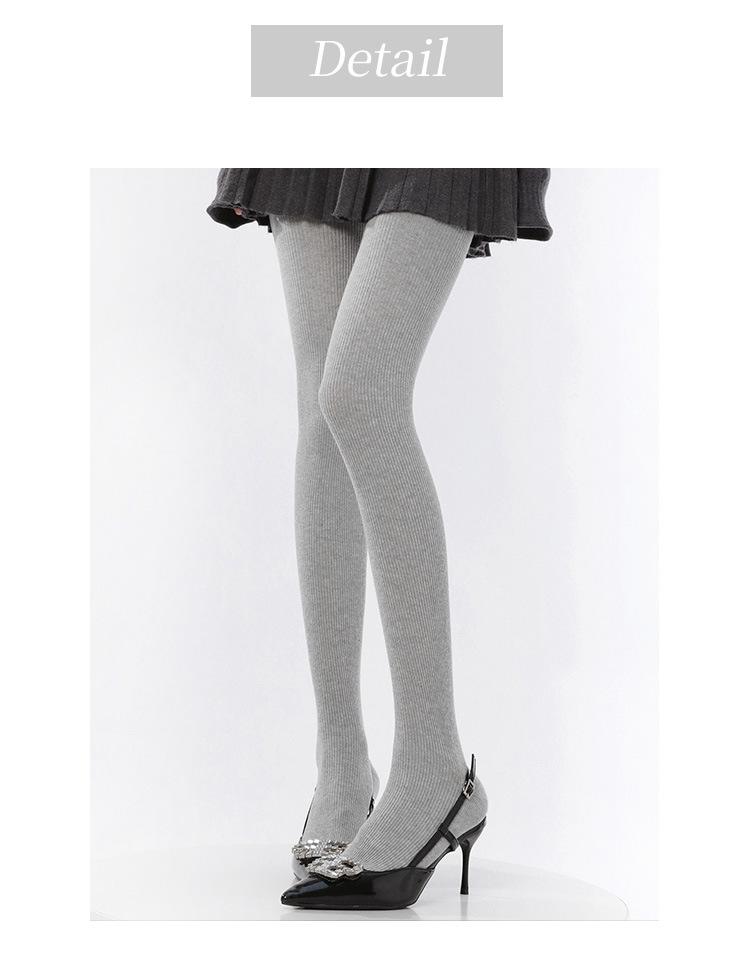 Pantimedias de Algodón Gris de Rayas Verticales Otoño Espesar Leggings de Uso Exterior Serie miu Adelgazantes Micro-Presión Pantalones de Otoño No se Caen