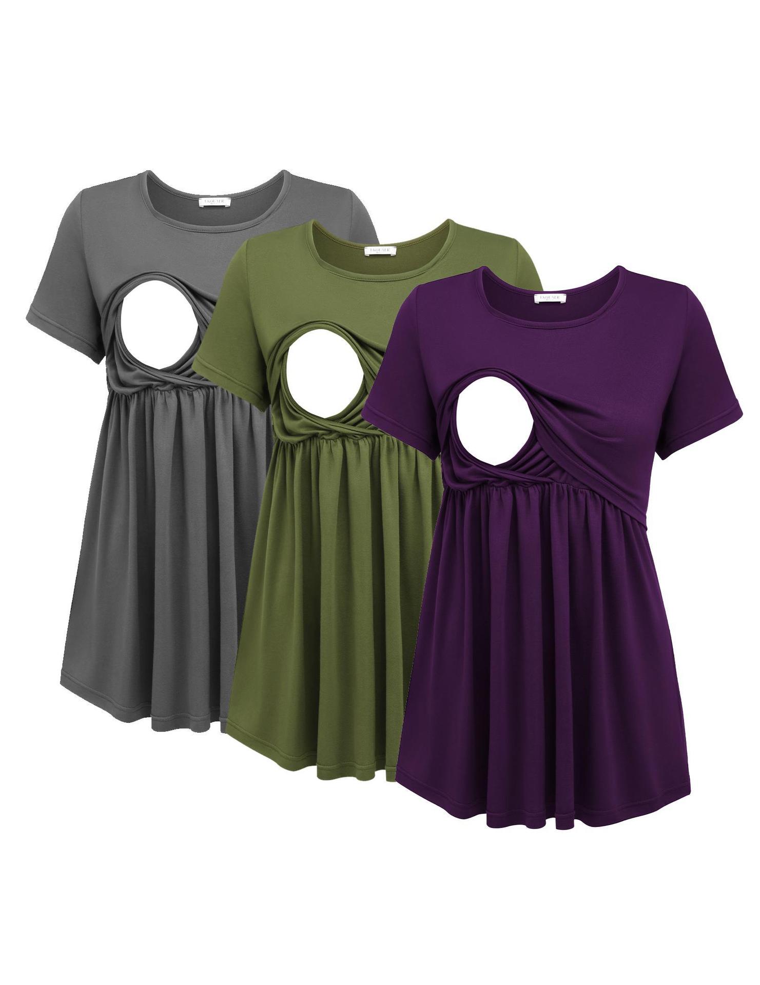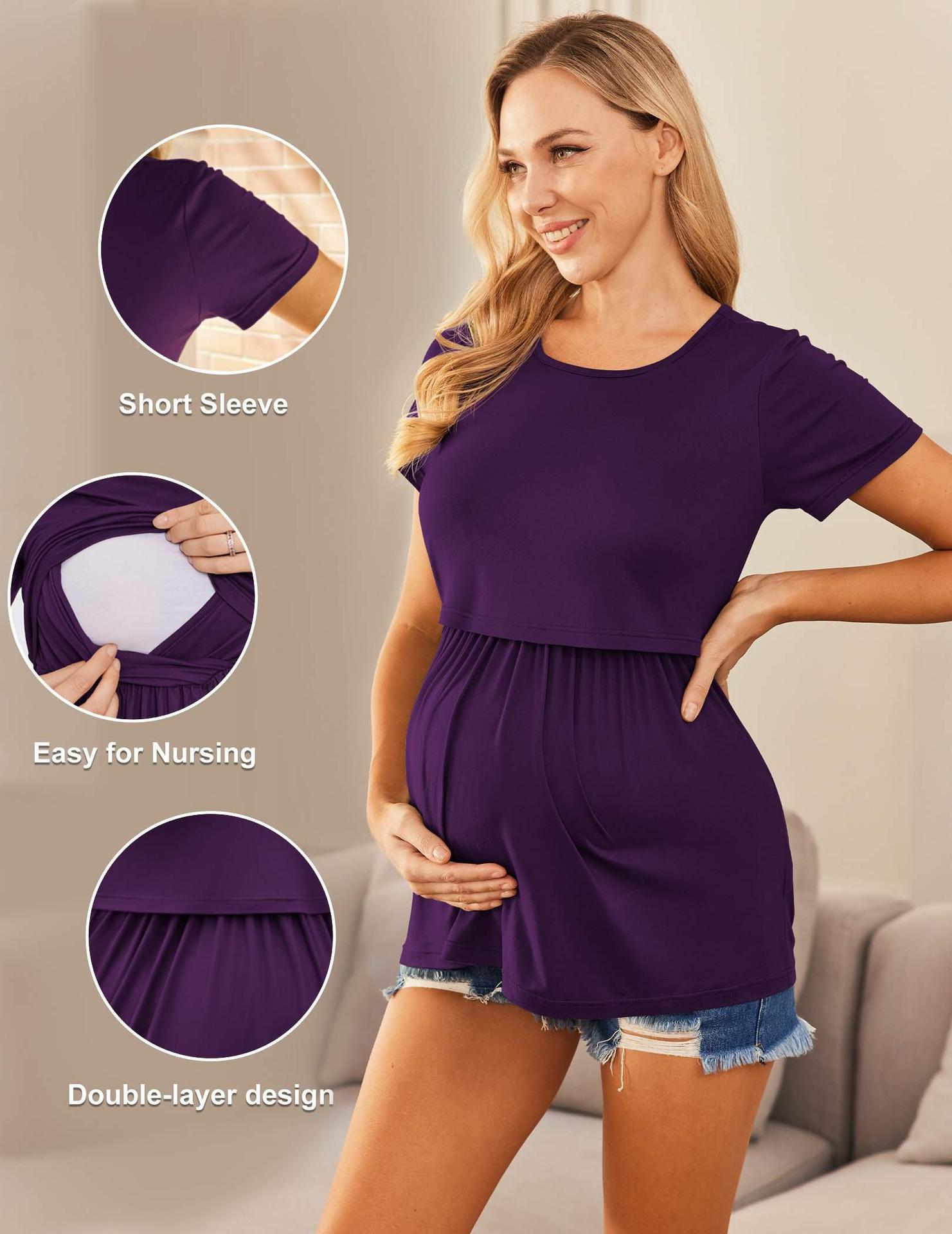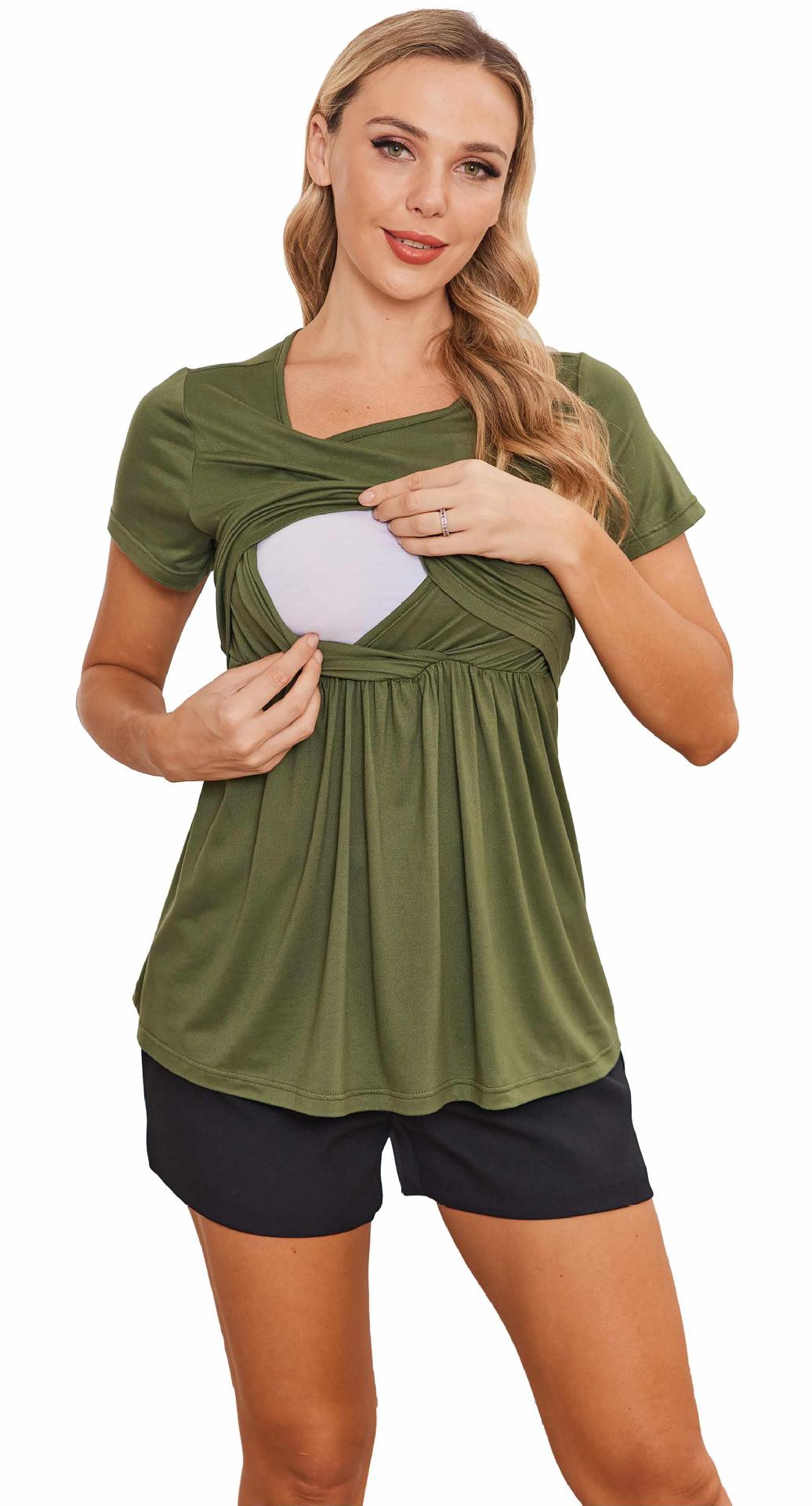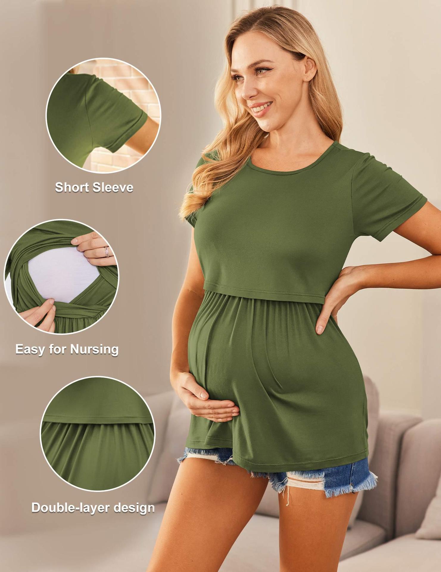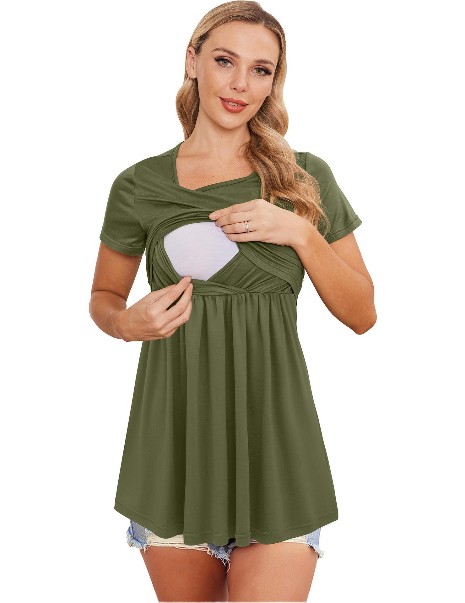 Ropa de Lactancia para Mujer Estilo Verano Europeo y Americano Amazon Transfronterizo Manga Corta Color Sólido Top Ropa de Maternidad Seda de Leche Ropa para el Hogar