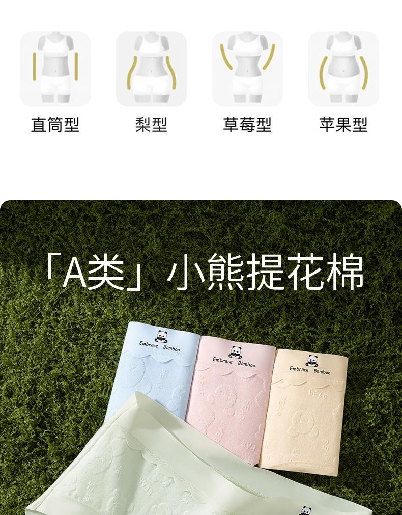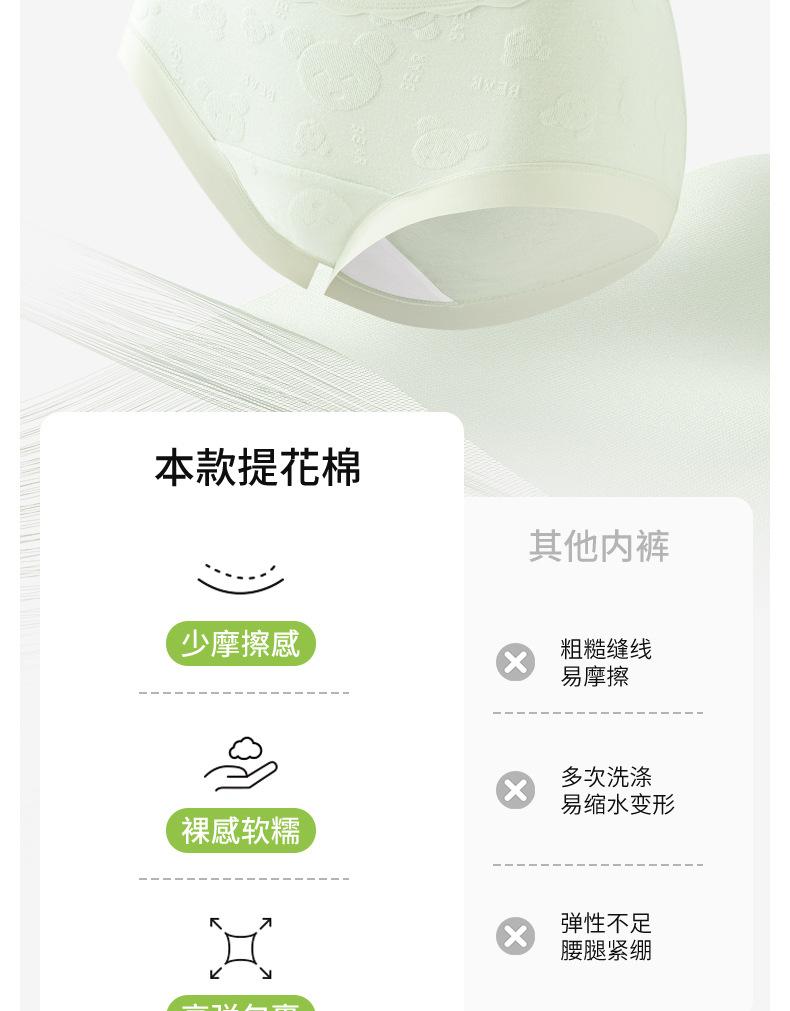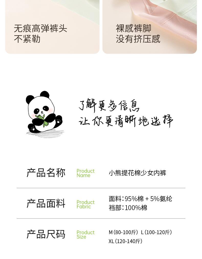 Calzones de Algodón Jacquard Tridimensional de Algodón Puro Little Bear Clase A Algodón Entrepierna Extendida 10A Antibacterianos Entrepierna Sin Costuras Algodón Puro Calzones de Mujer