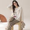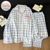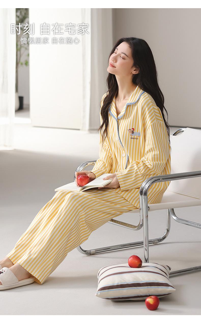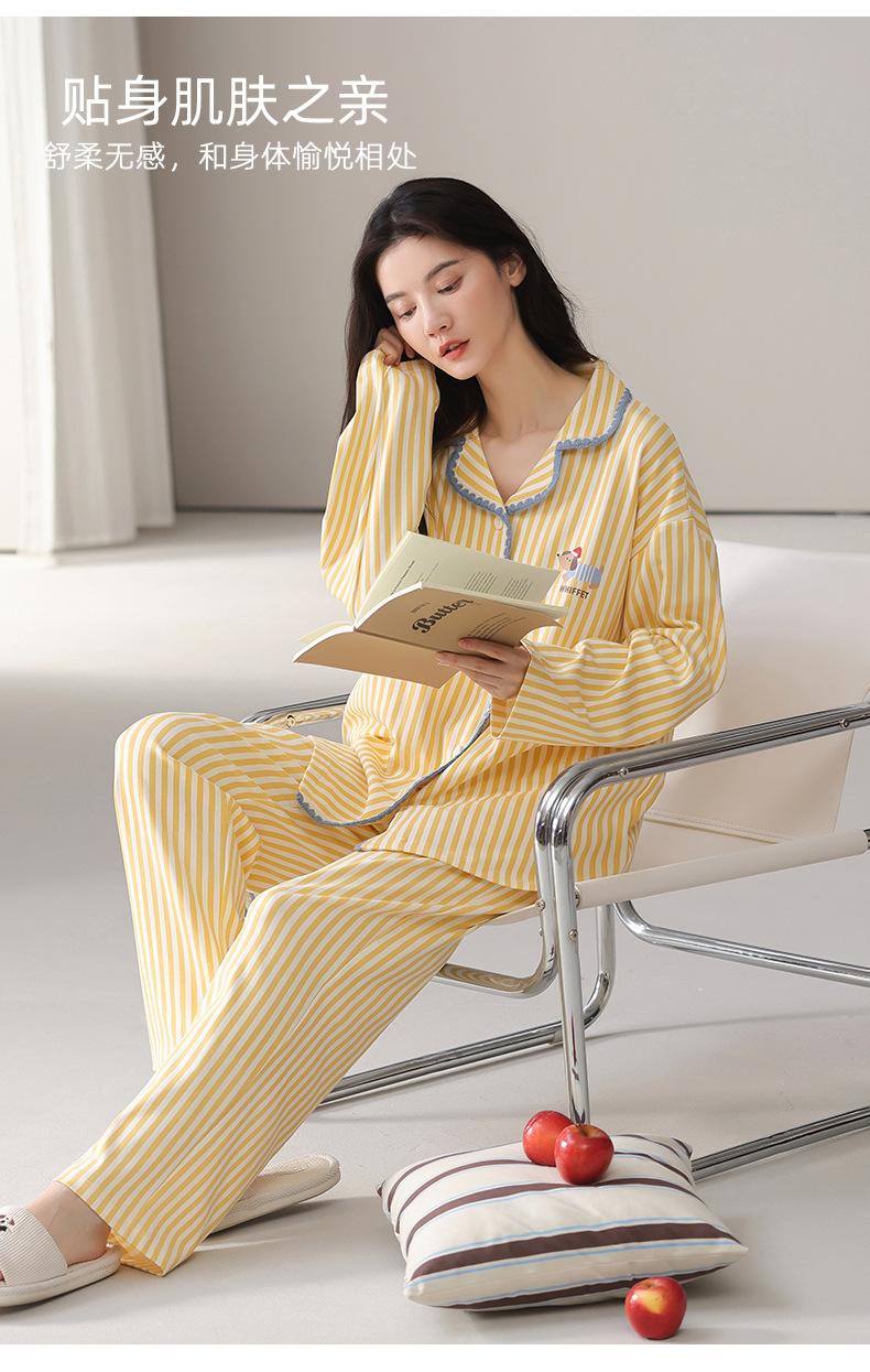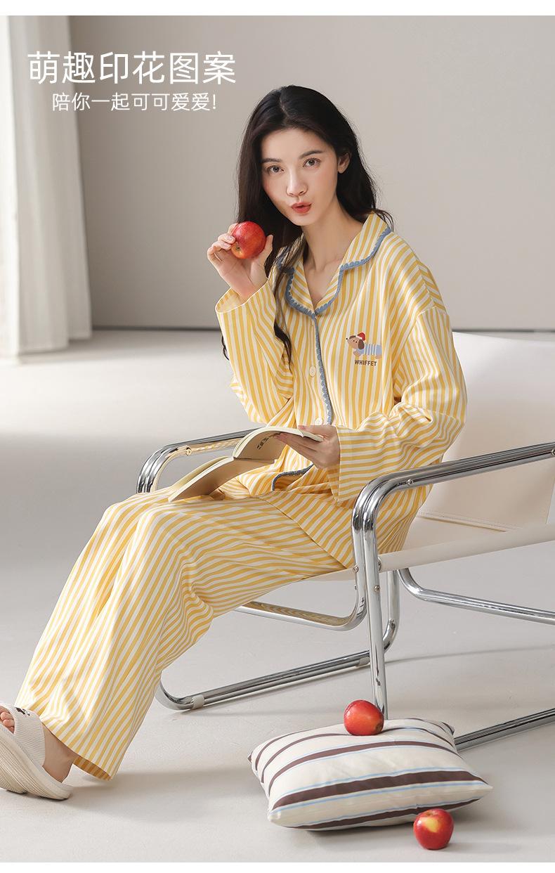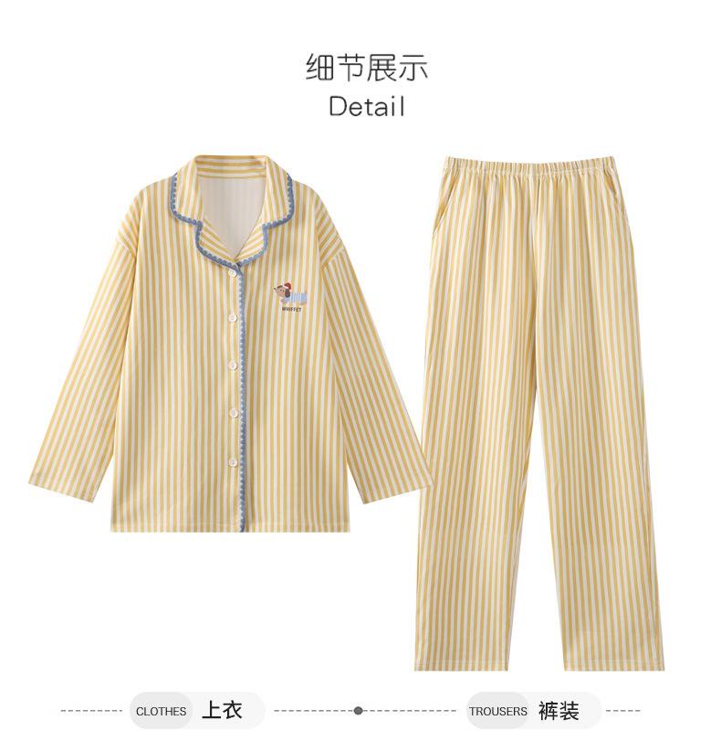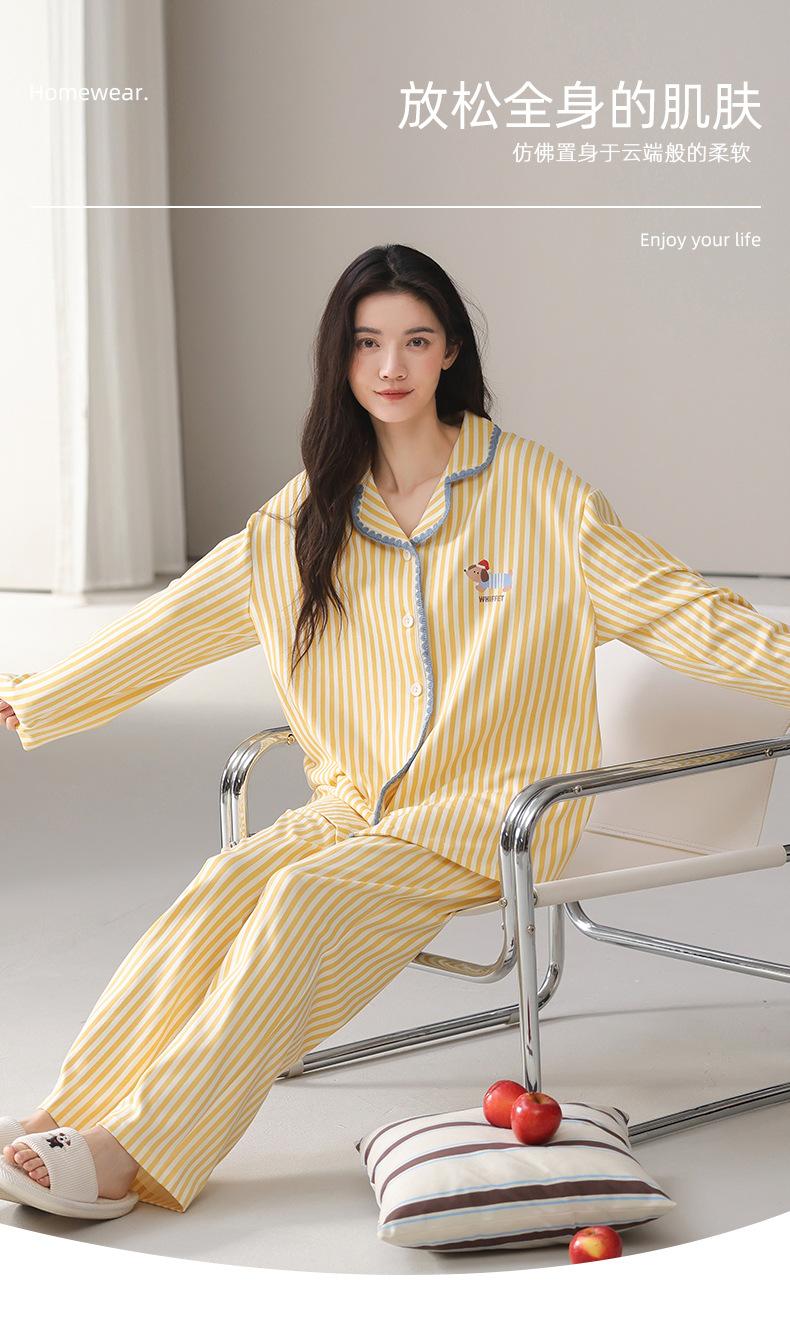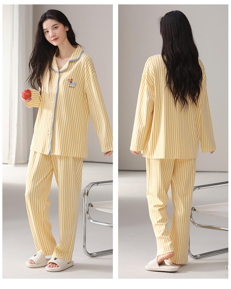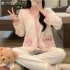 Ropa de casa de algodón puro dulce y encantadora cómoda transpirable estilo cárdigan de manga larga conjunto de pijama para mujer de primavera y otoño