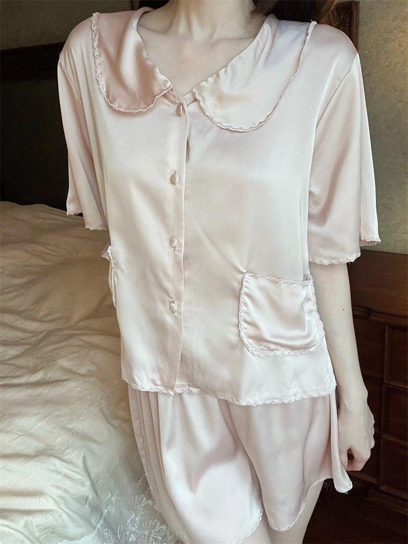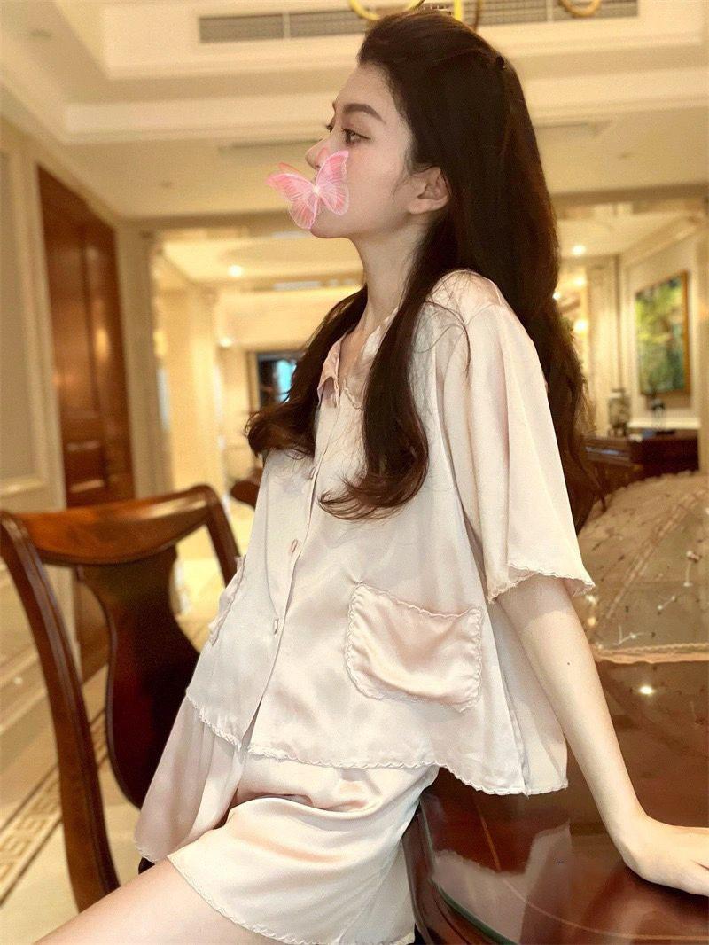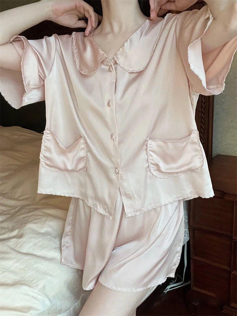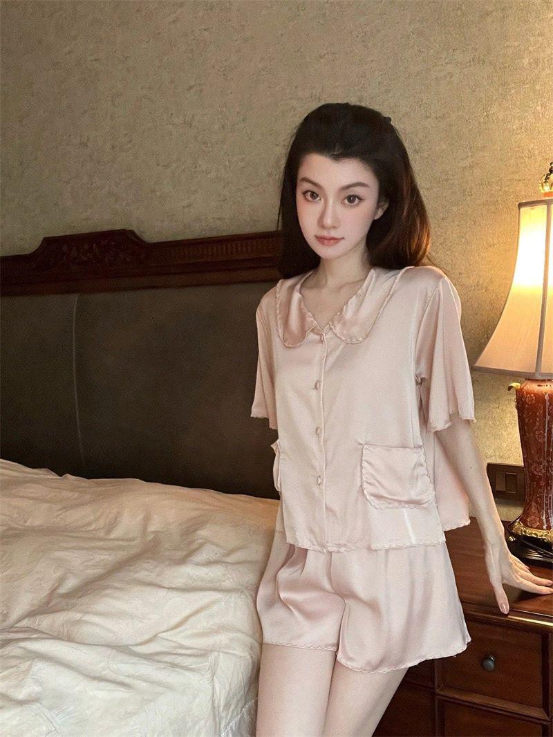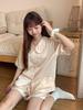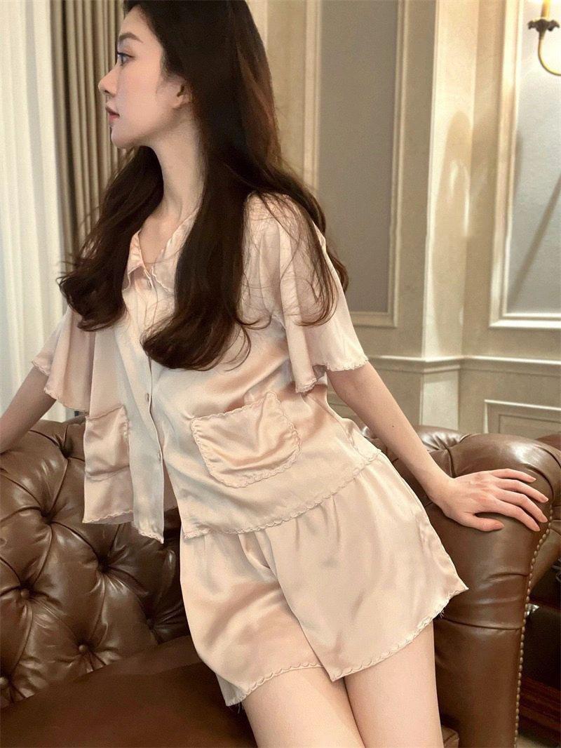 Pijama de Manga Corta de Seda de Hielo de Alta Gama para Mujer Verano 2024 Nuevo Conjunto Fresco de Pantalones Cortos de Satén Ropa para el Hogar