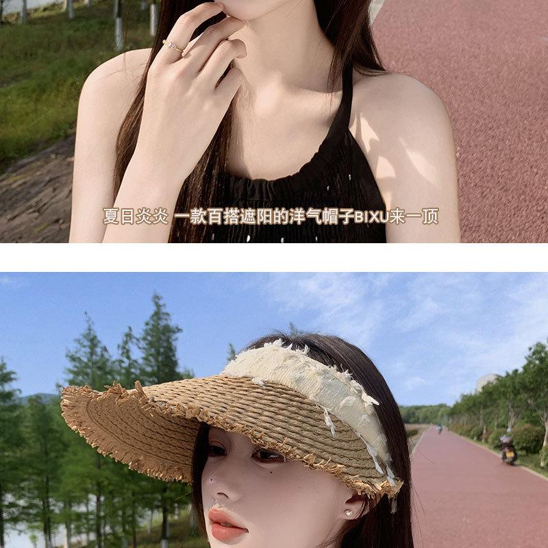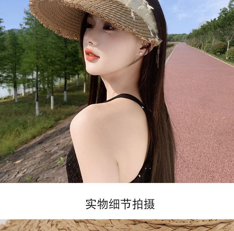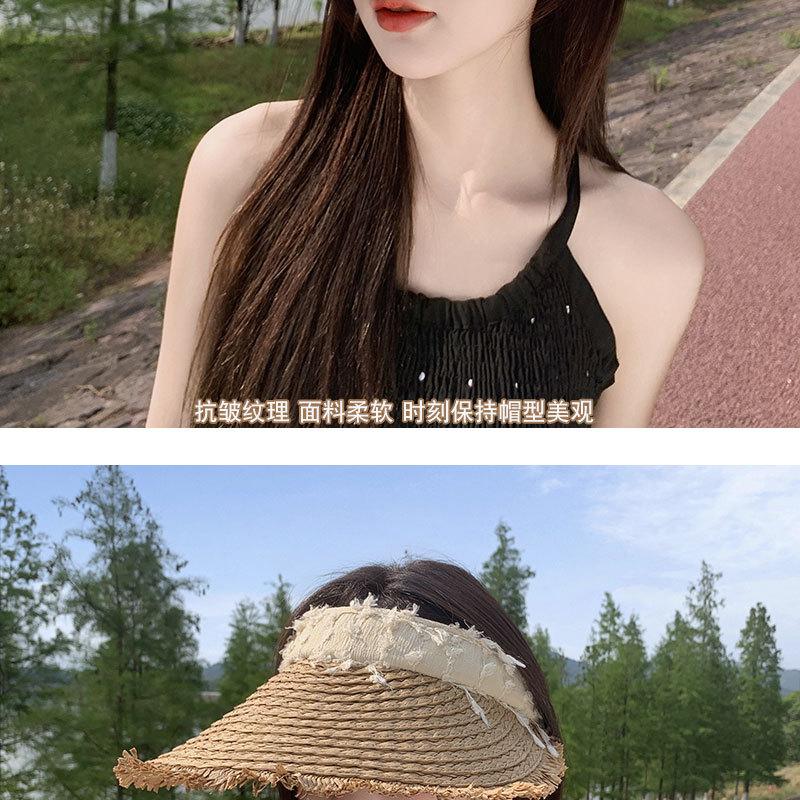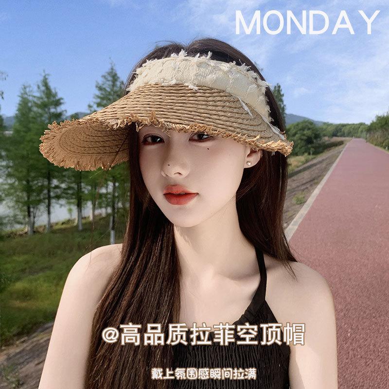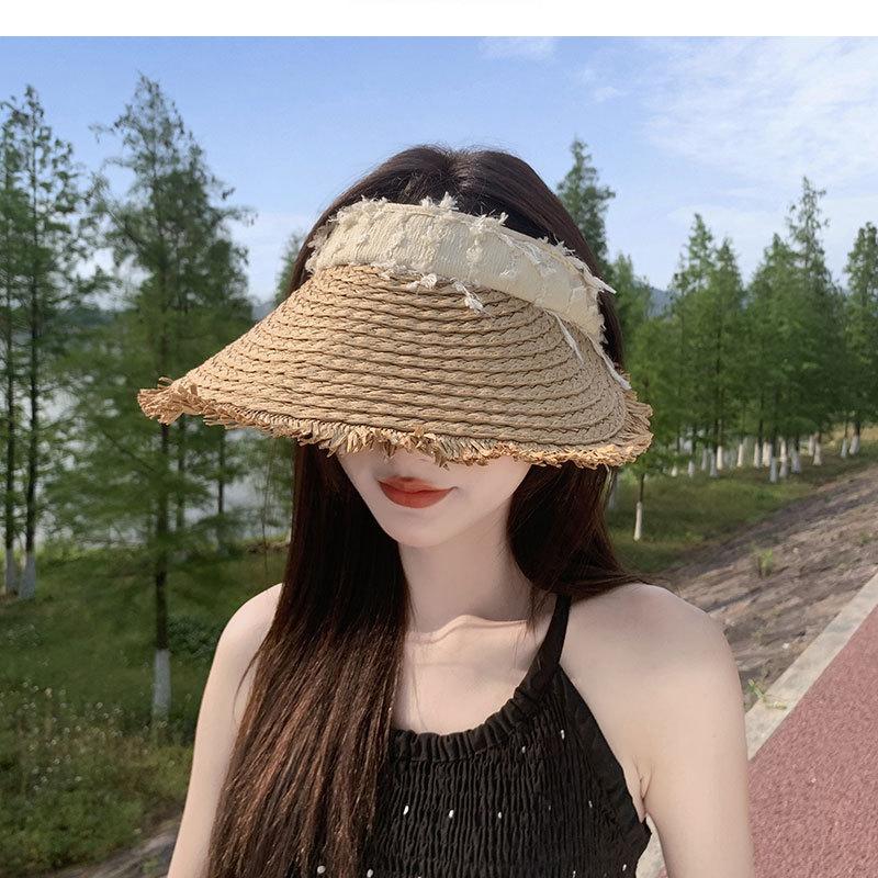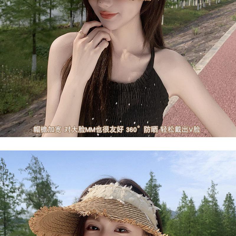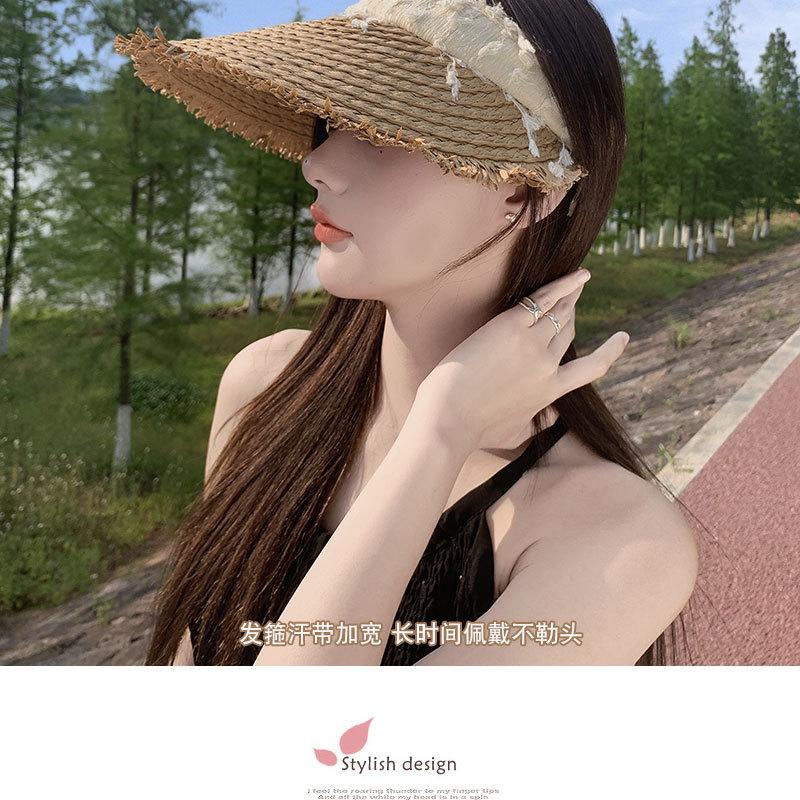Sombrero de Paja de Verano de Copa Abierta para Mujer 2025 Nuevo Estilo Vacaciones en la Playa Ala Ancha Sombrilla Sombrero para el Sol Sombrero para el Sol Versátil