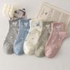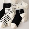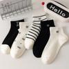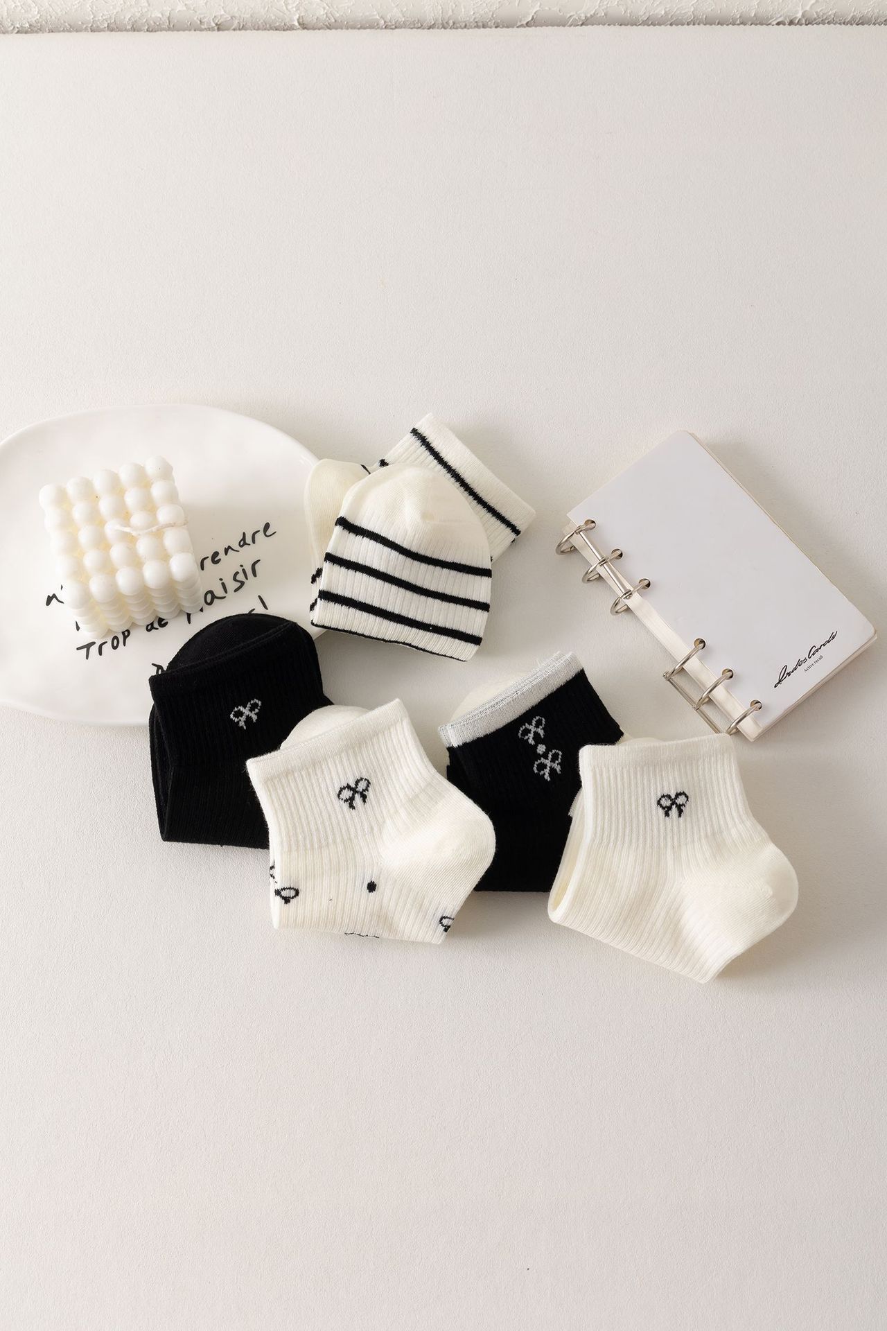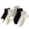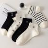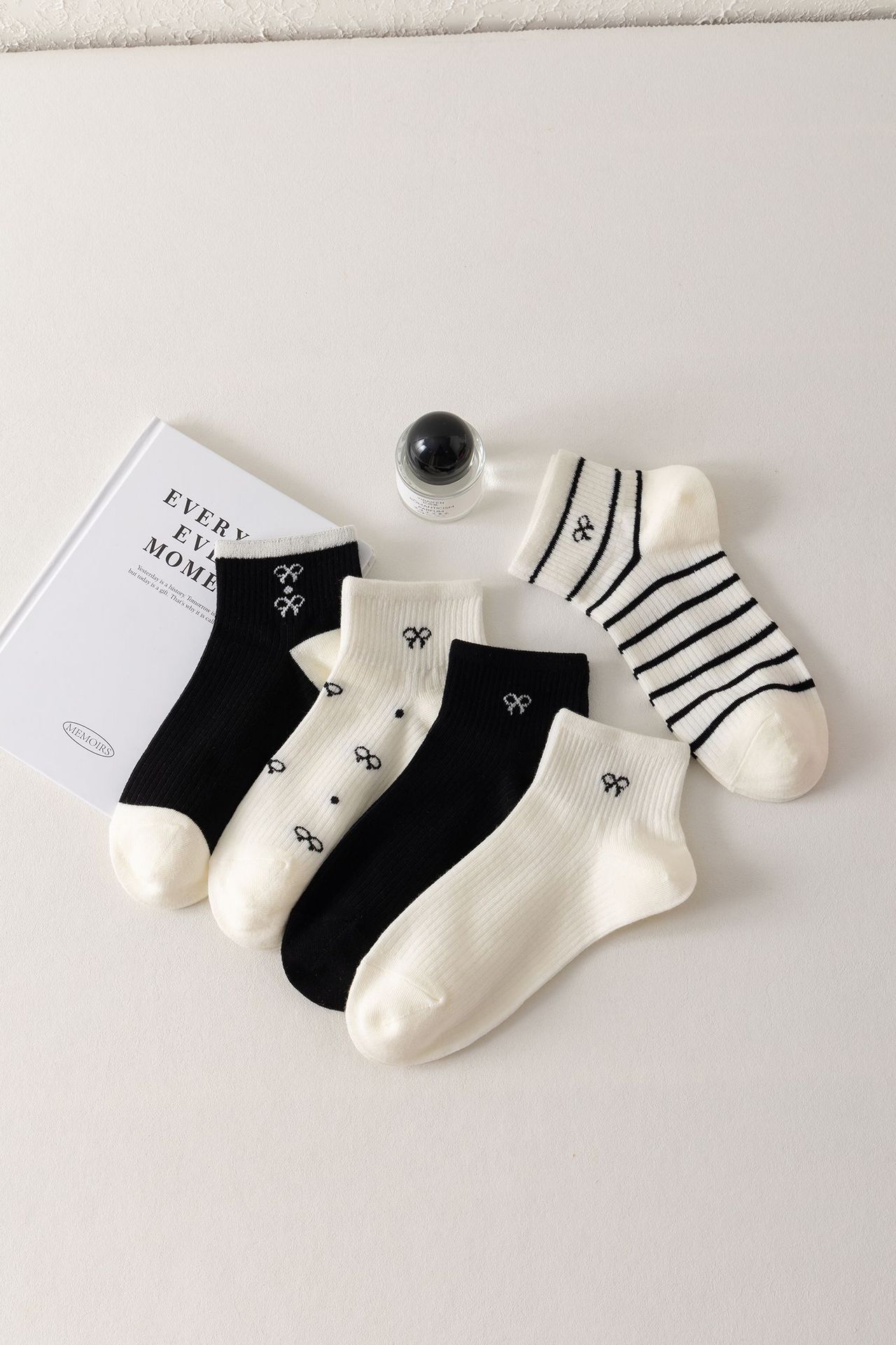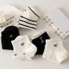 Calcetines cortos de mujer calcetines de estudiante blancos y negros calcetines de niña con lazo calcetines de algodón versátiles calcetines bajos calcetines cortos de estilo lindo y femenino