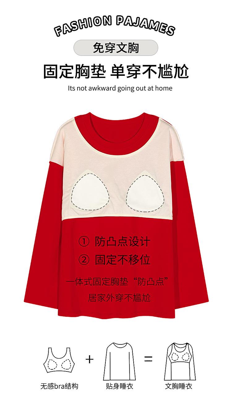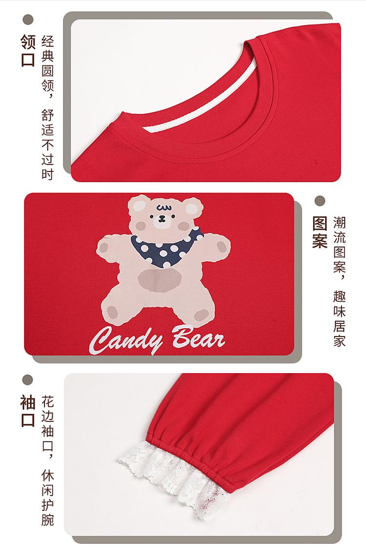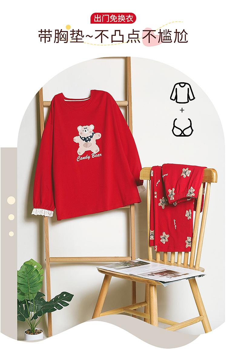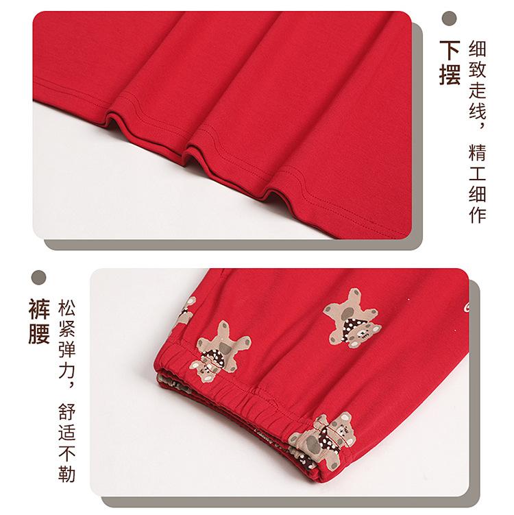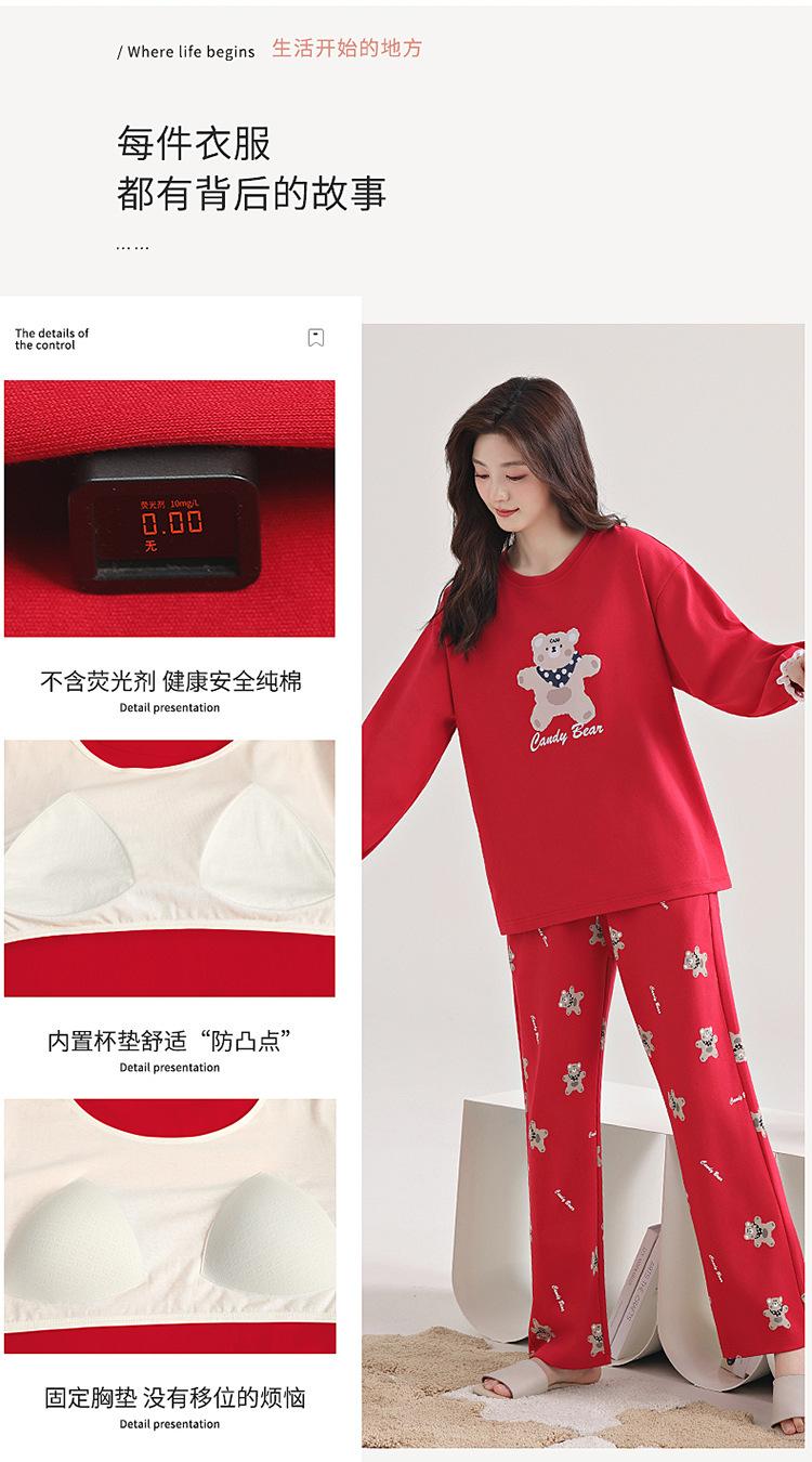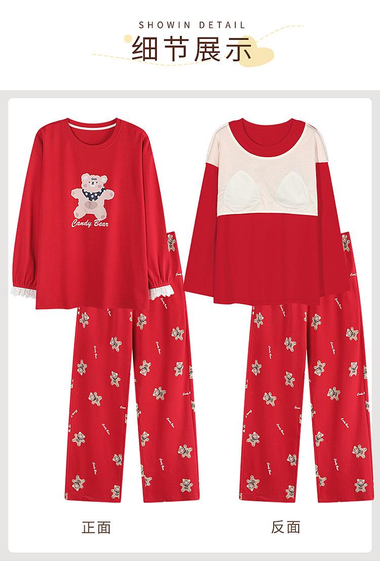 Pijama de Algodón Puro para Mujer Primavera y Otoño Manga Larga Pantalón Largo Sencillo Casual de Alta Gama Rojo Dibujos Animados Conjunto de Ropa para el Hogar