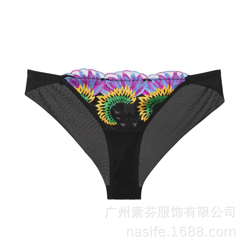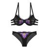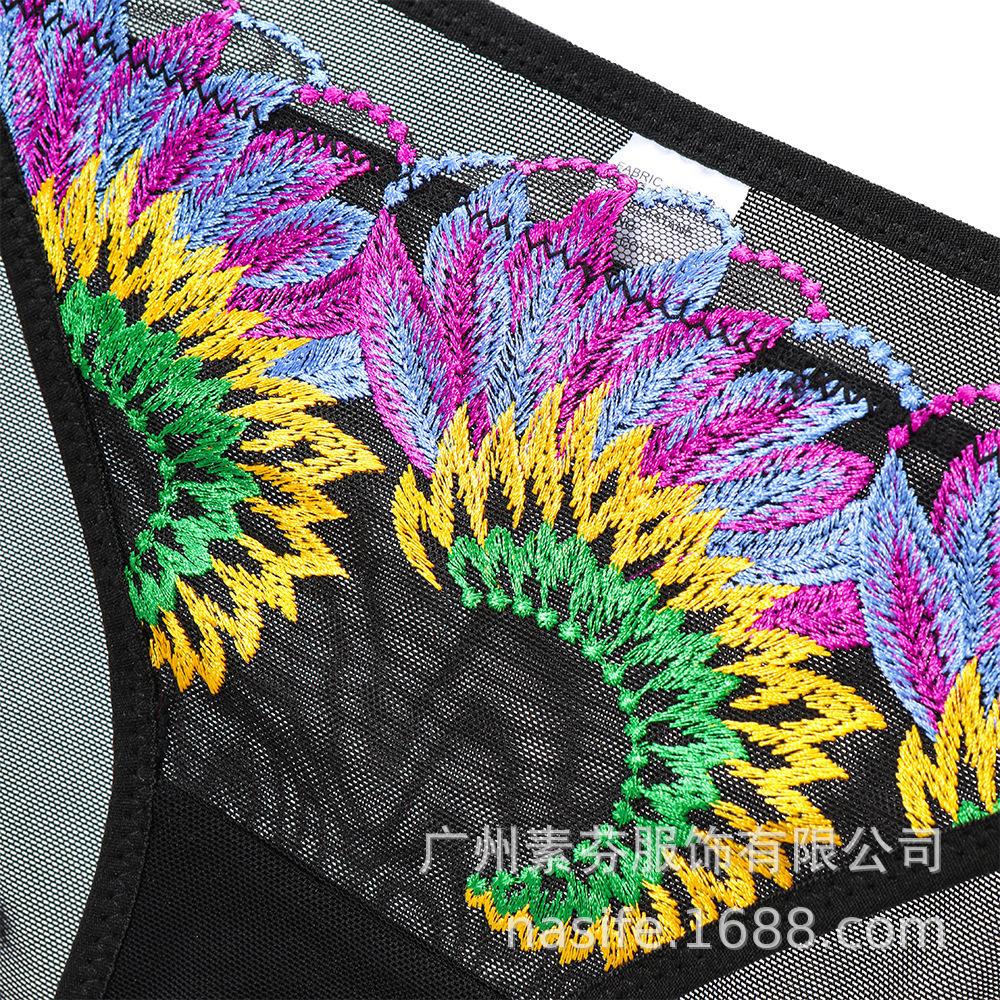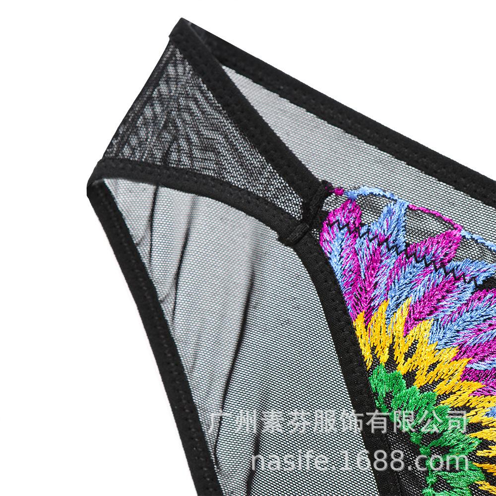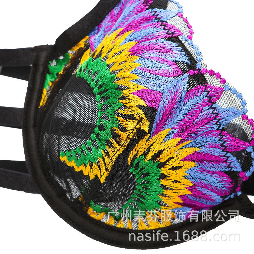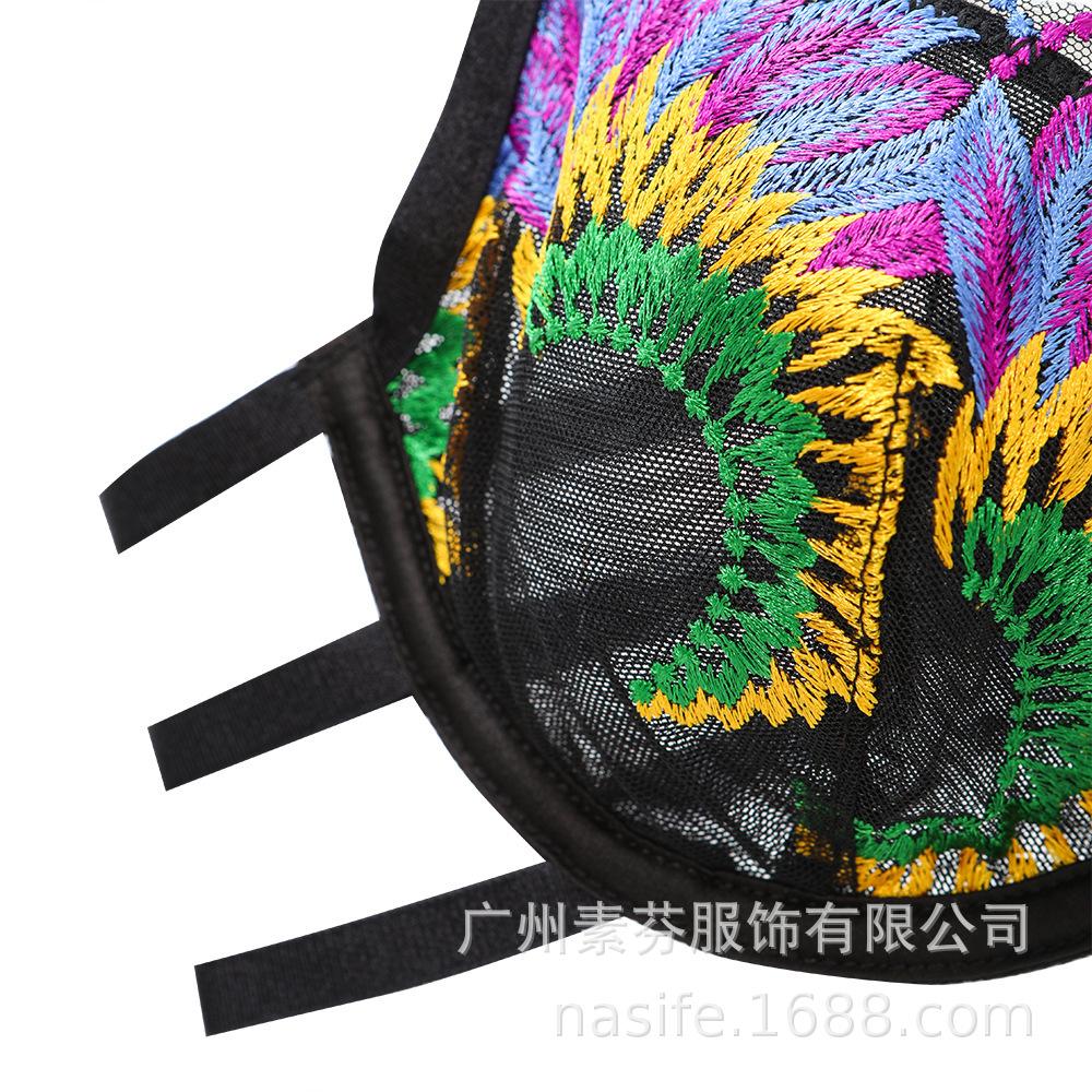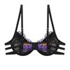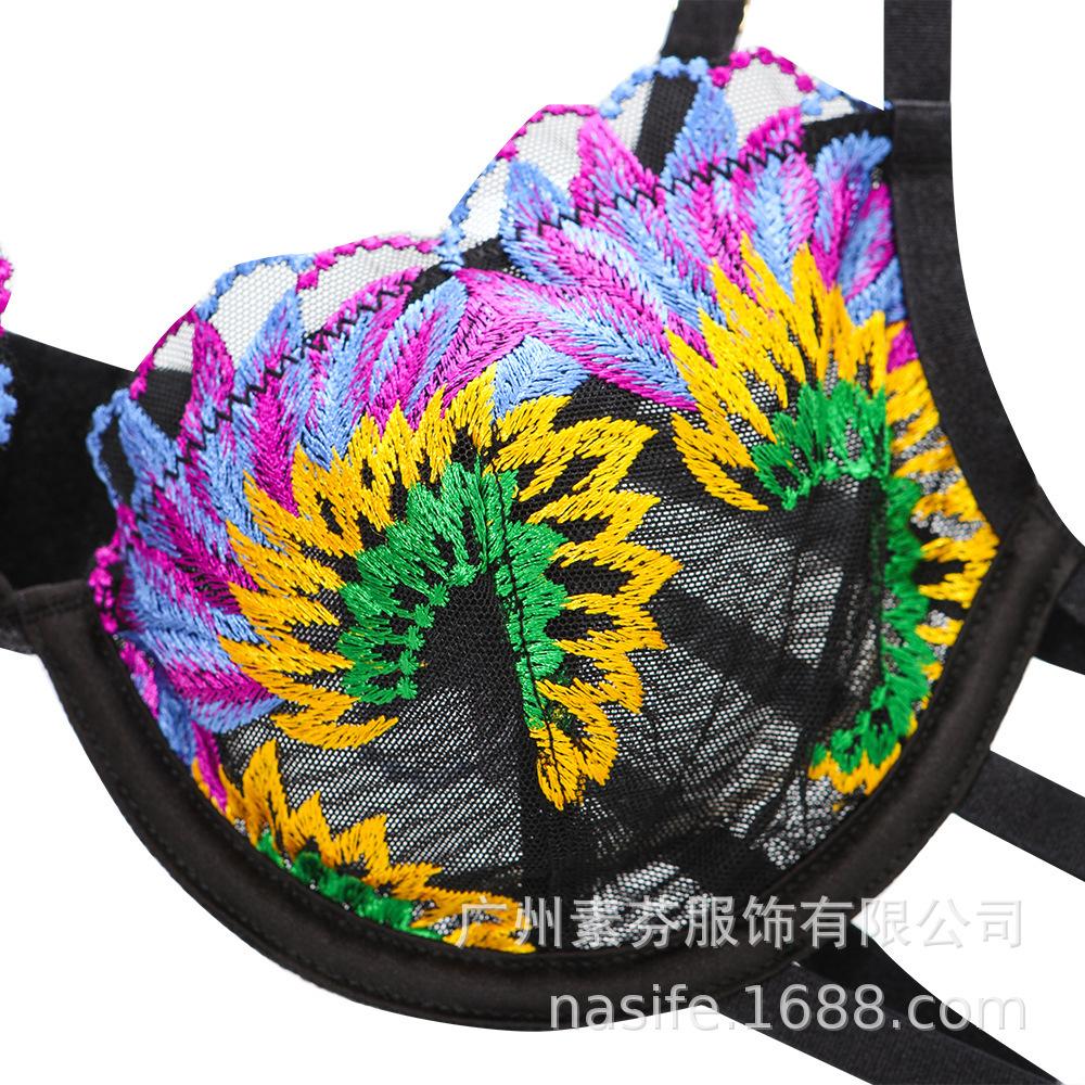 Conjunto de brasier push-up con aros de encaje sexy transfronterizo, bordado, malla ultrafina, pecho grande luce pequeño