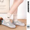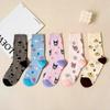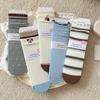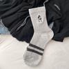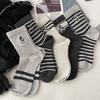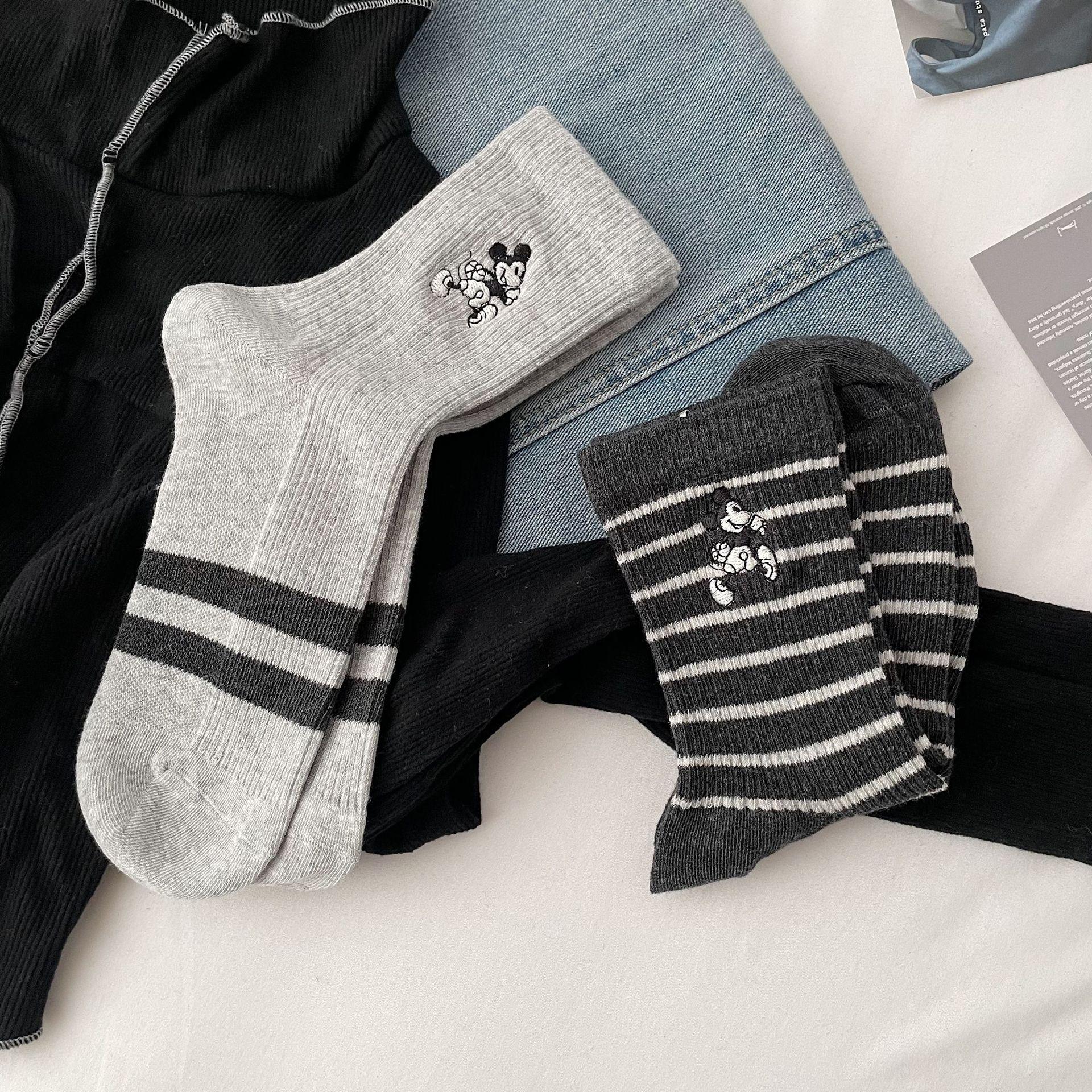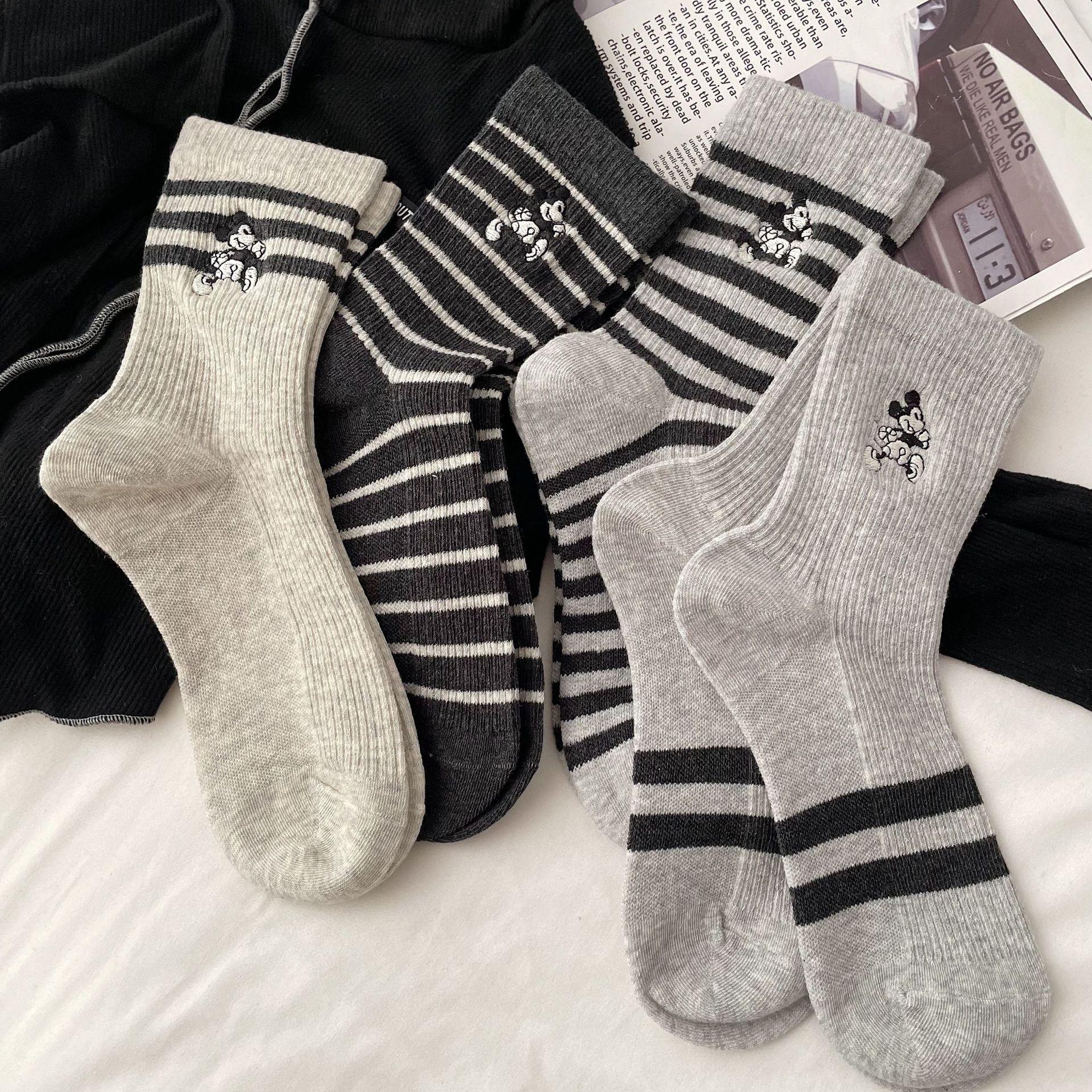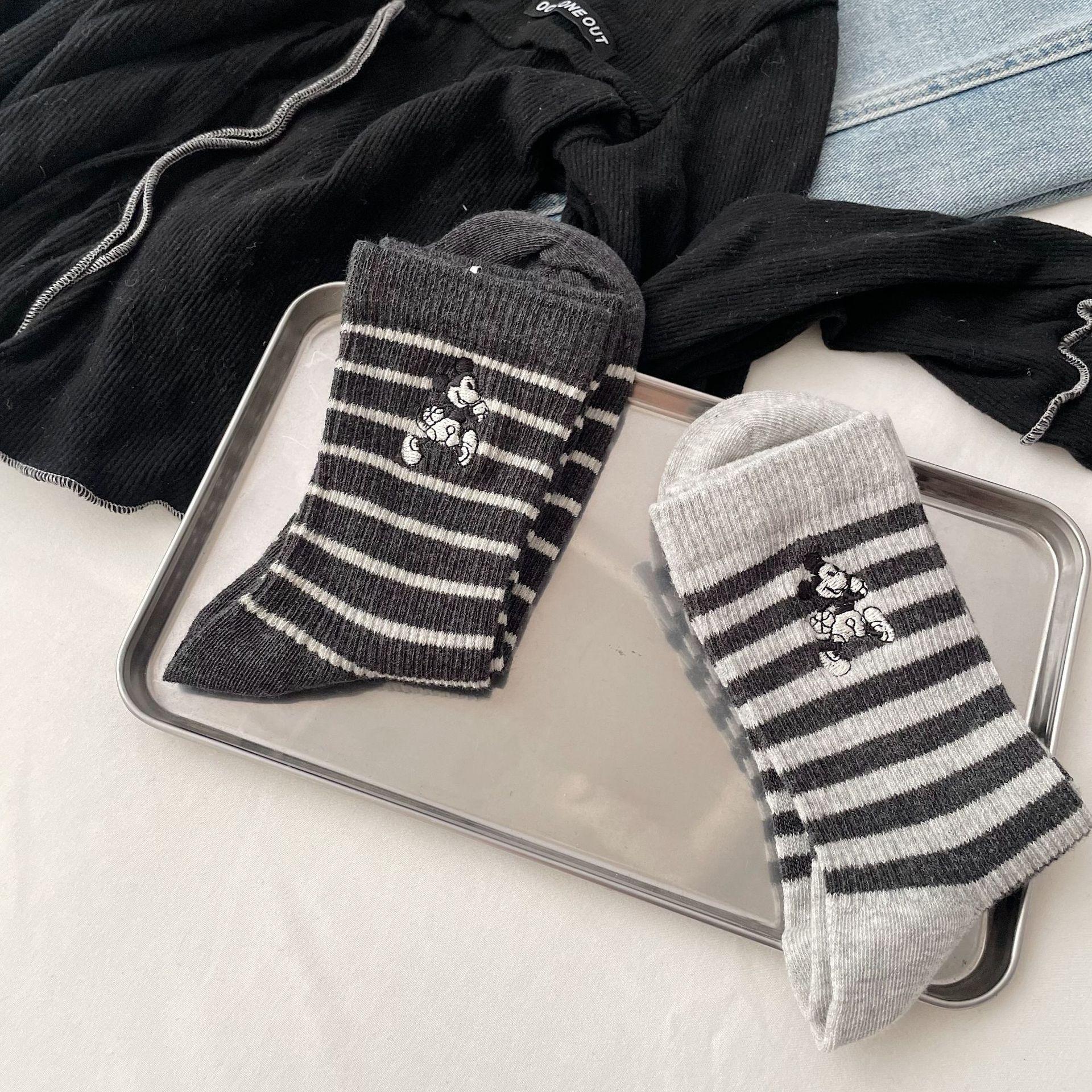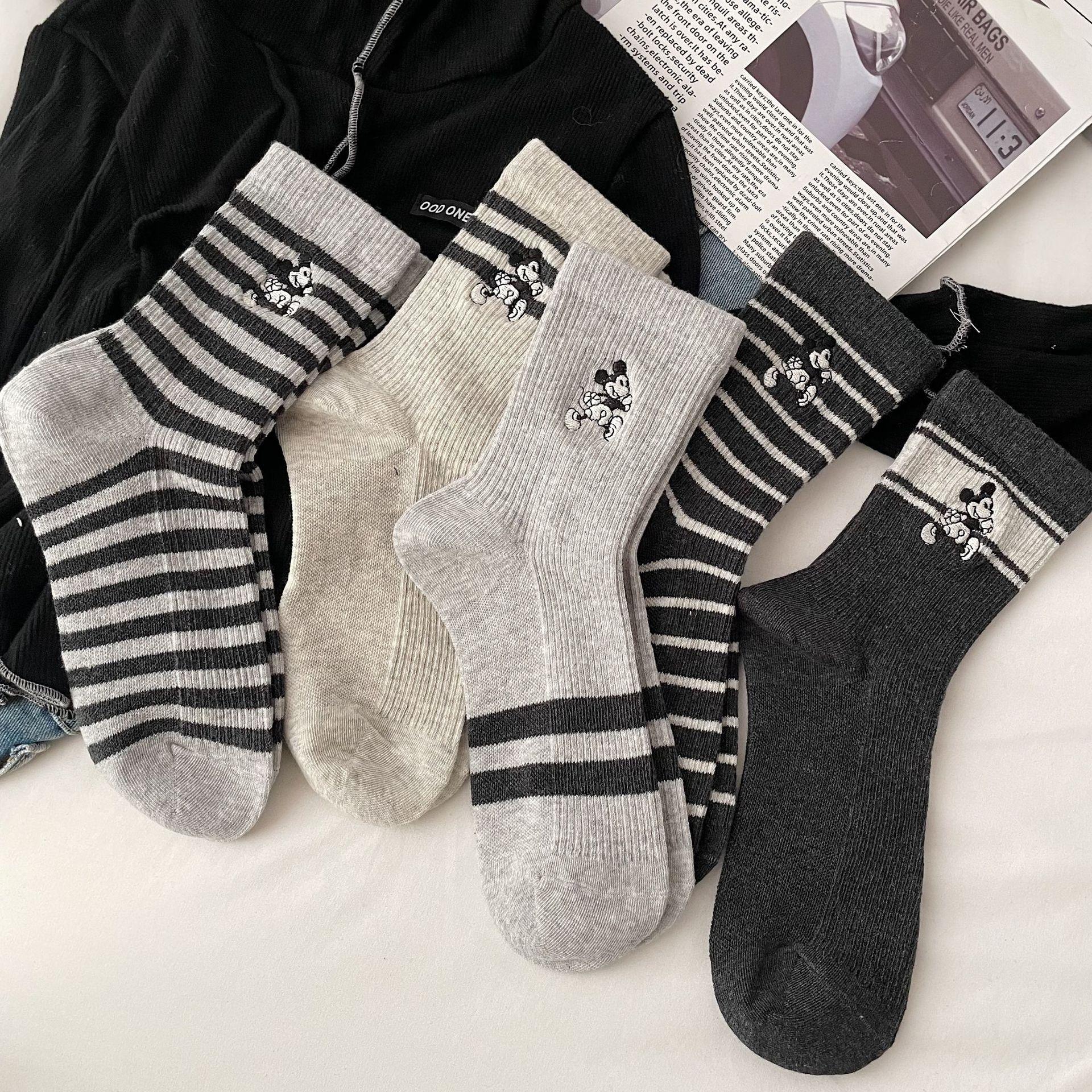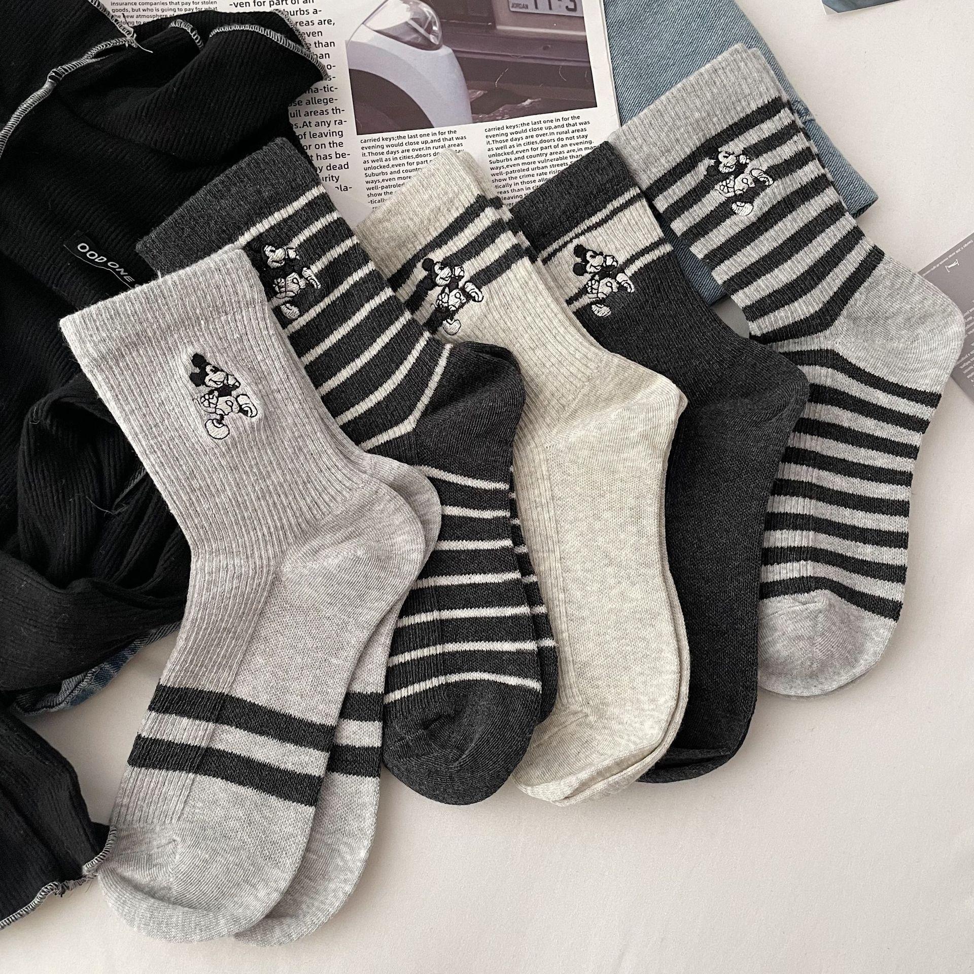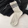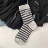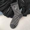 Calcetines Grises de Dibujos Animados a Rayas para Mujer Media Pantorrilla Japoneses Lindos Arrugados Estilo Universitario Calcetines Largos Calcetines de Algodón Puro para Mujer al Por Mayor