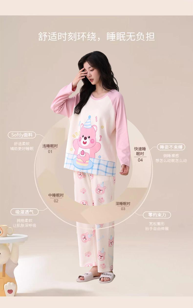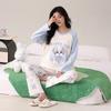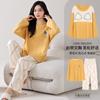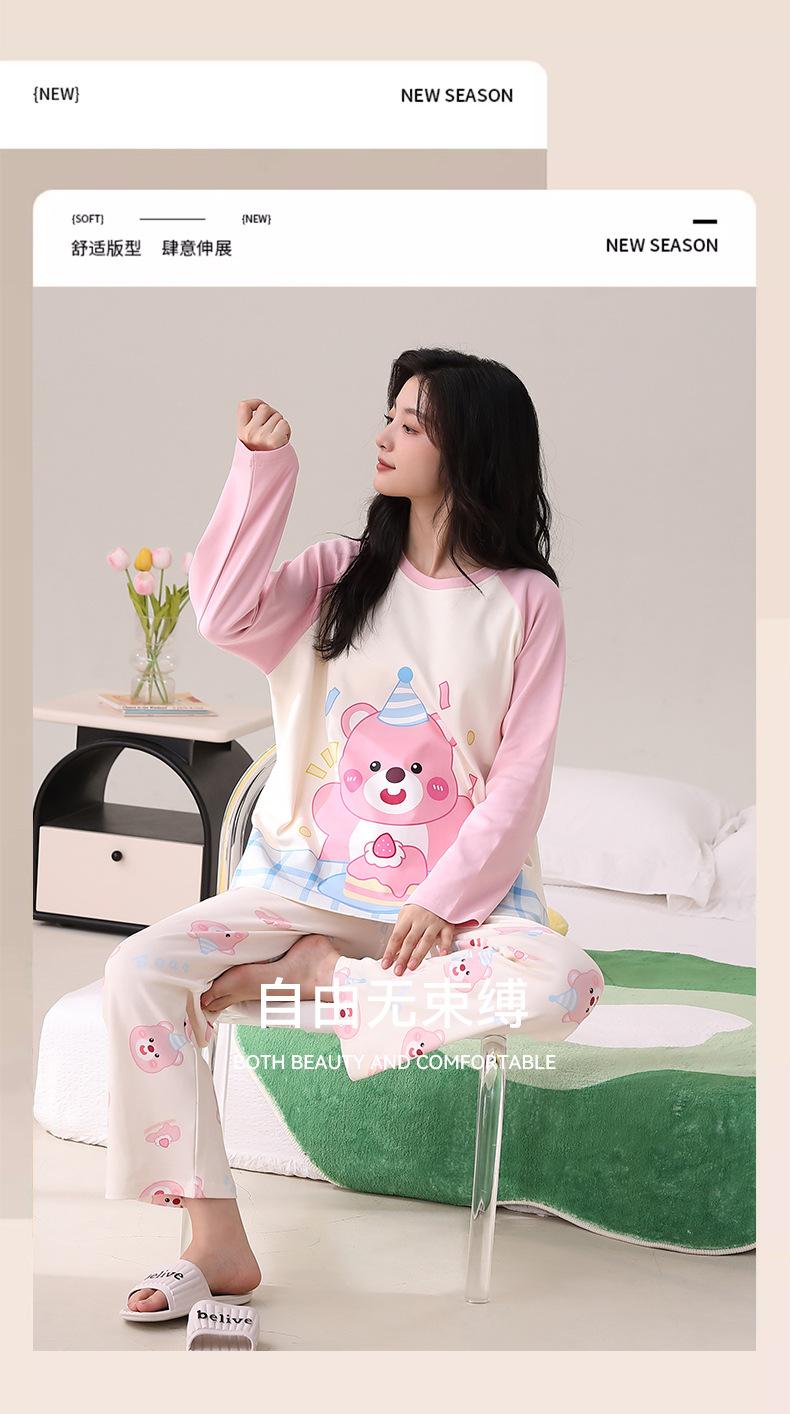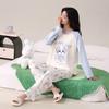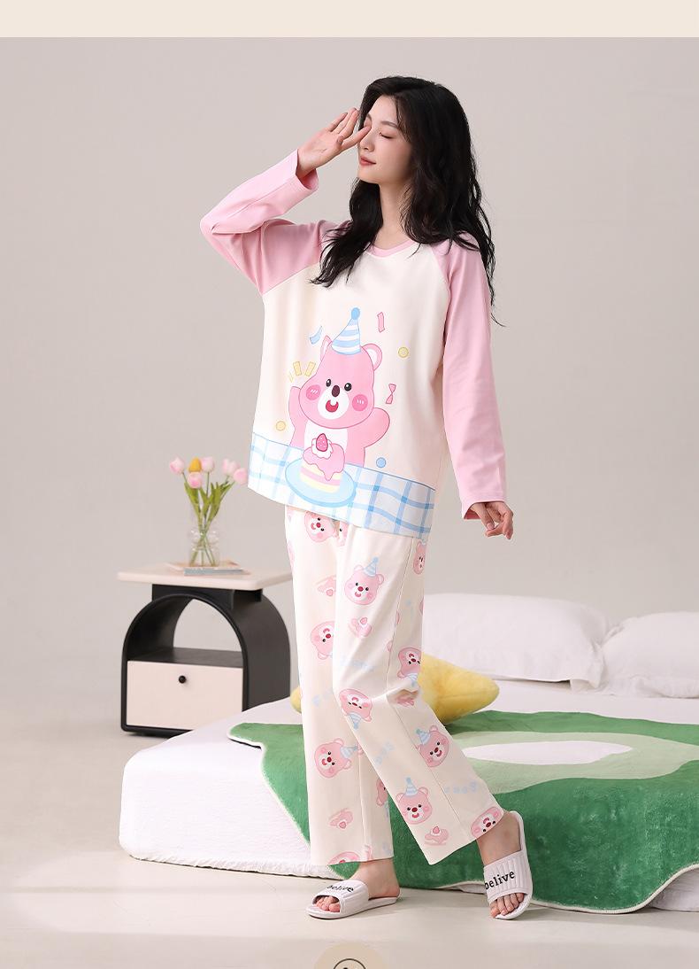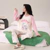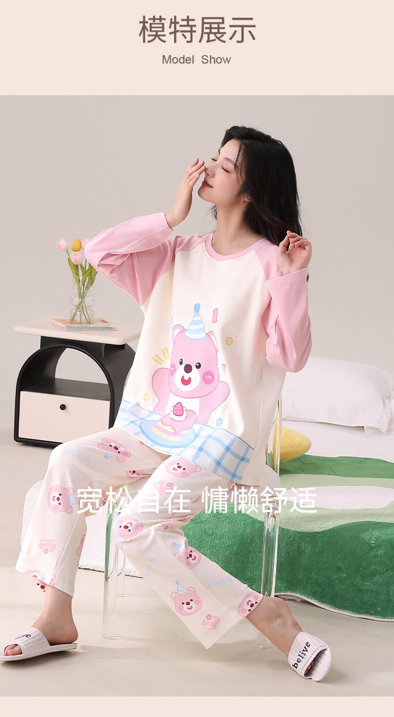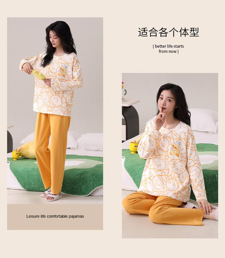 Otoño Nuevo Estilo con Almohadilla en el Pecho Pijama de Algodón Puro para Mujer Manga Larga Holgado Cuello Redondo Talla Grande Conjunto Estampado Lindo Ropa de Casa