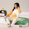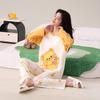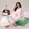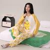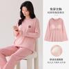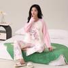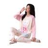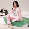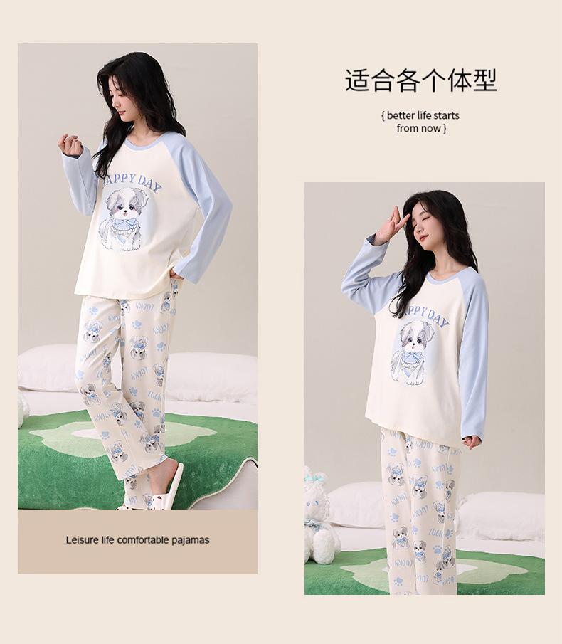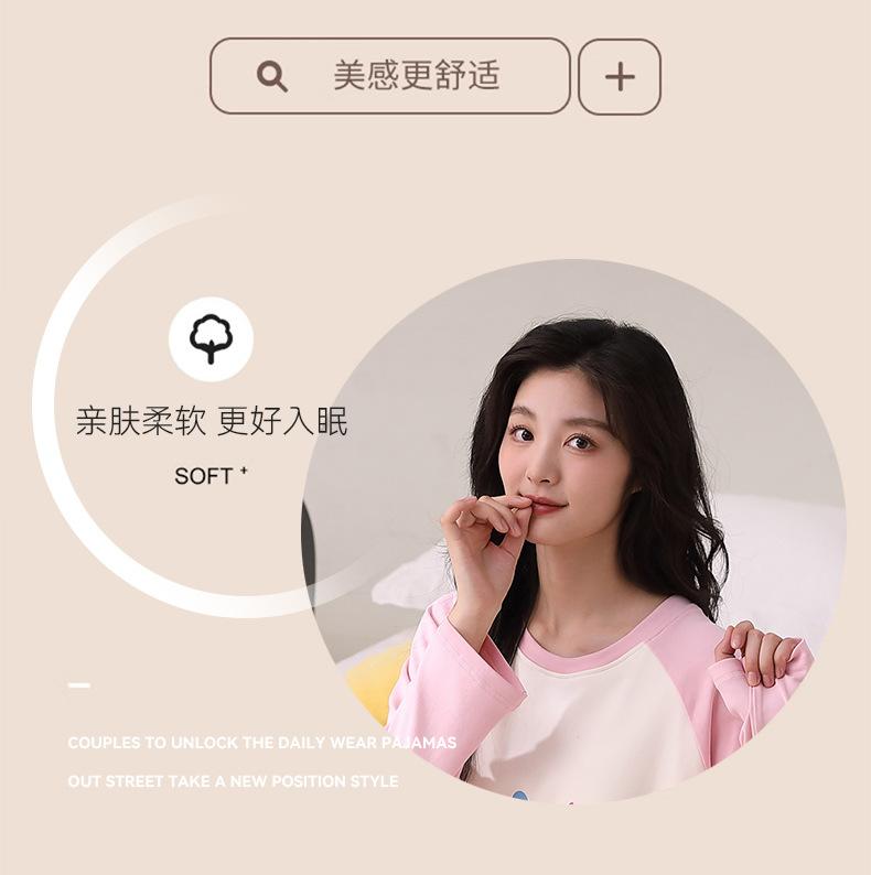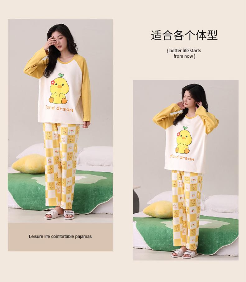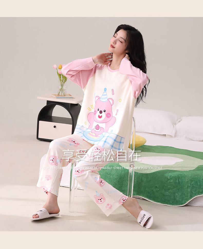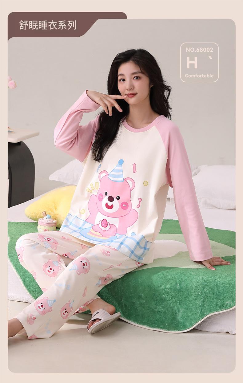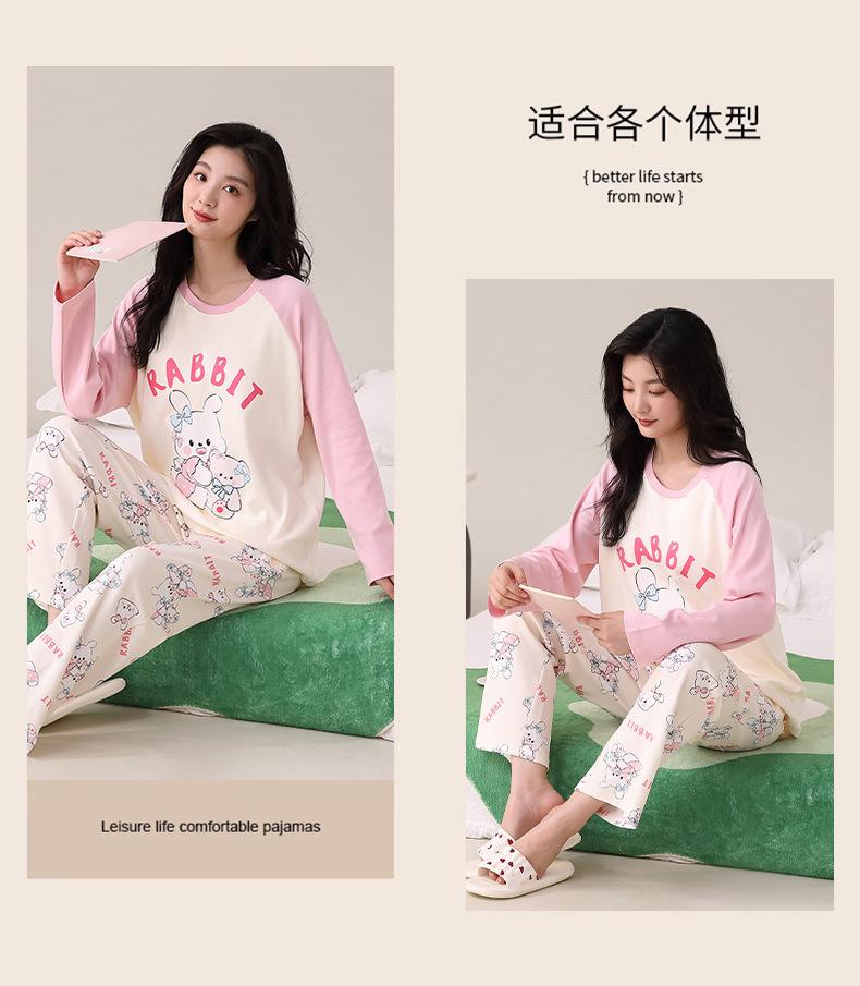 Otoño Nuevo Estilo con Almohadilla en el Pecho Pijama de Algodón Puro para Mujer Manga Larga Holgado Cuello Redondo Talla Grande Conjunto Estampado Lindo Ropa de Casa