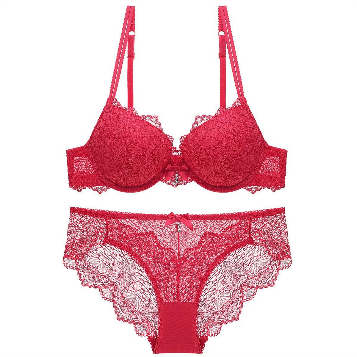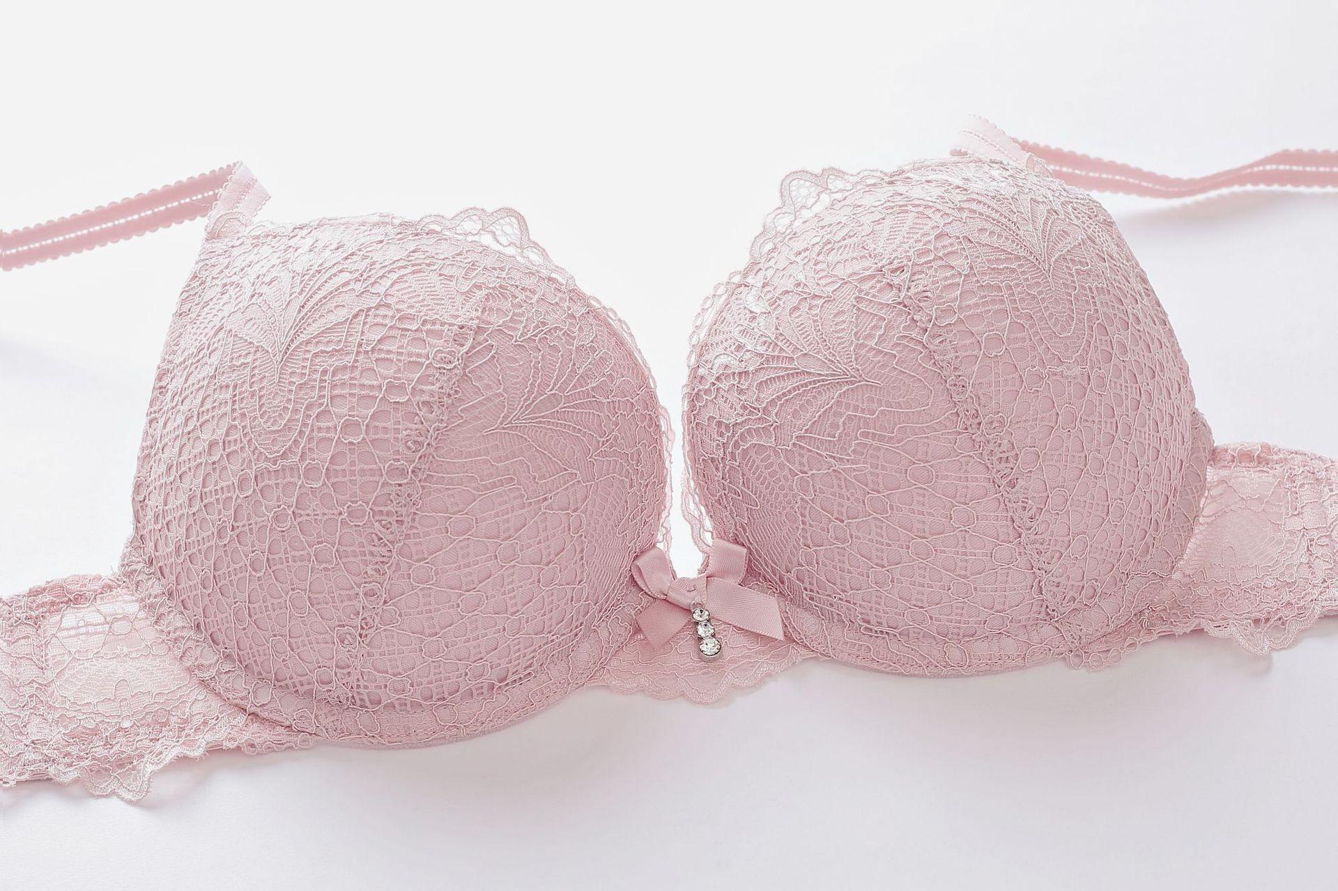 Ropa Interior Sexy de Encaje para Niña Transfronteriza Profundo V Realzante de Busto Pequeño Ropa Interior Recolectora Soporte Lateral Conjunto de Brasier Anticaída