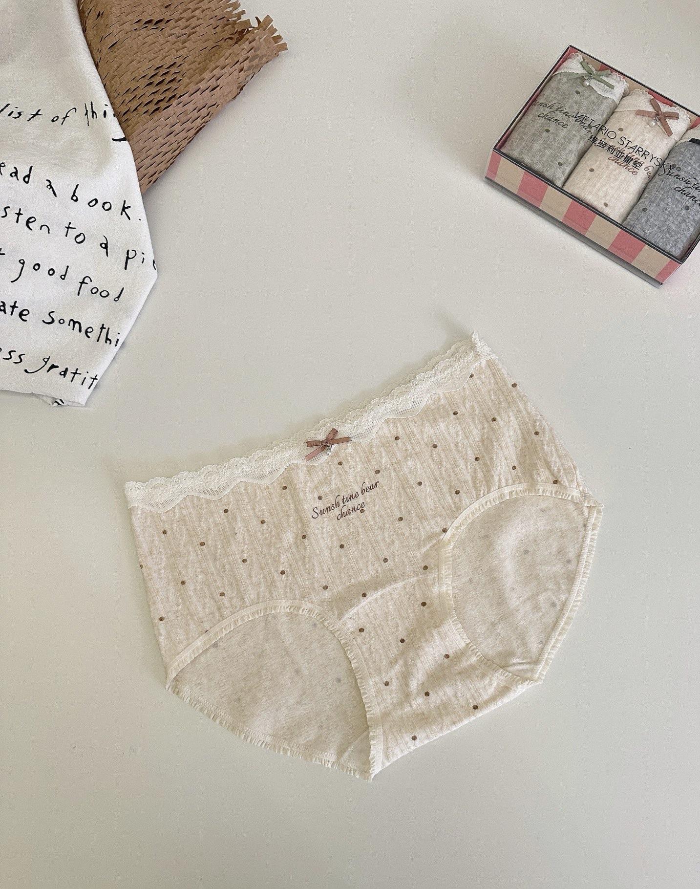 Pantalones de Lunares para Niña Algodón Jacquard Suave y Delicado con la Piel Transpirable y Nutritivo Calzoncillos Triangulares de Cintura Media para Mujer Transfronterizo
