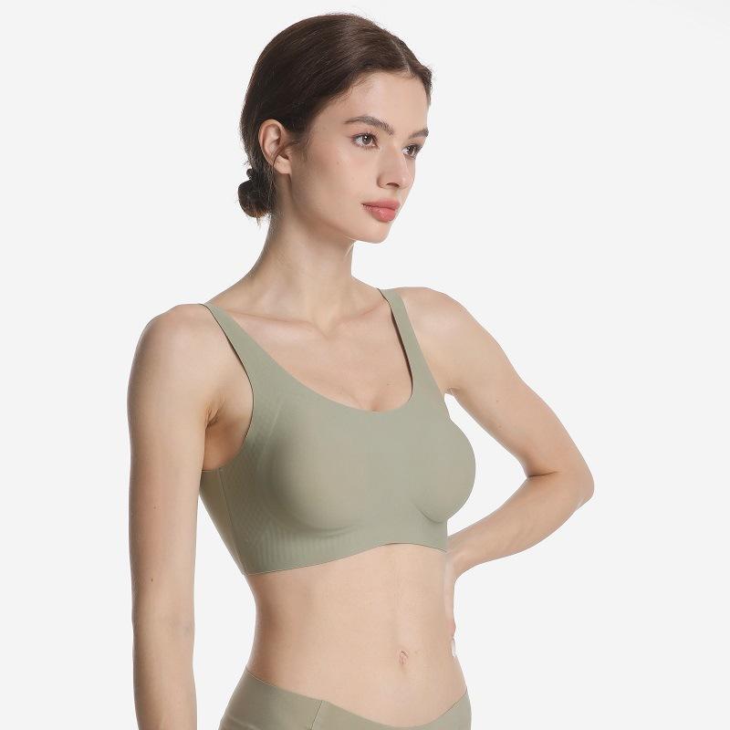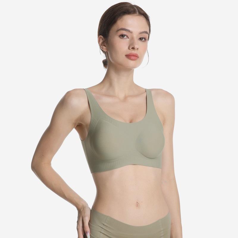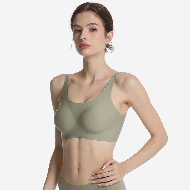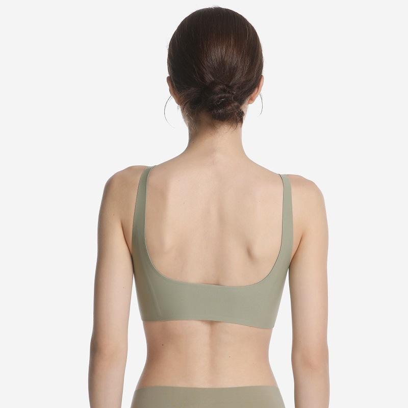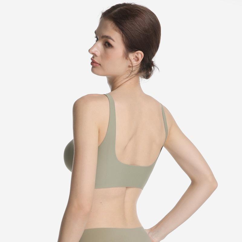 Sujetador sin costuras tipo chaleco de soporte suave con tira de gelatina, fino para alisar la espalda, cuello en U profundo sin espalda