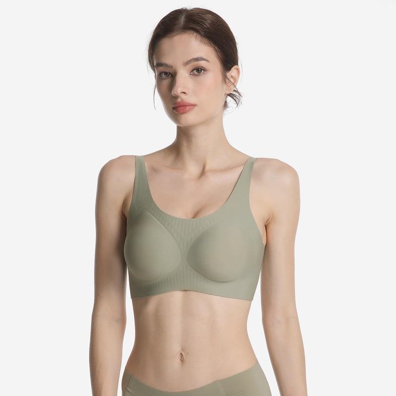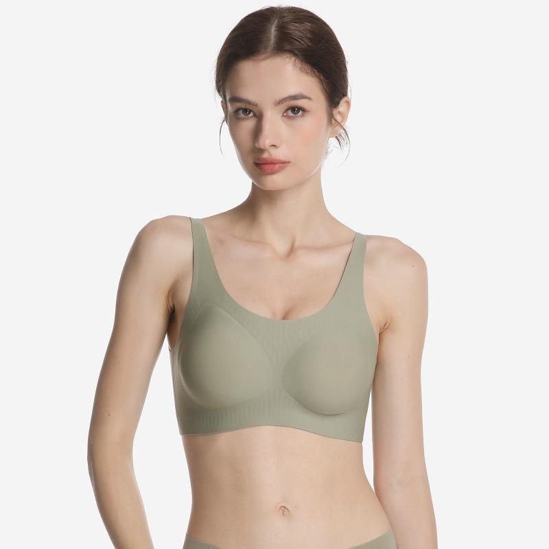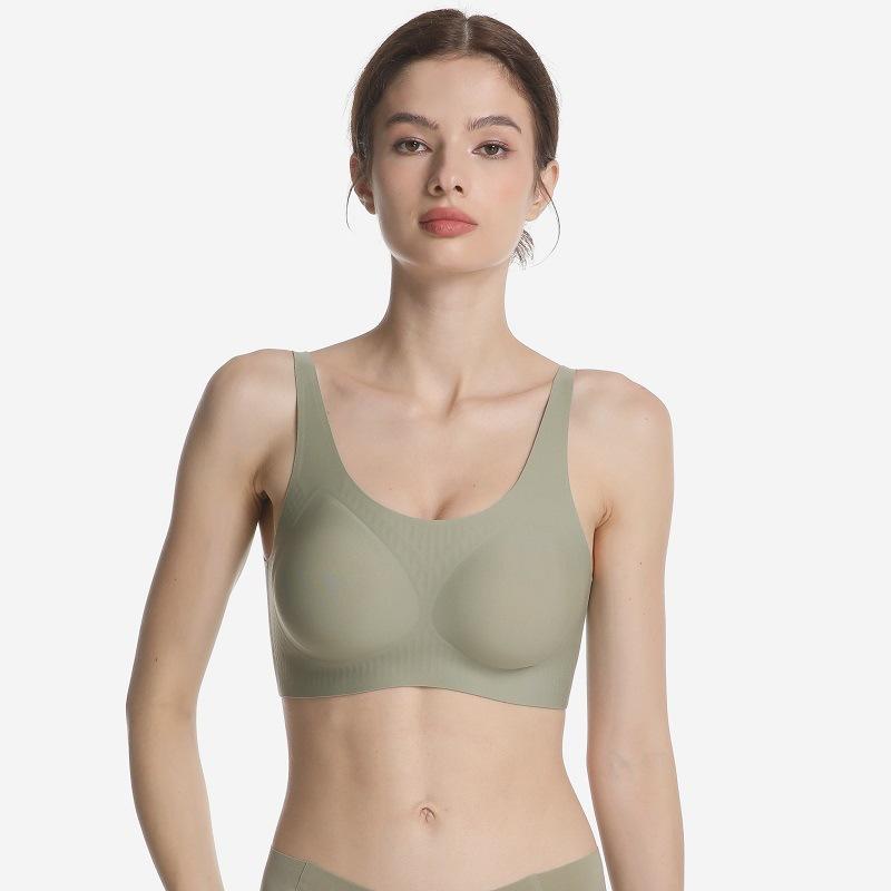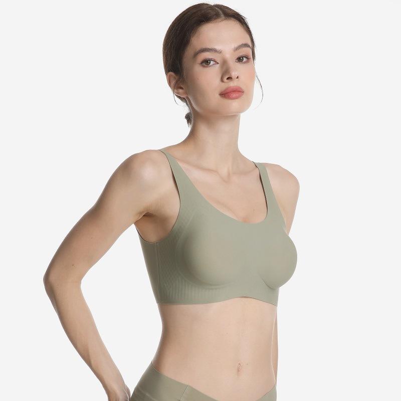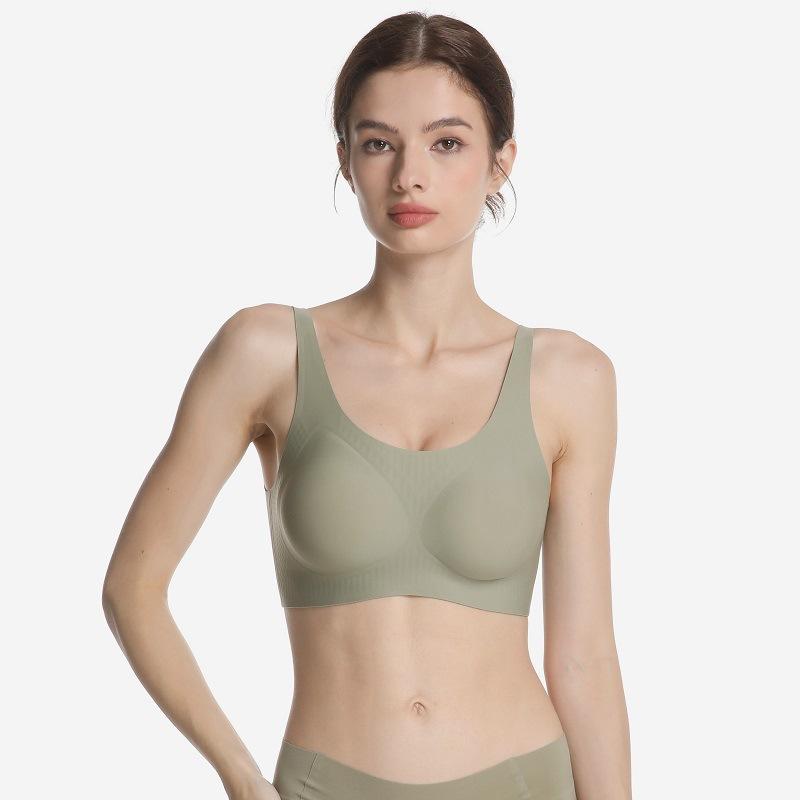 Sujetador sin costuras tipo chaleco de soporte suave con tira de gelatina, fino para alisar la espalda, cuello en U profundo sin espalda
