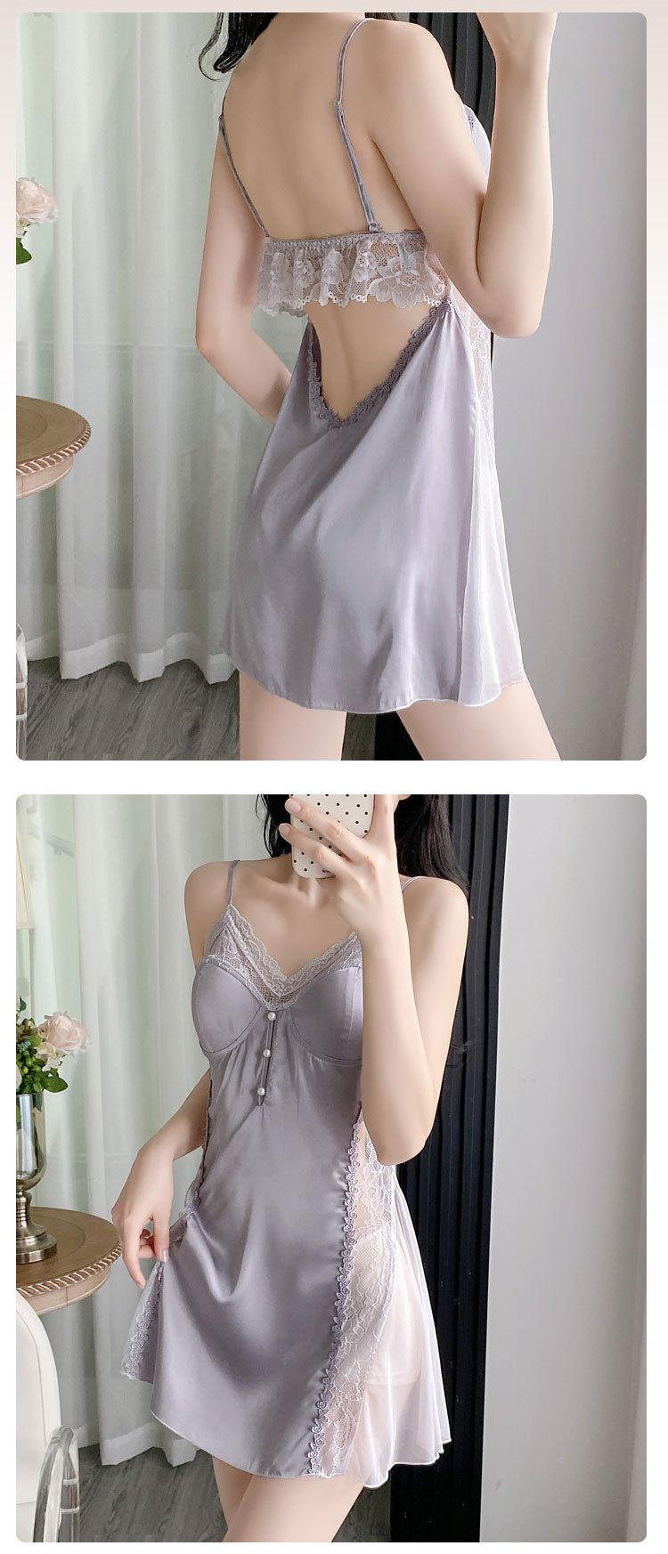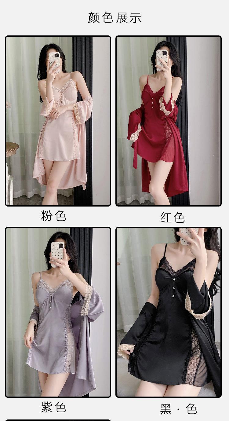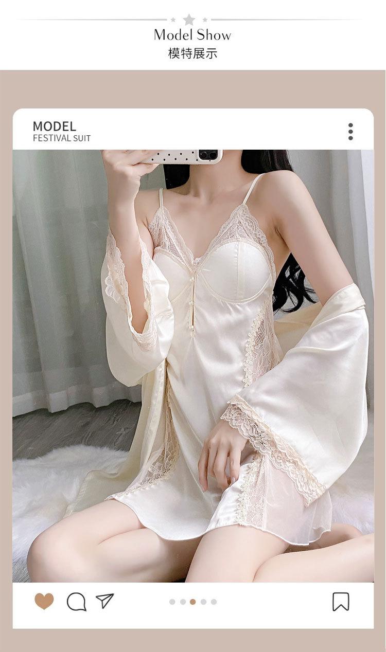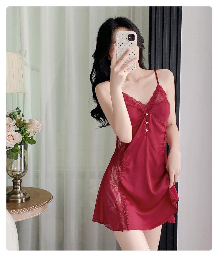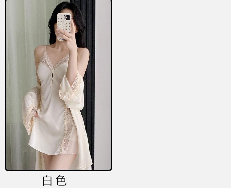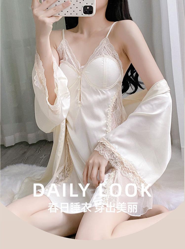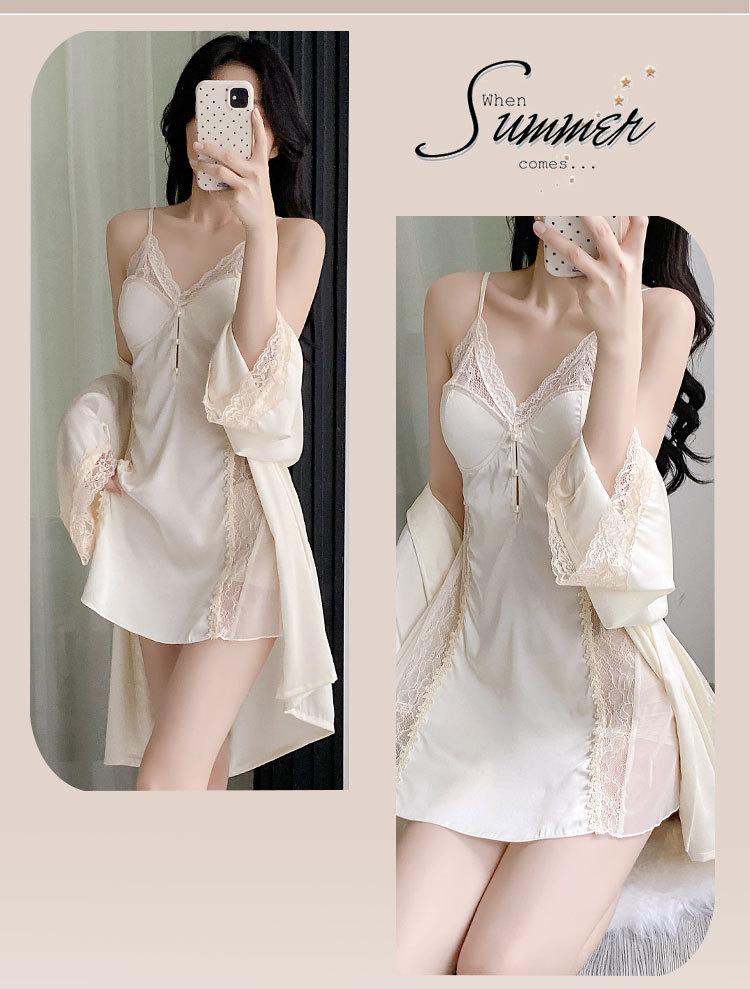 Pijama de Seda de Hielo Nuevo 2025 Batín Francés Delgado Pijama de Verano para Mujer Transpirable Sexy Encaje Camisola Pijama Ropa para el Hogar