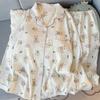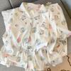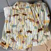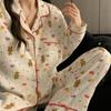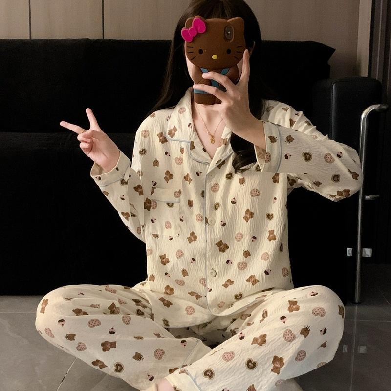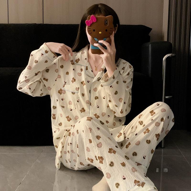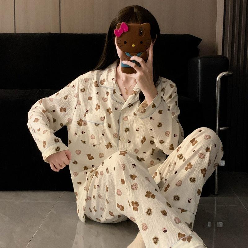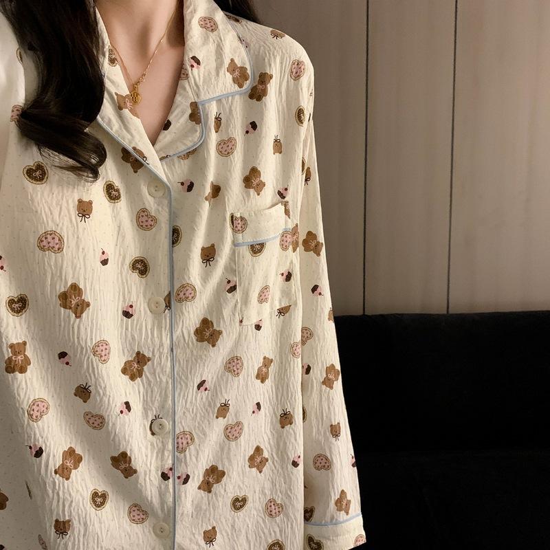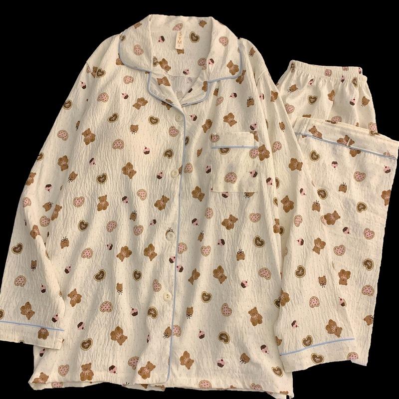 Fábrica en stock talla grande Pijama para Mujer Dibujos Animados Galletas Oso Primavera y Otoño Lindo Ropa de Casa para Niña Ropa Exterior Conjunto de Dos Piezas