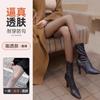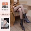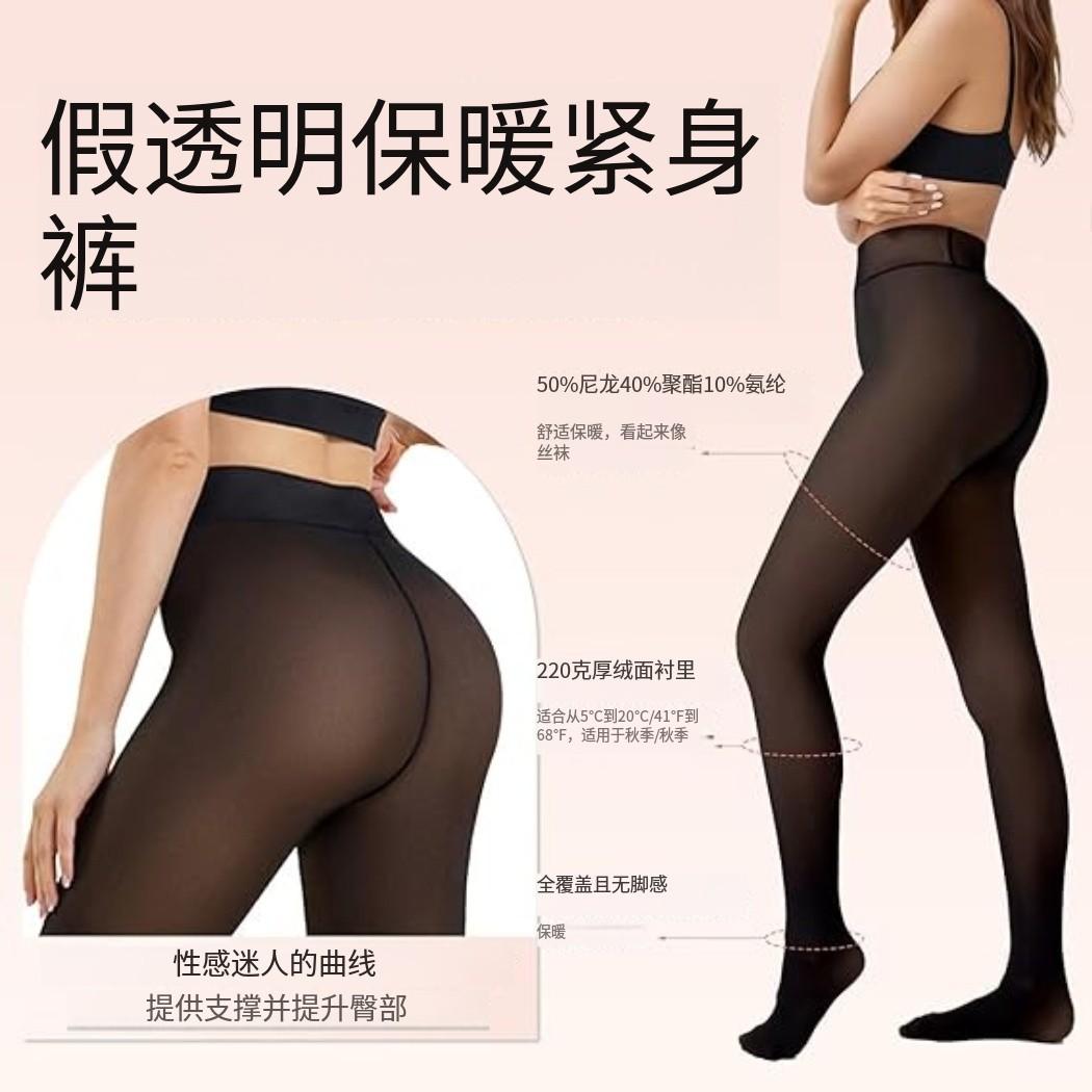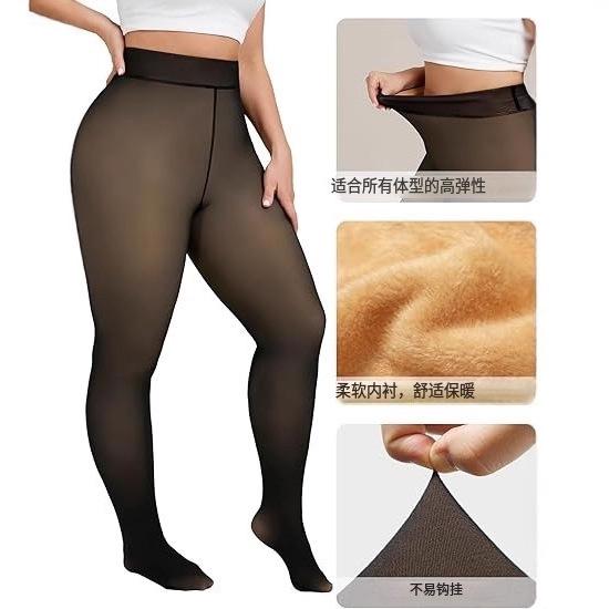 Ropa exterior transfronteriza de nailon cálida estilo otoño e invierno transparente talla grande leggings forro polar para mujer pantimedias negras transparentes de una línea en la entrepierna