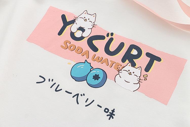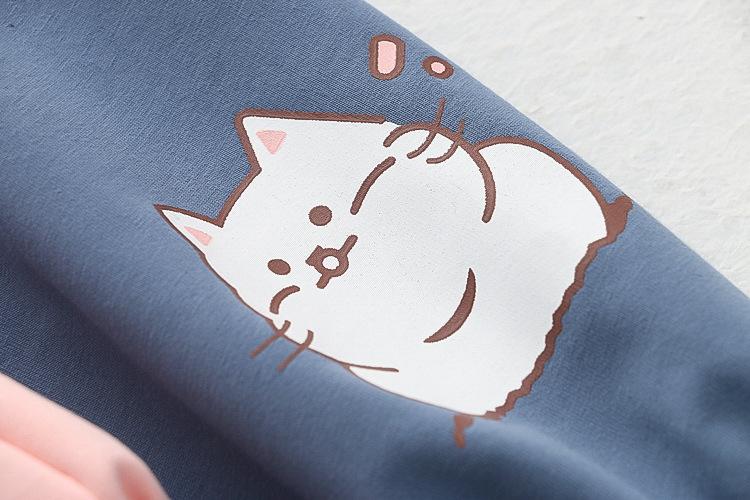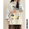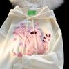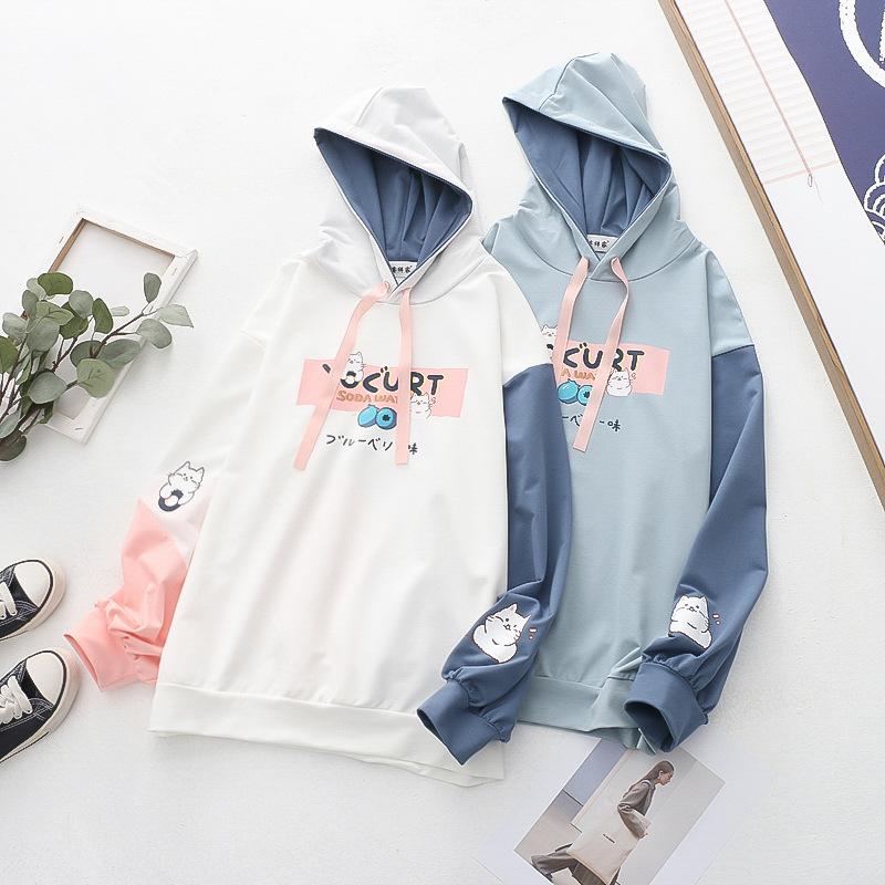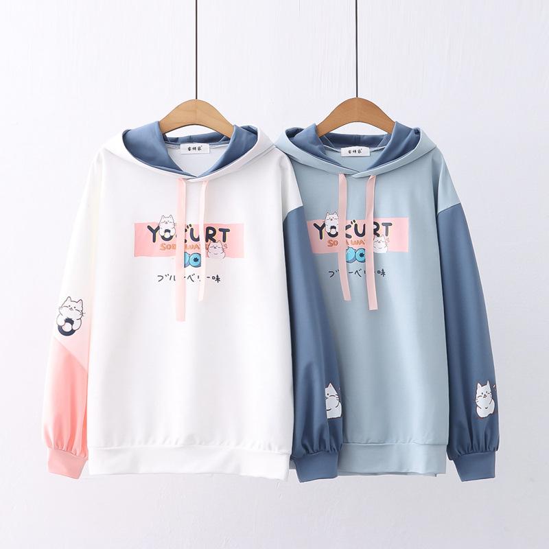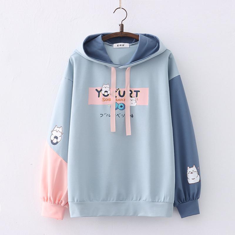 Primavera 2022 nuevo suéter de manga larga con capucha estampado de gato arándano con letras japonesas para mujer top casual