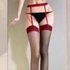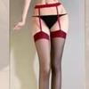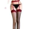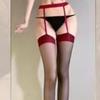 Medias de liga ultradelgadas color block de banda ancha de una pieza medias sexy tirantes rojo y negro pantimedias transparentes recorte de cuatro lados medias puras y seductoras