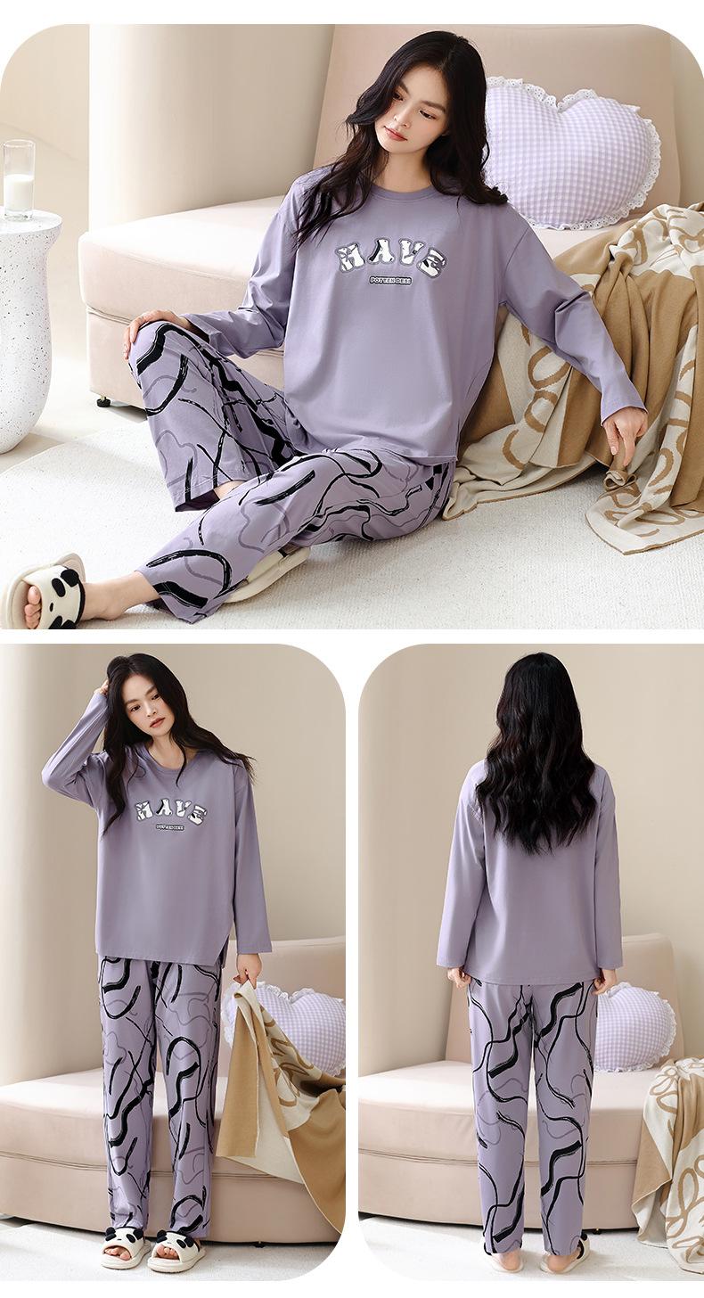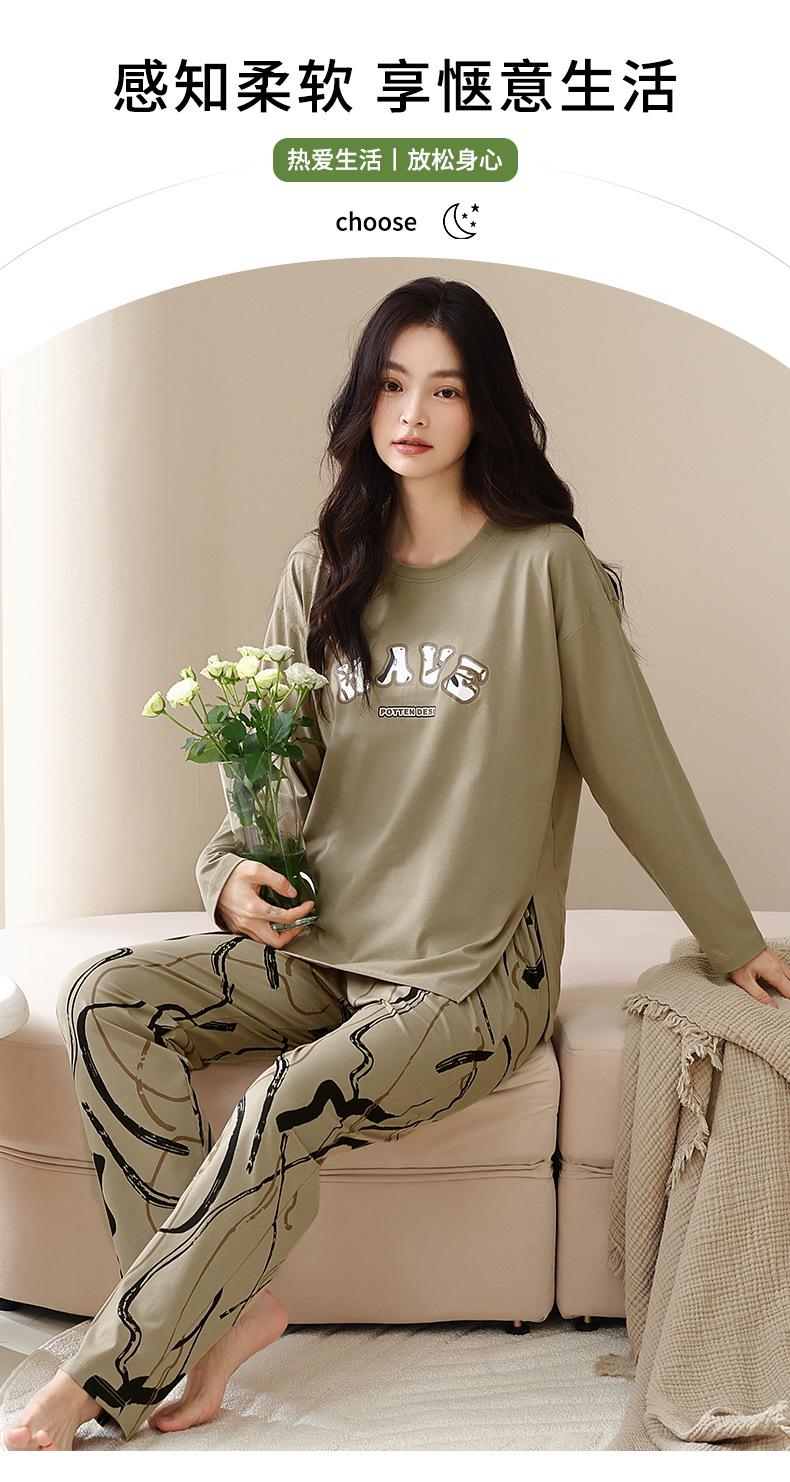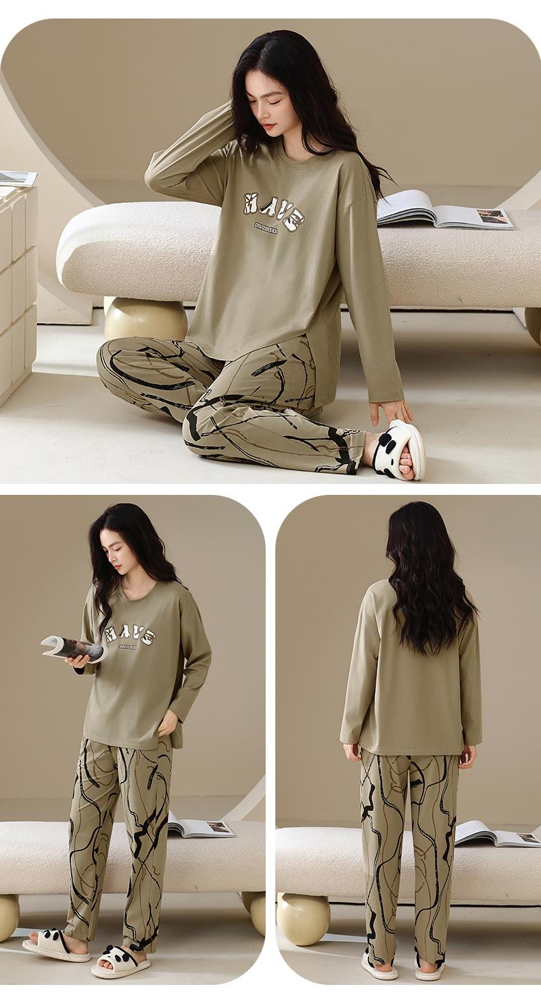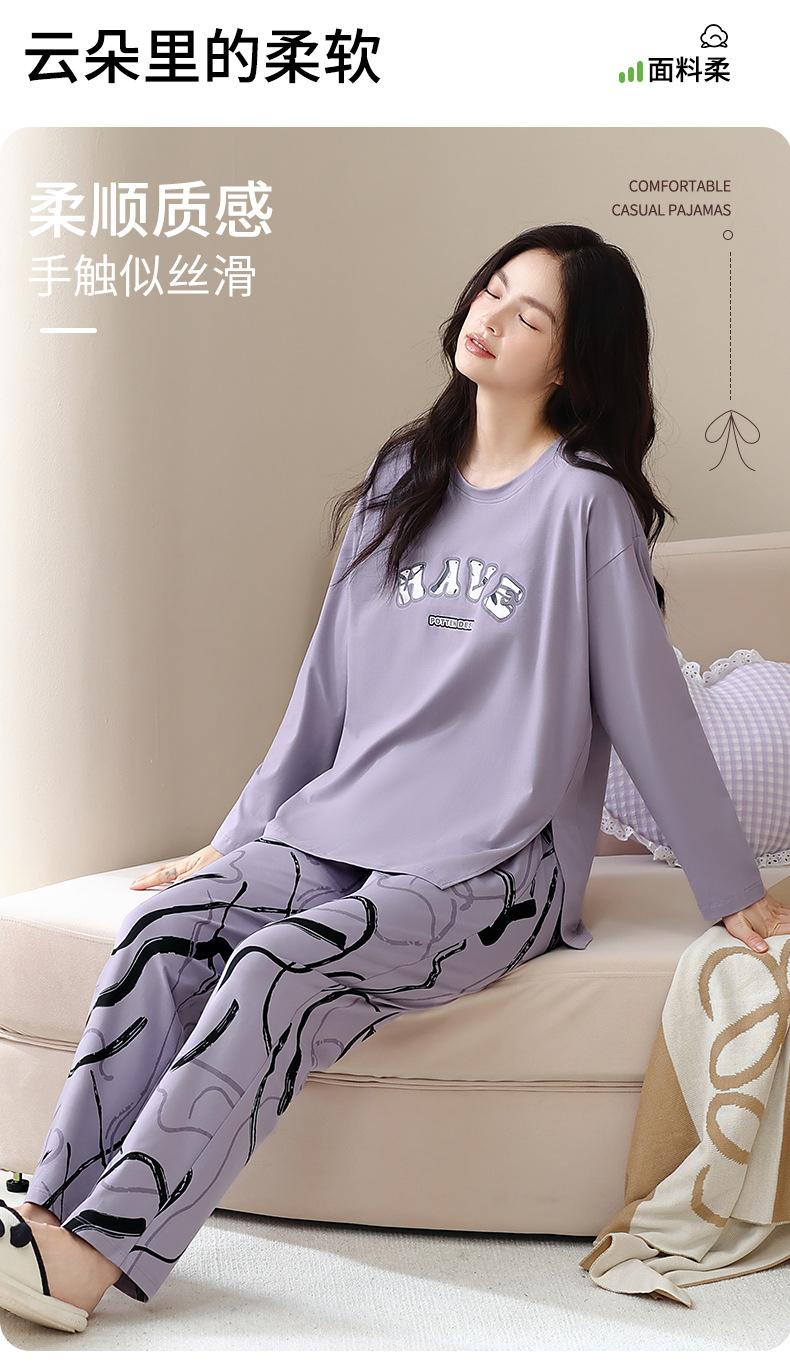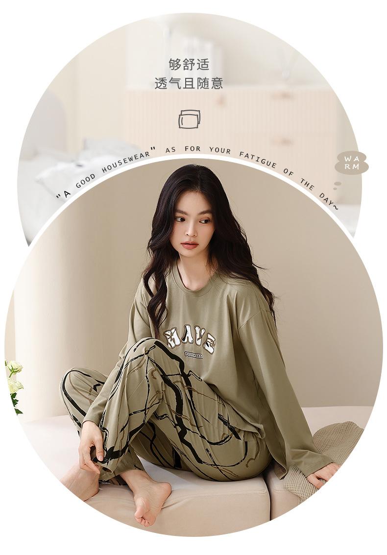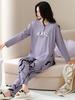 Pijamas de Manga Larga para Mujer Otoño Algodón Puro Jersey Estilo Coreano Viento Perezoso Ropa de Hogar Otoño Pijamas de Talla Grande para Mujer