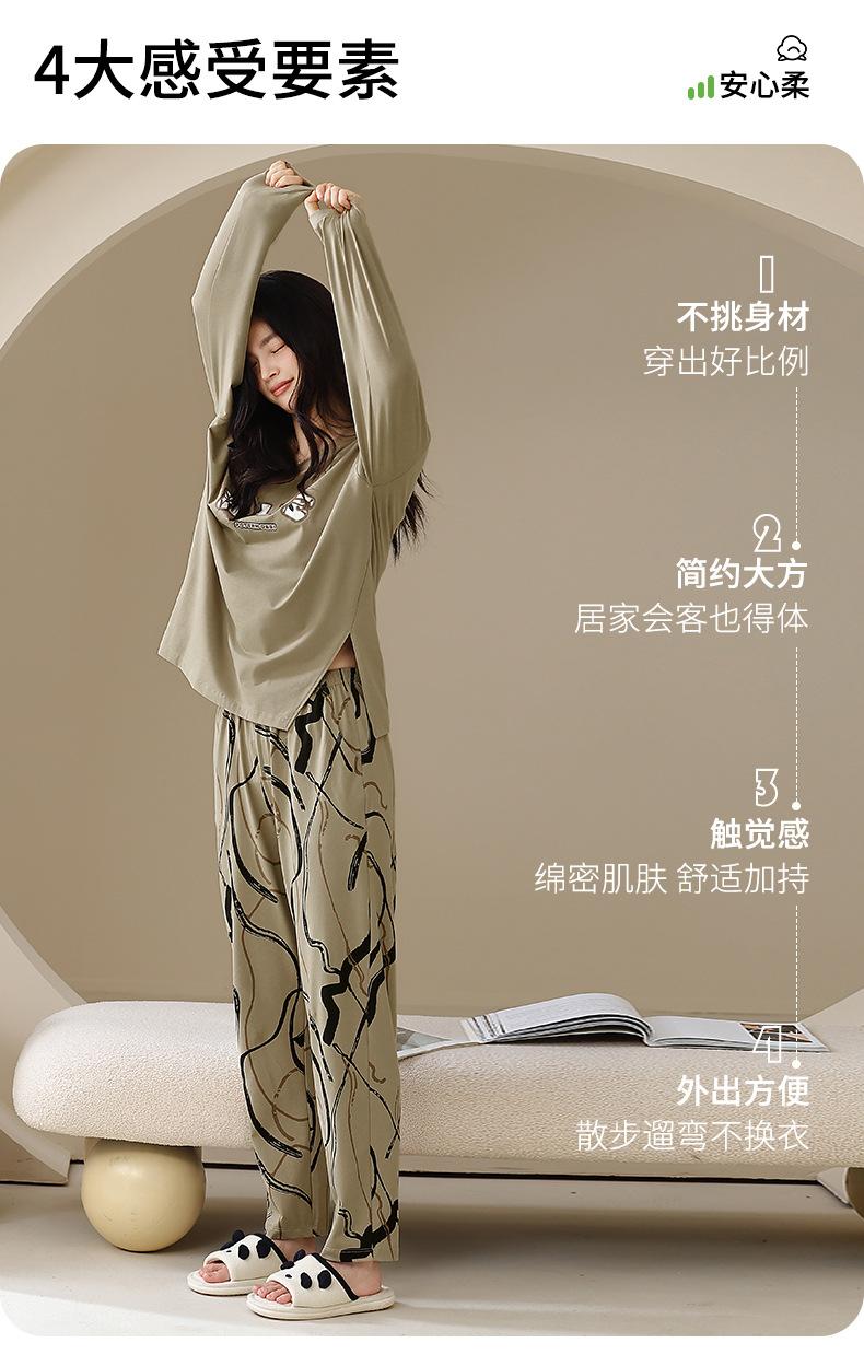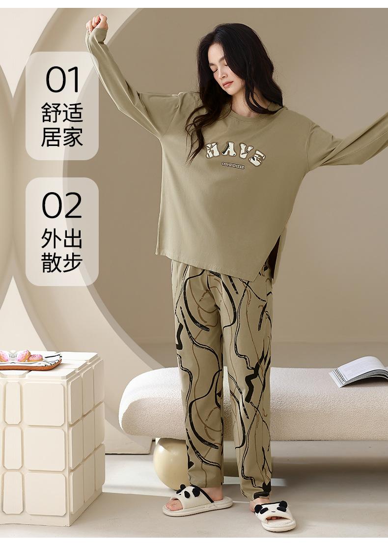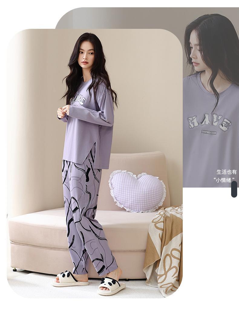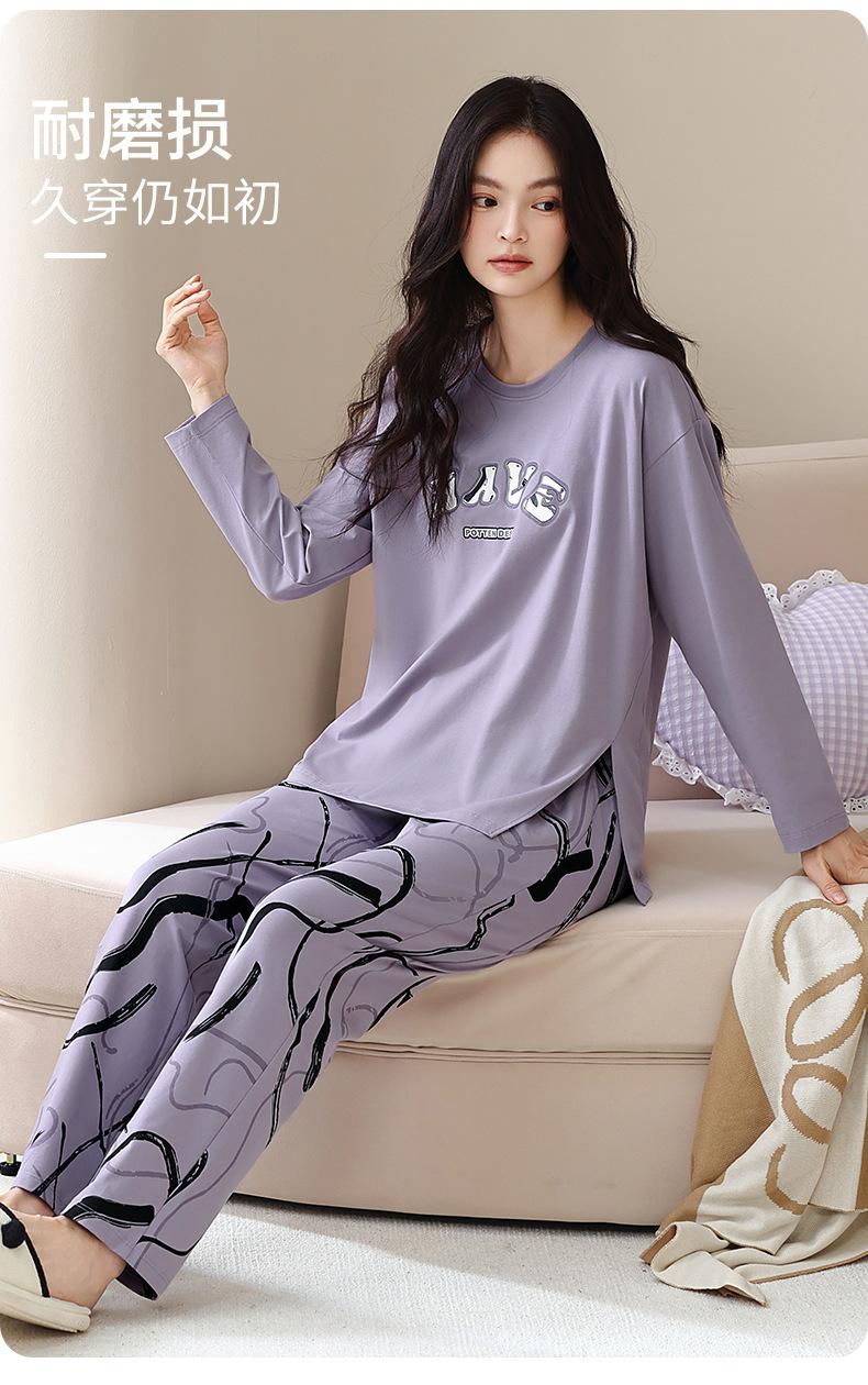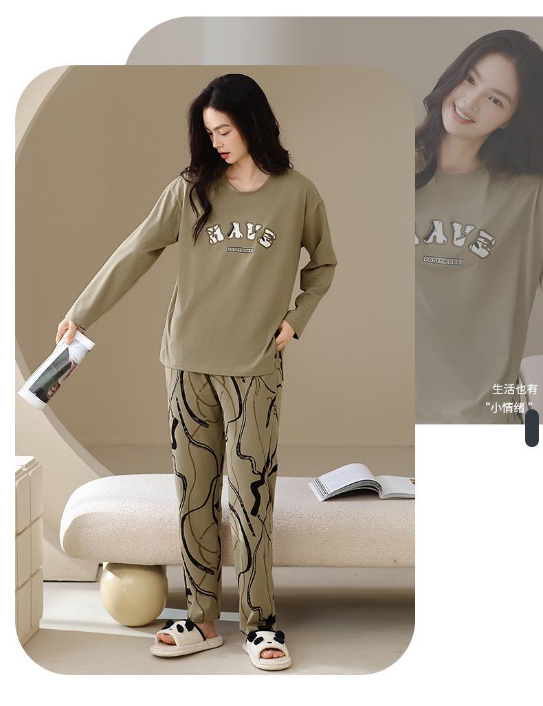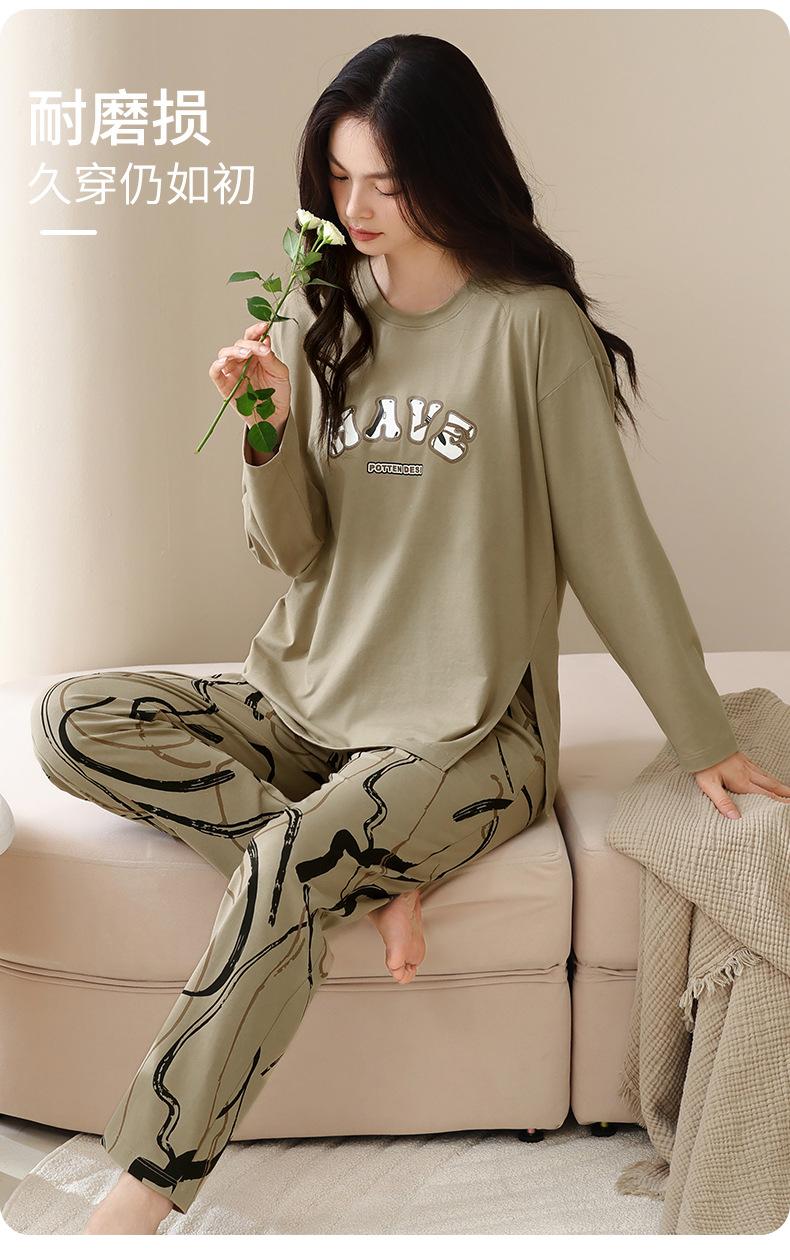 Pijamas de Manga Larga para Mujer Otoño Algodón Puro Jersey Estilo Coreano Viento Perezoso Ropa de Hogar Otoño Pijamas de Talla Grande para Mujer