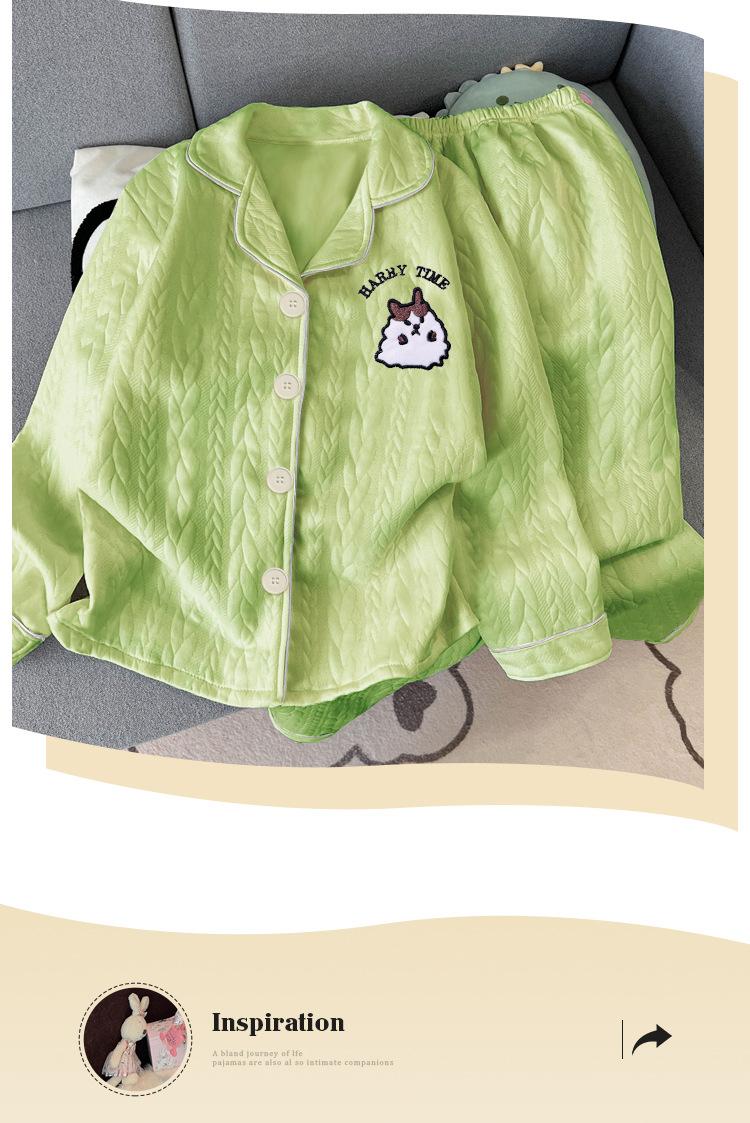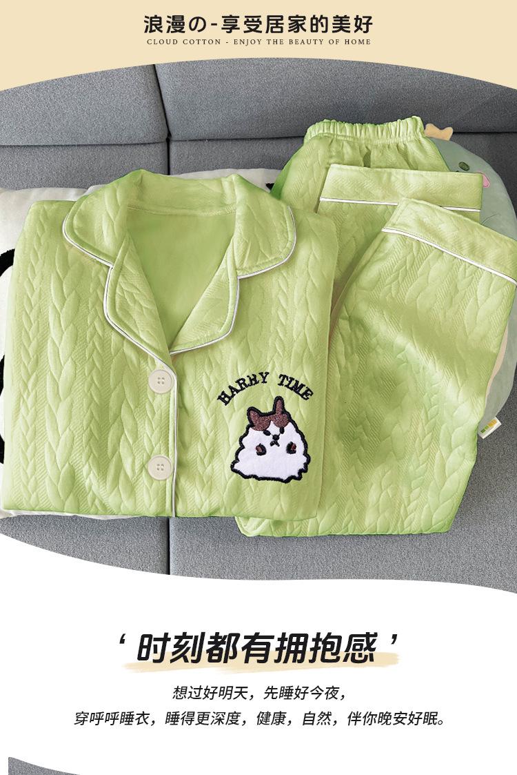 Pijama de algodón aireado con entretela cálida de alta gama estilo coreano viento ins otoño e invierno para mujer ropa de casa conjunto casual al por mayor