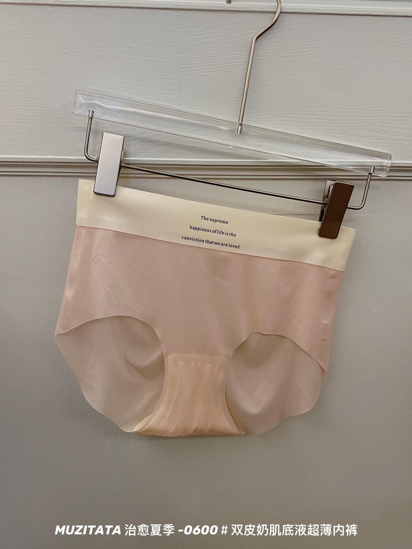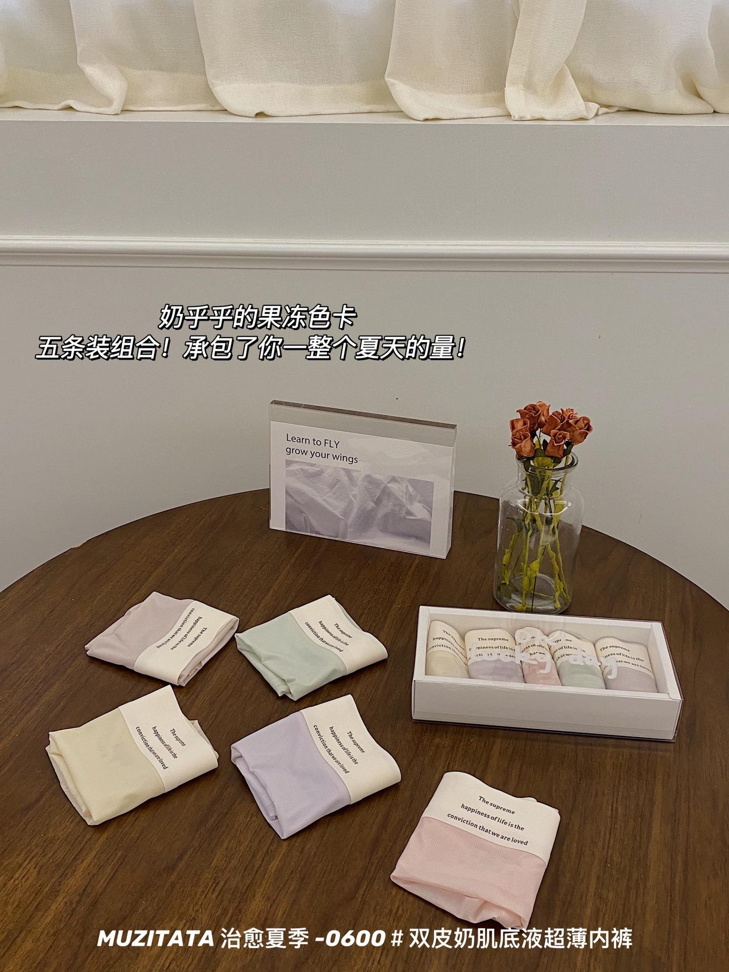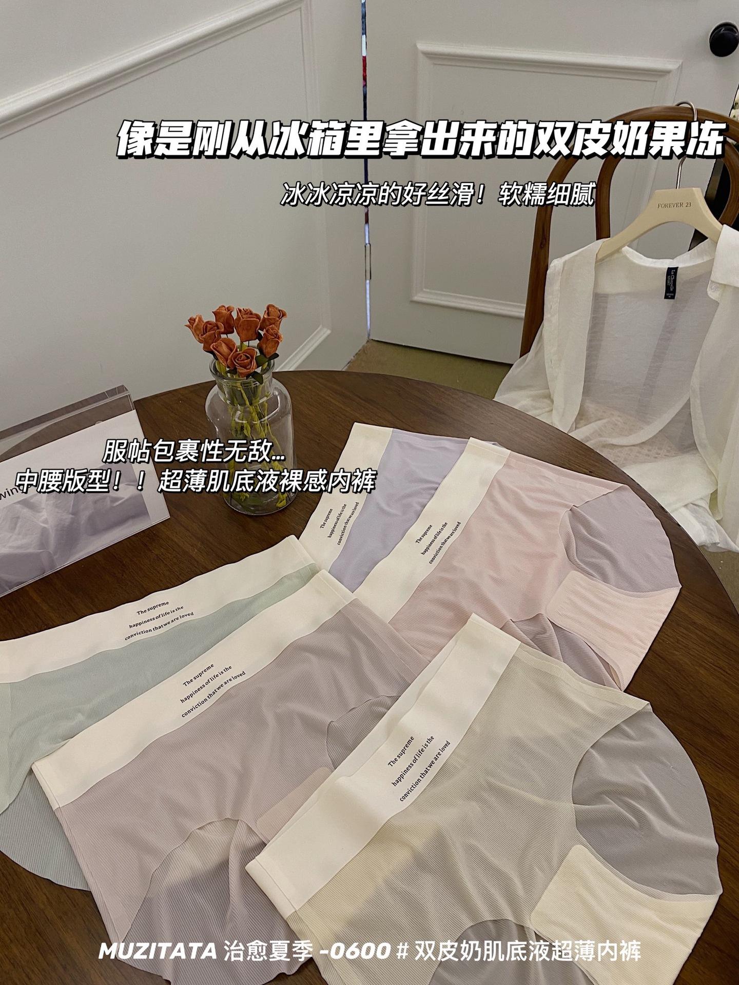 Paquete de 5 Verano Doble Cuero Leche Músculo Trasero Líquido Bragas Ultrafinas Menos Color de Contraste para Mujer Cintura Media Sin Marcas Cadera Durazno