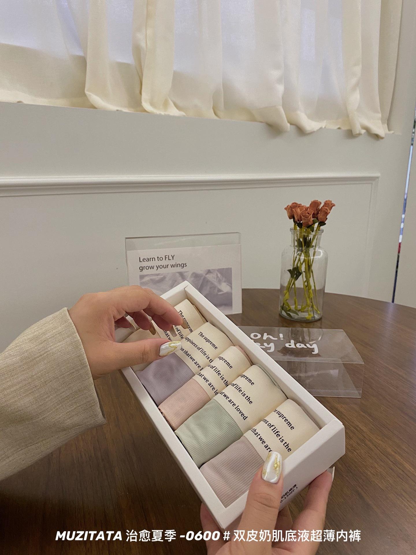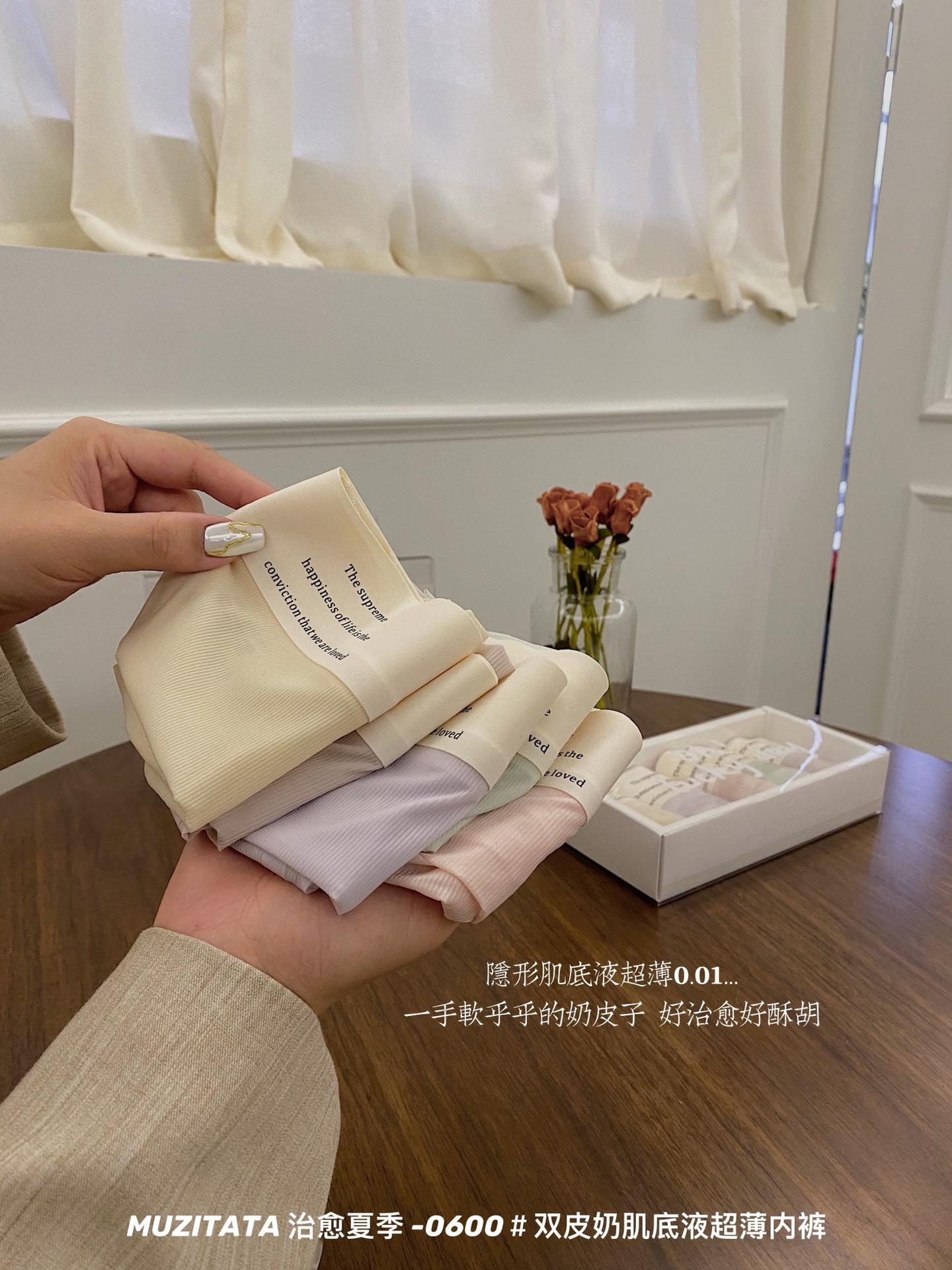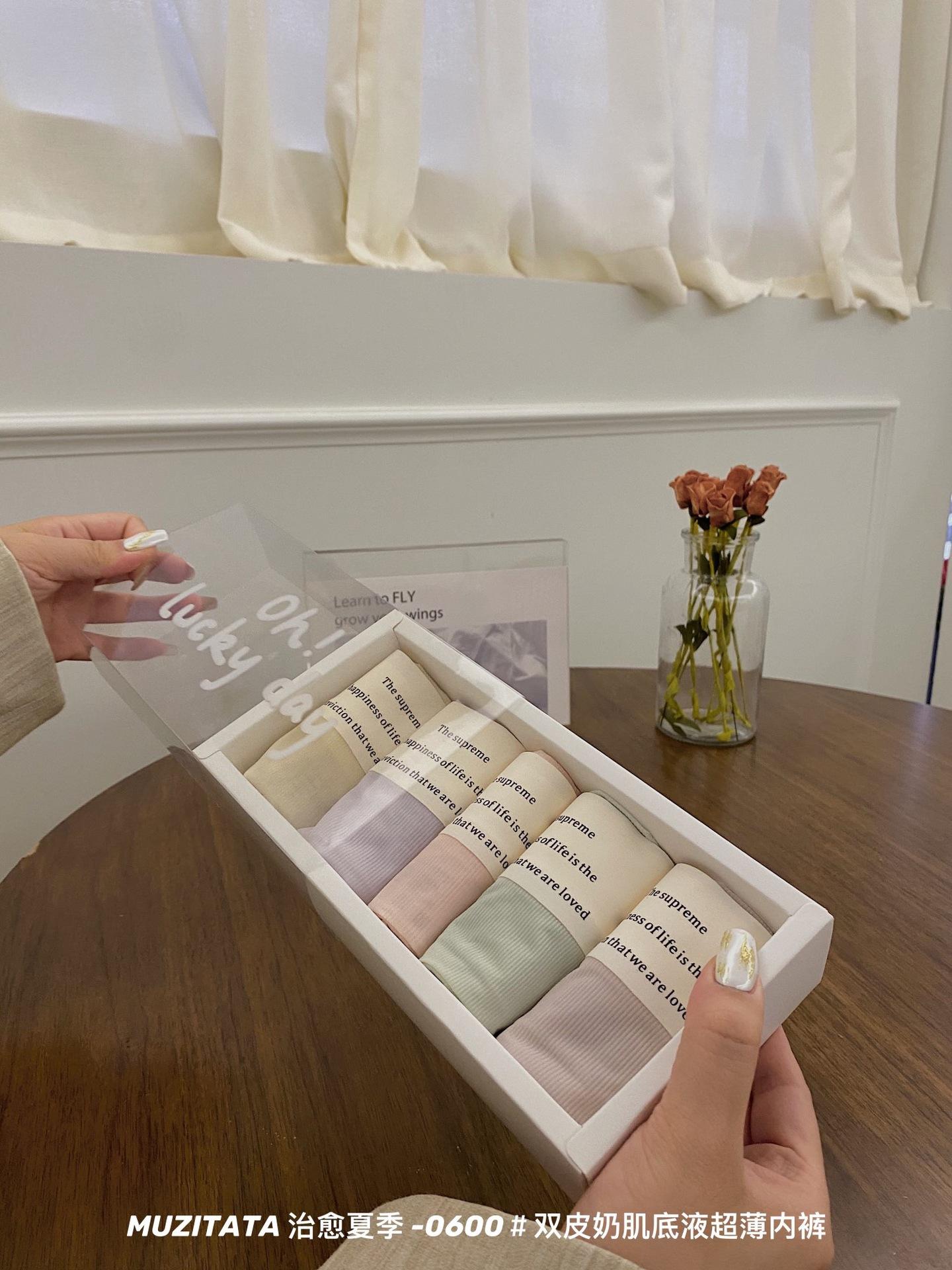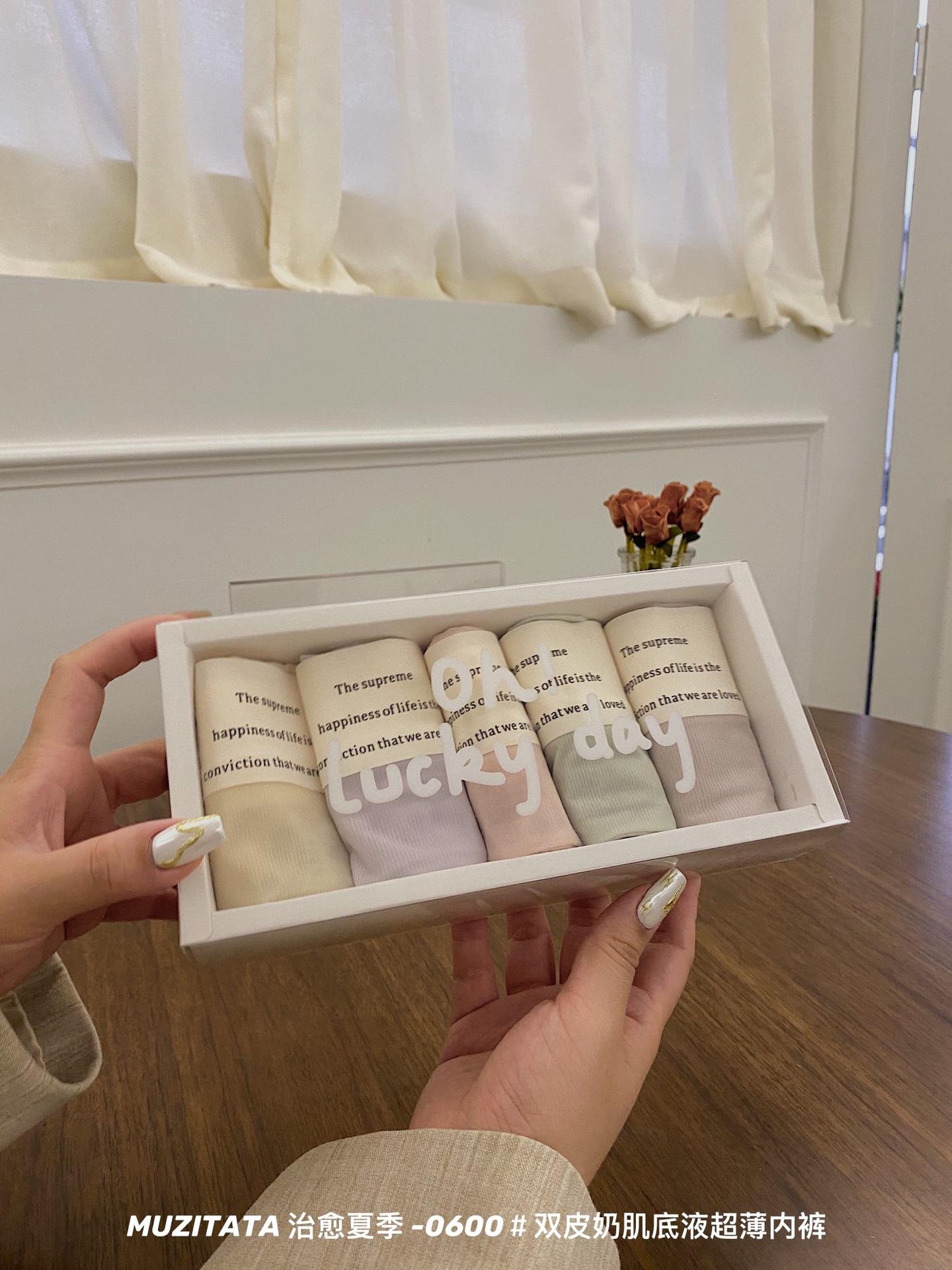 Paquete de 5 Verano Doble Cuero Leche Músculo Trasero Líquido Bragas Ultrafinas Menos Color de Contraste para Mujer Cintura Media Sin Marcas Cadera Durazno