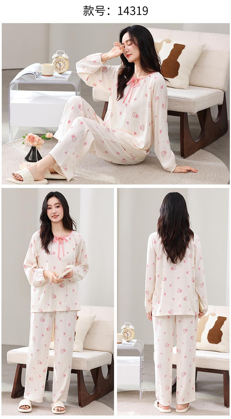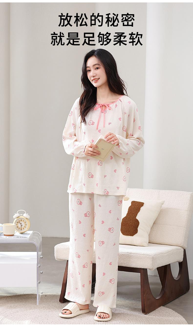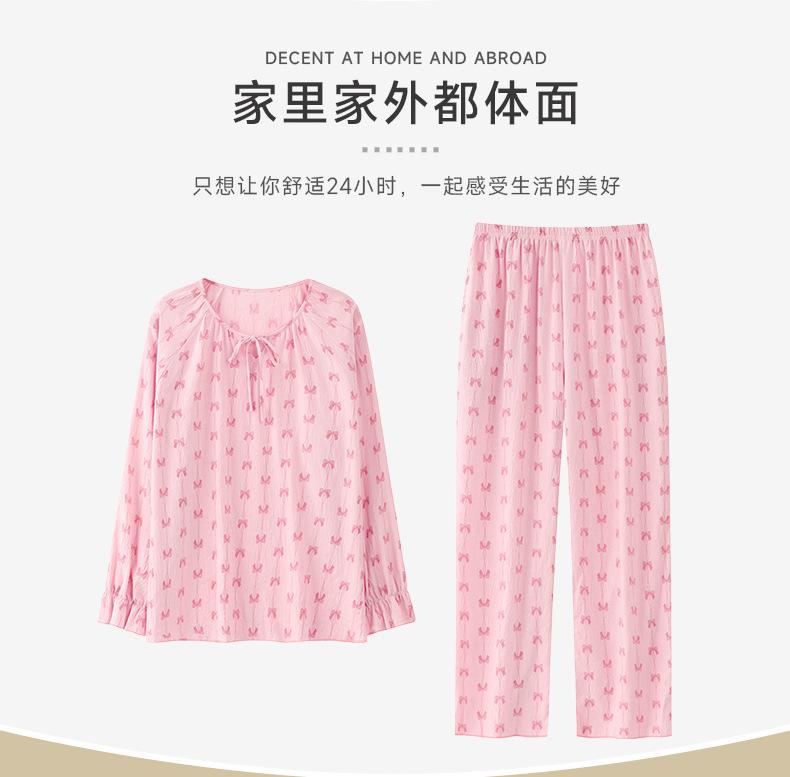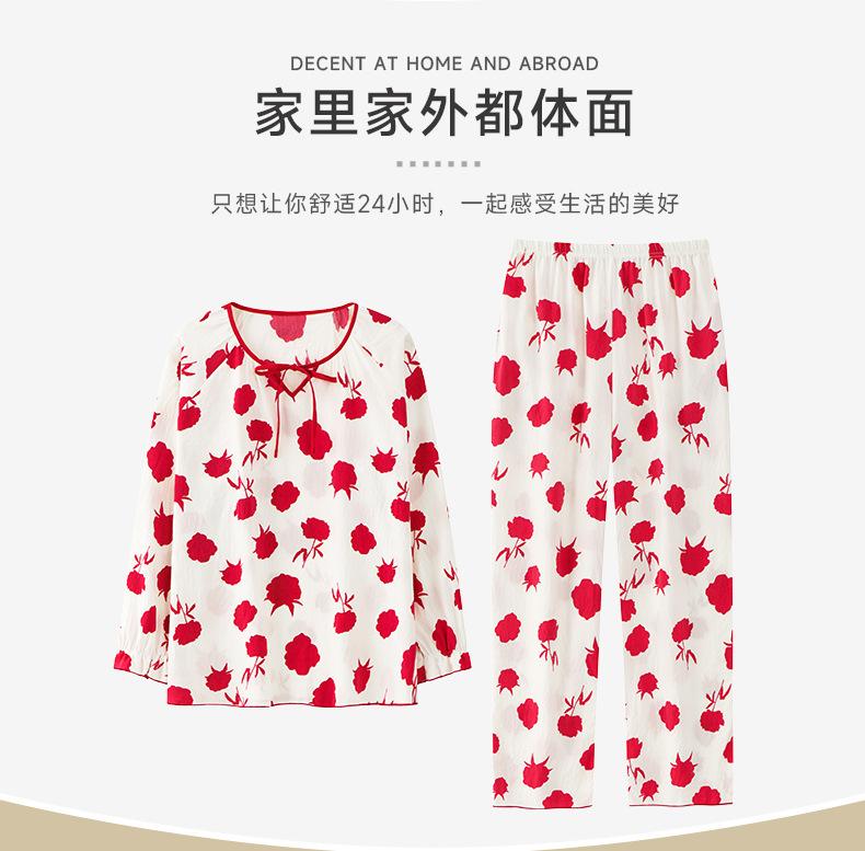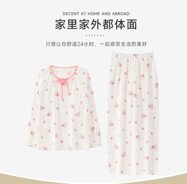 Fabricante Otoño Nuevo Producto En Stock Venta Directa Pijama de Mujer Casual Simple Suelto Cómodo Cuello Redondo Se Puede Usar Afuera Ropa para el Hogar