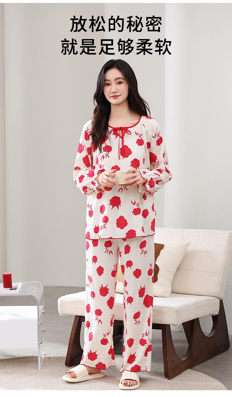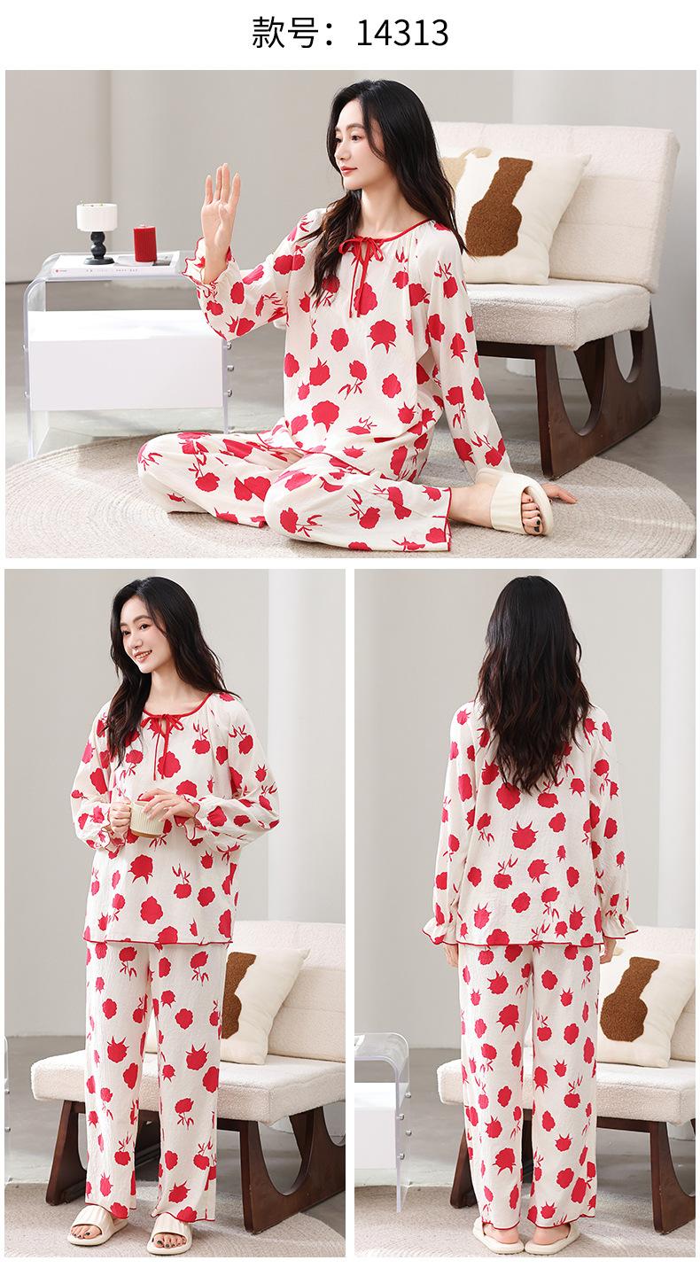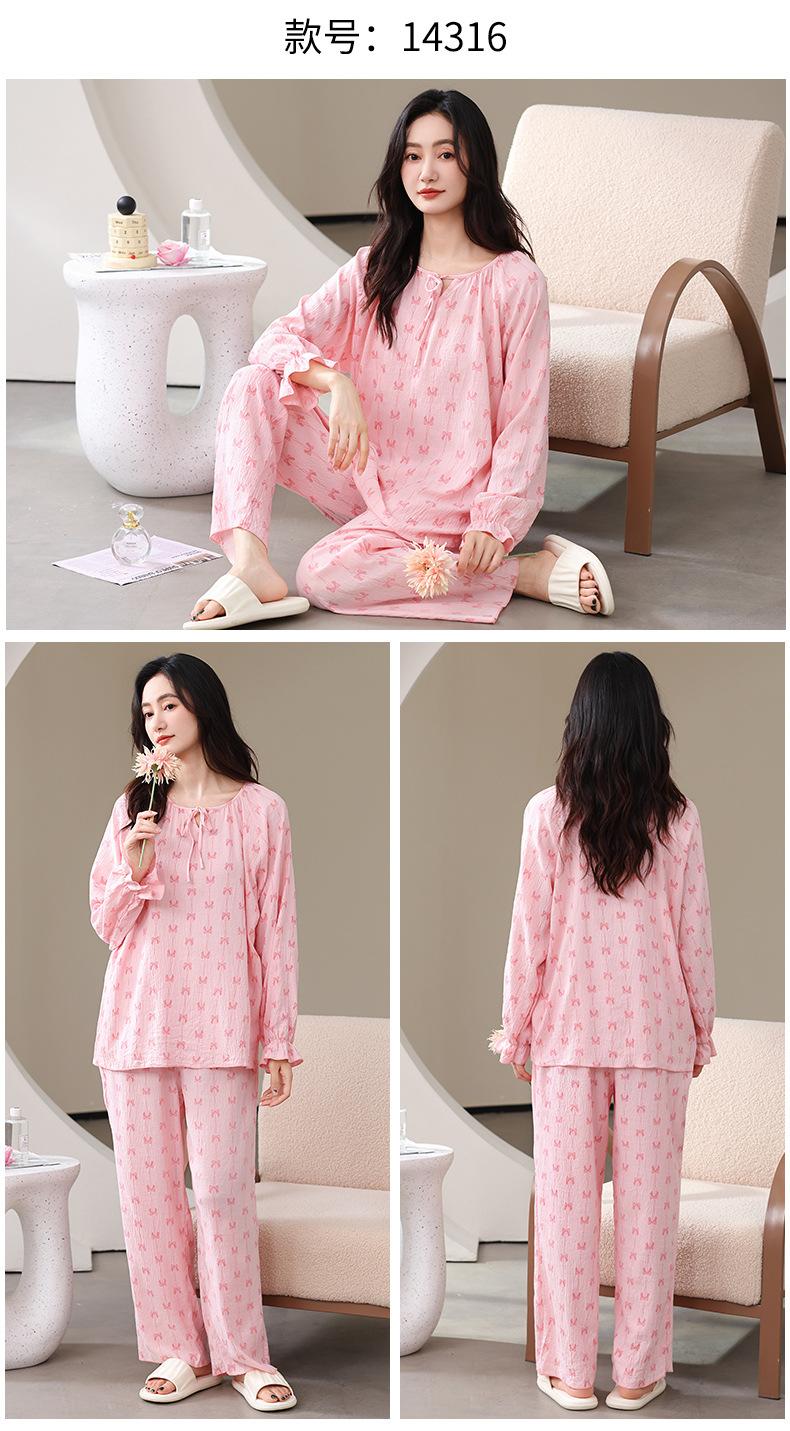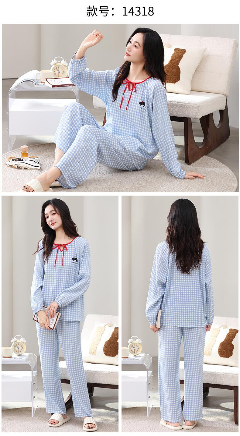 Fabricante Otoño Nuevo Producto En Stock Venta Directa Pijama de Mujer Casual Simple Suelto Cómodo Cuello Redondo Se Puede Usar Afuera Ropa para el Hogar