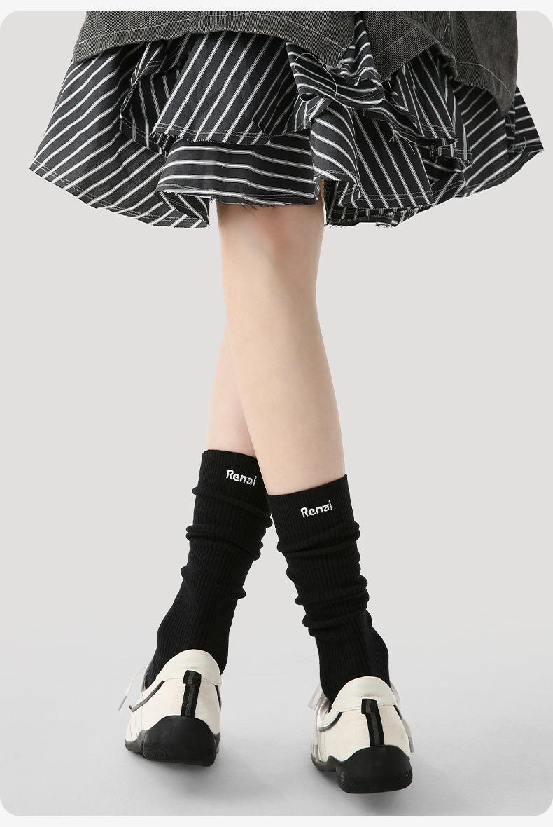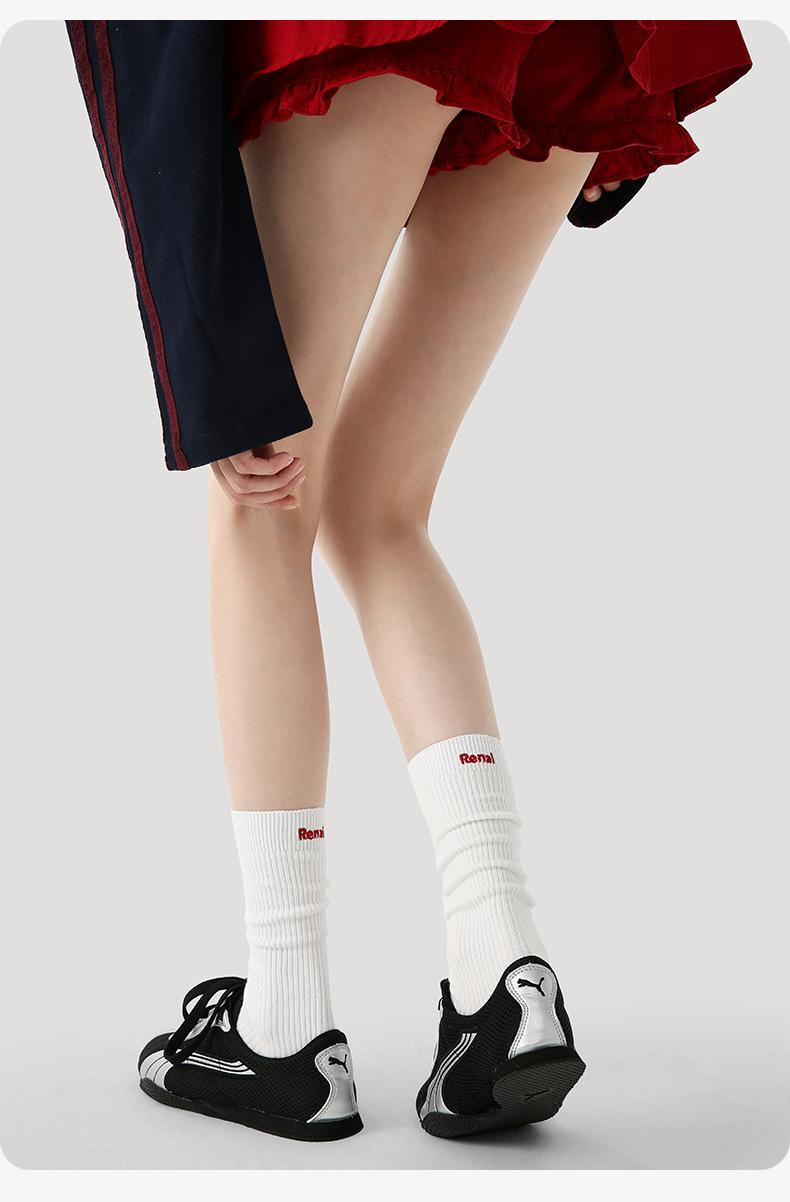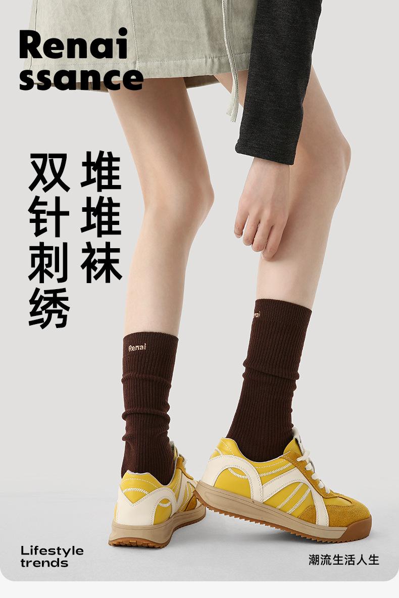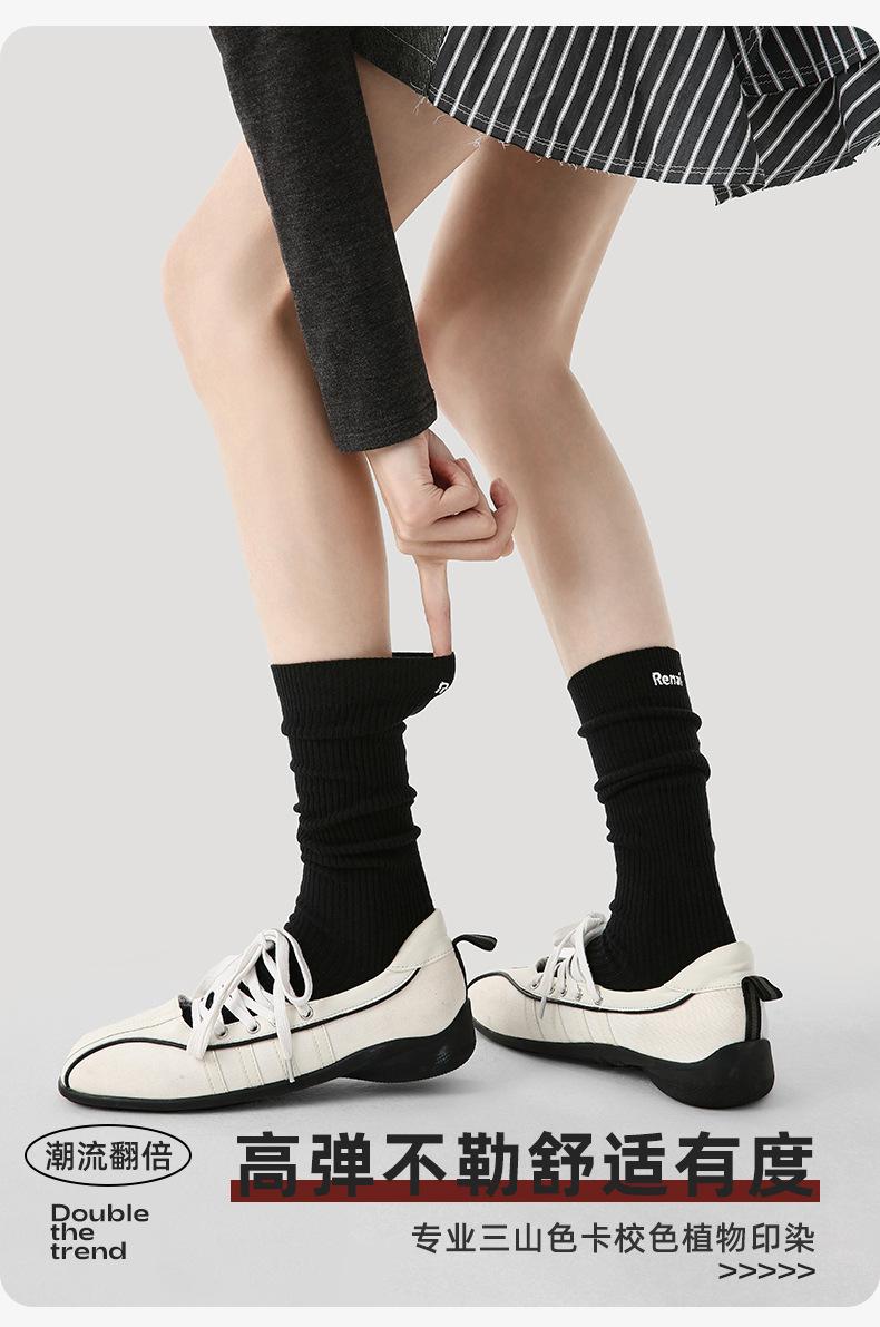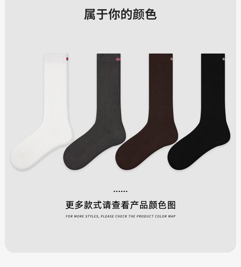 Renacimiento nuevos calcetines de media caña de otoño e invierno color sólido doble aguja calcetines holgados bordado estilo femenino ins calcetines de moda de mujer