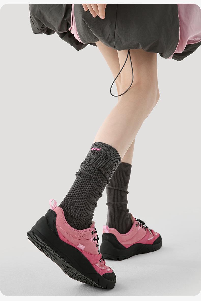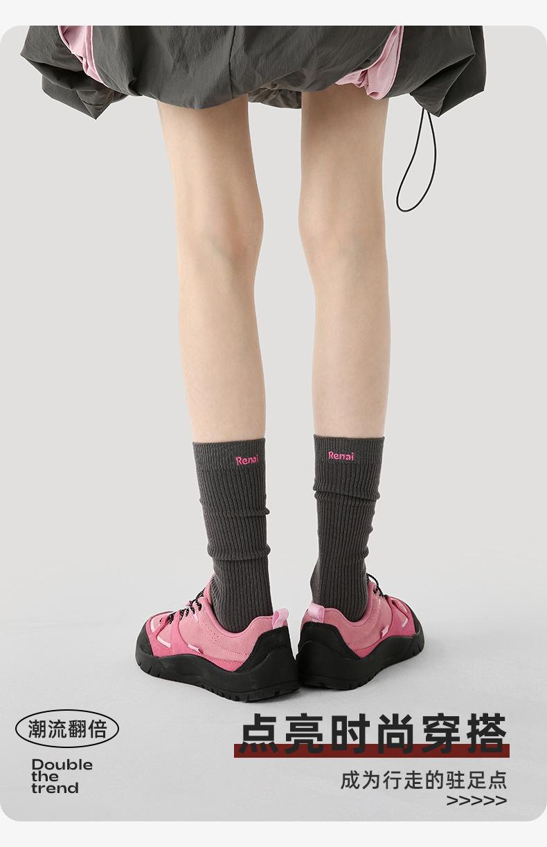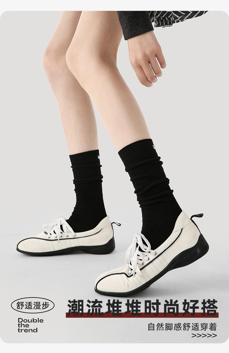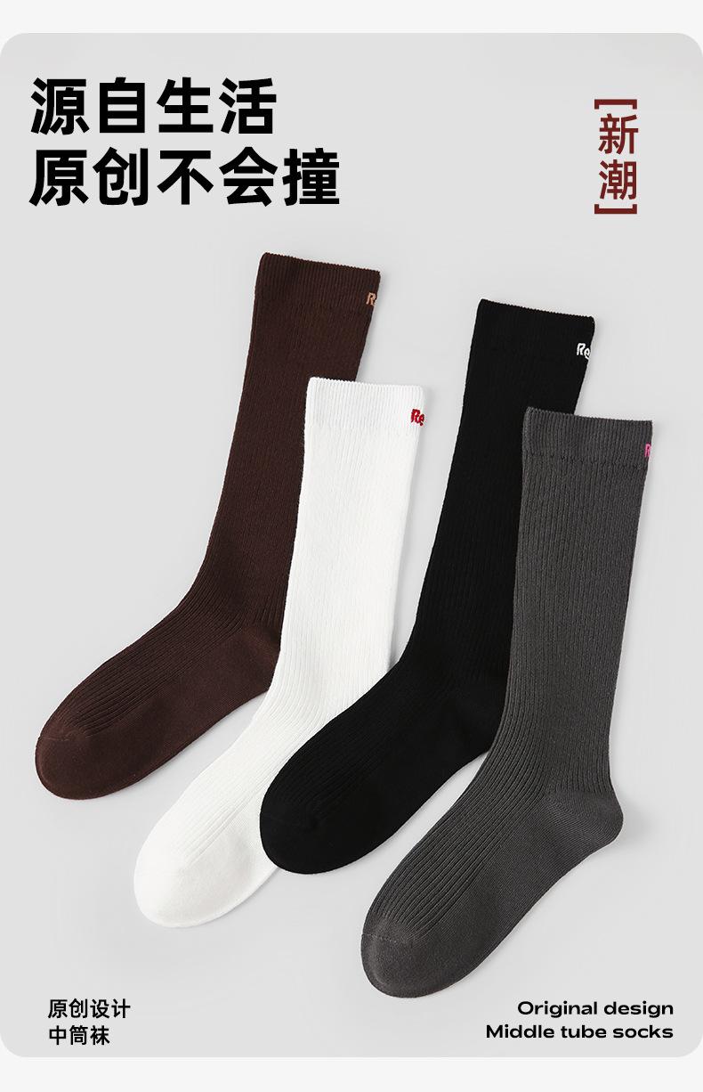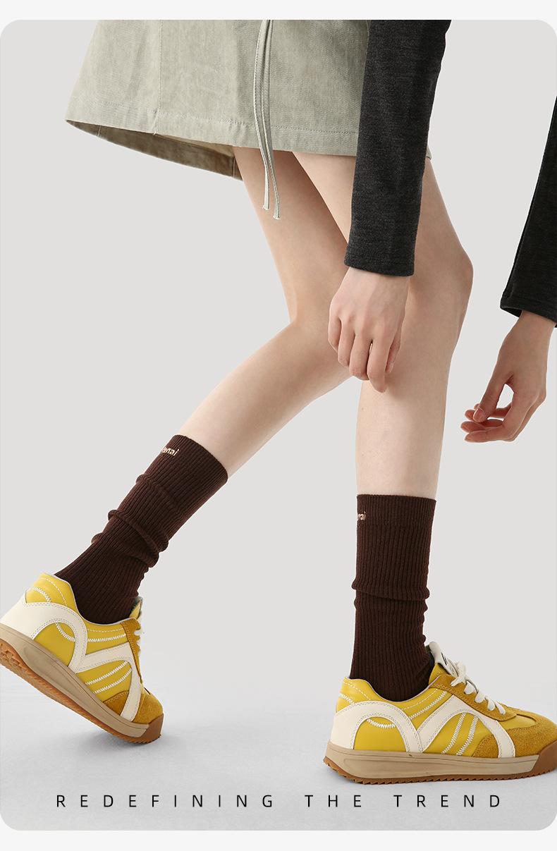 Renacimiento nuevos calcetines de media caña de otoño e invierno color sólido doble aguja calcetines holgados bordado estilo femenino ins calcetines de moda de mujer