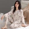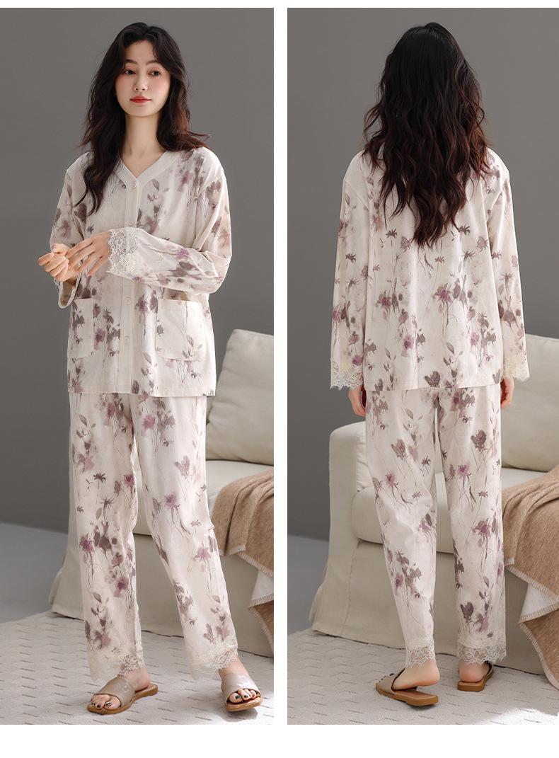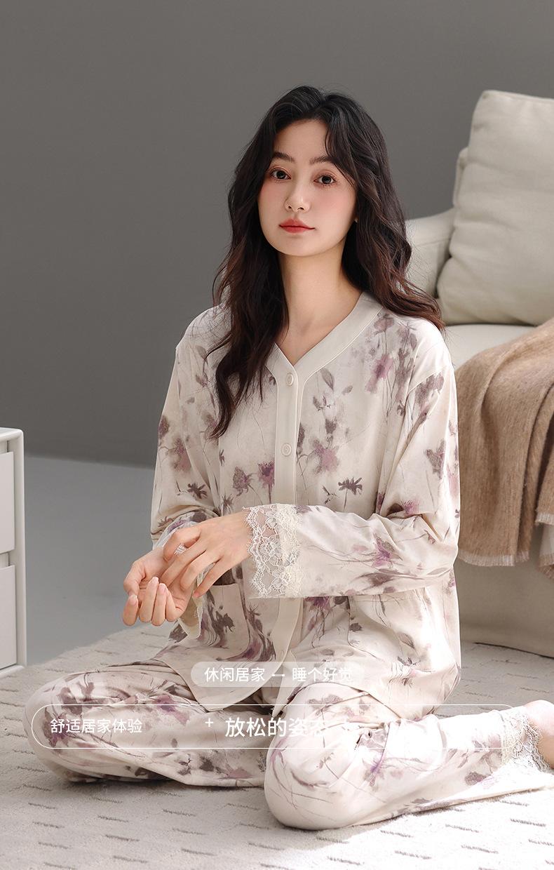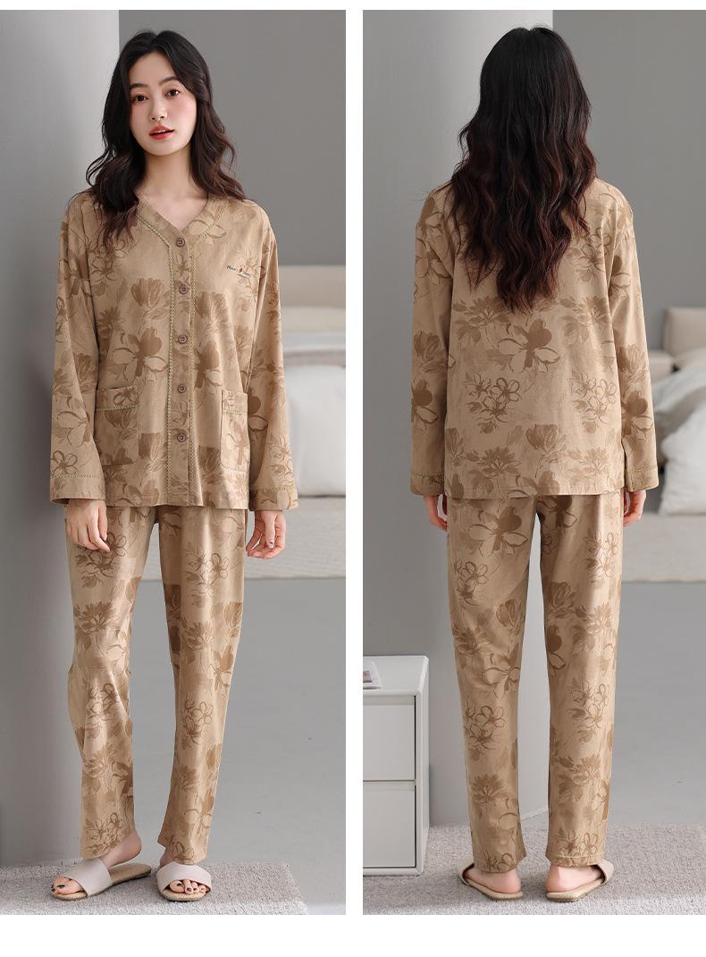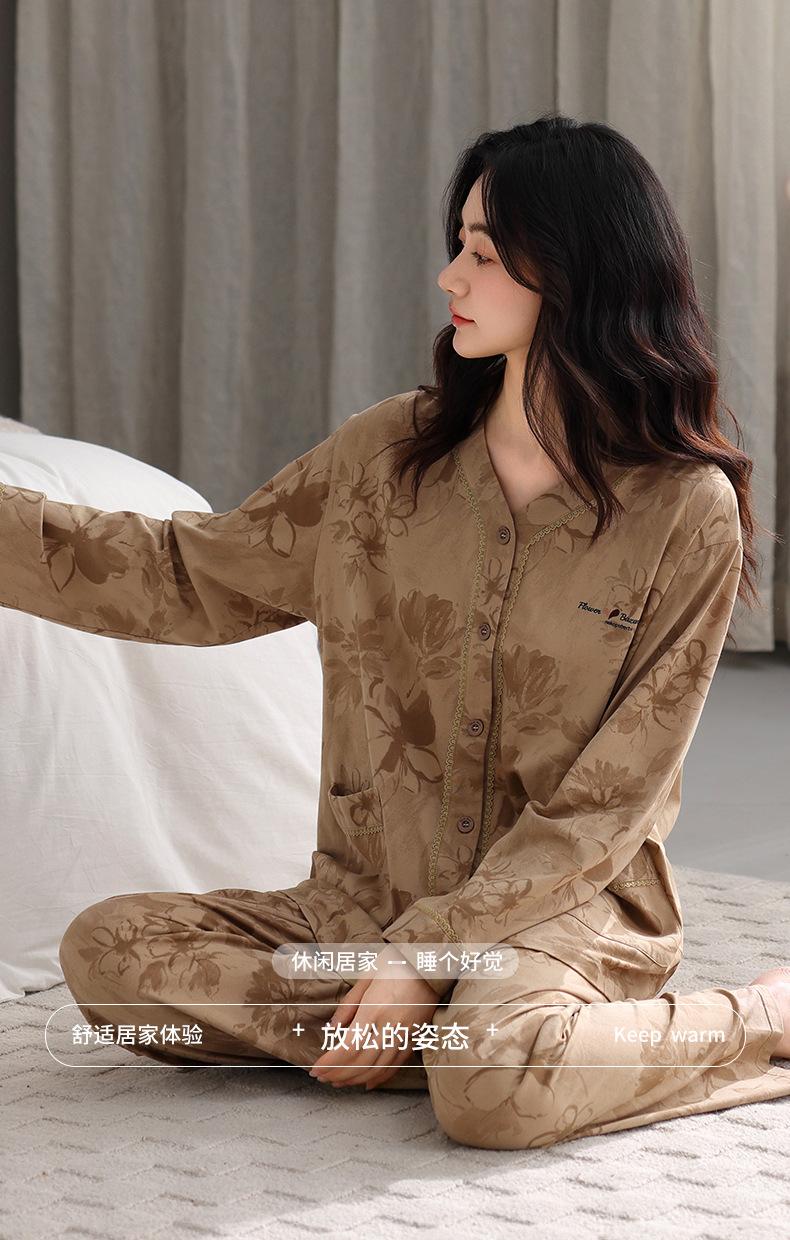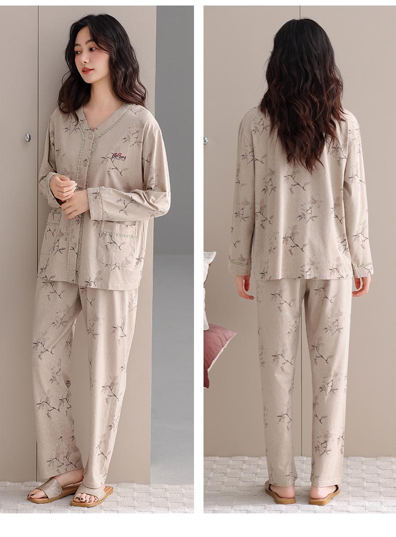 Producto Nuevo de Otoño del Fabricante Venta Directa al Contado Pijama de Mujer Suelto Cómodo Casual Sencillo Cárdigan Manga Larga Pantalón Ropa de Casa