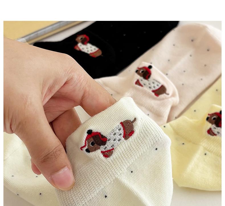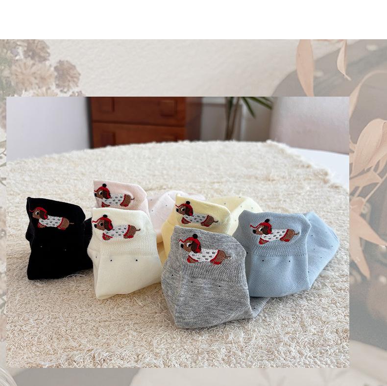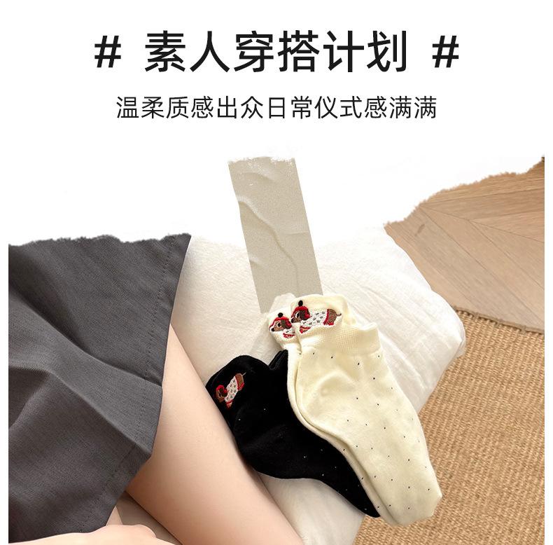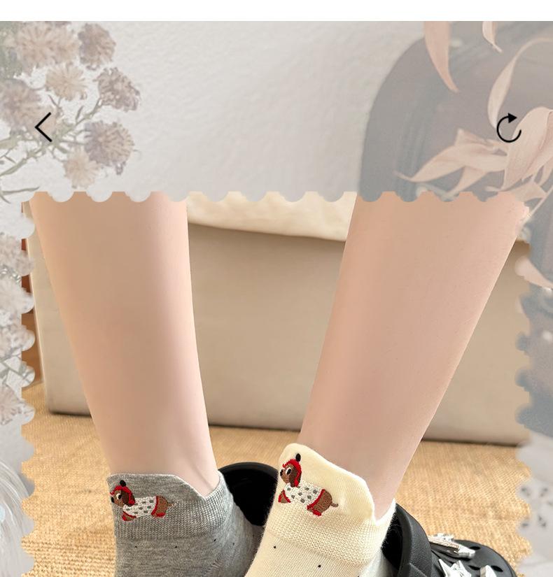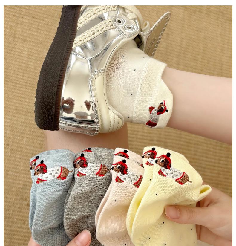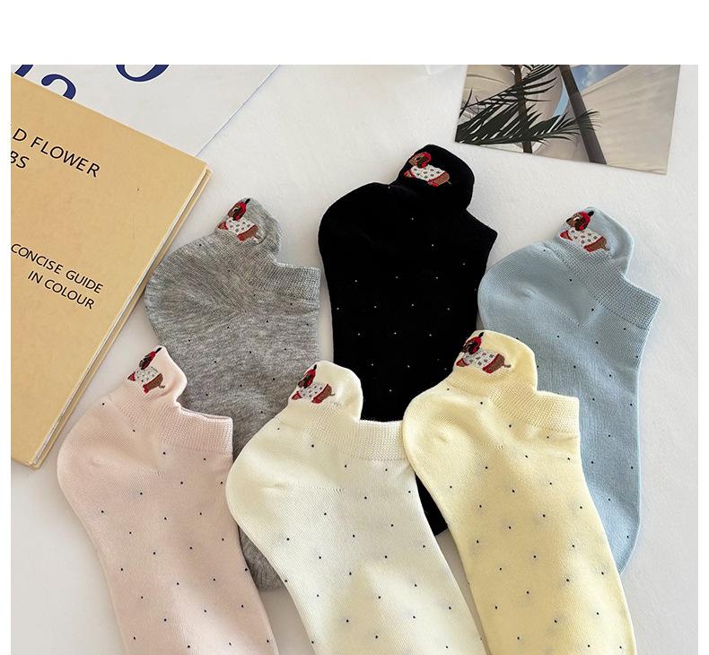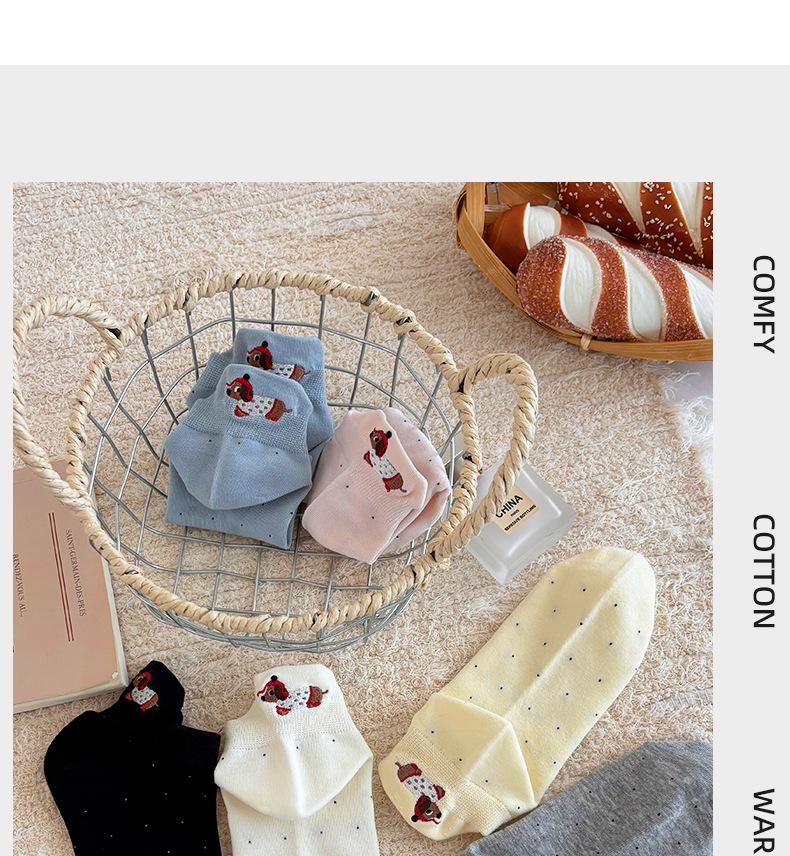 Calcetines Cortos Bordados de Cachorro Lindo para Mujer Delgados Transpirables Antibacterianos Estilo Caliente Estilo Ins Calcetines de Moda Verano Lunares Calcetines Cortos