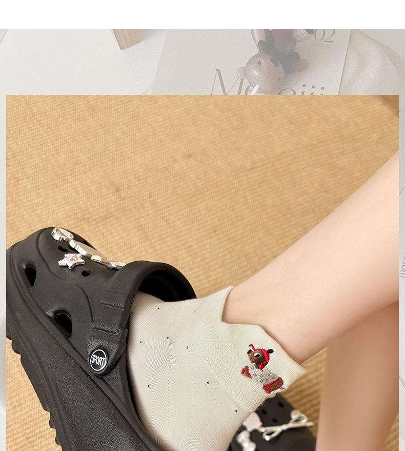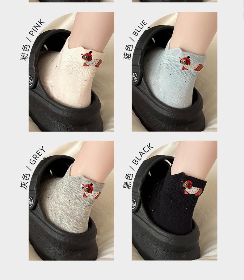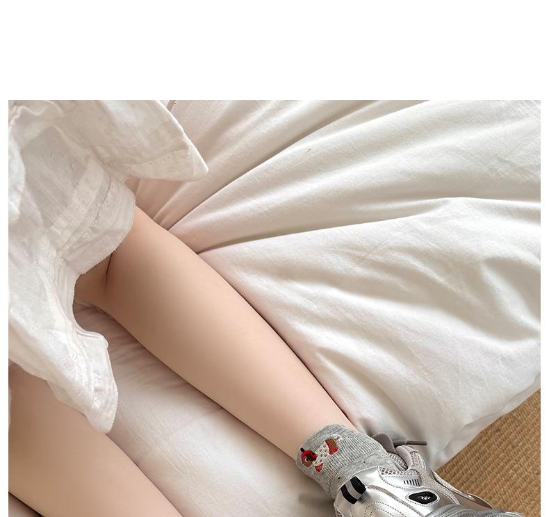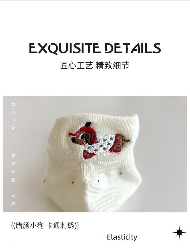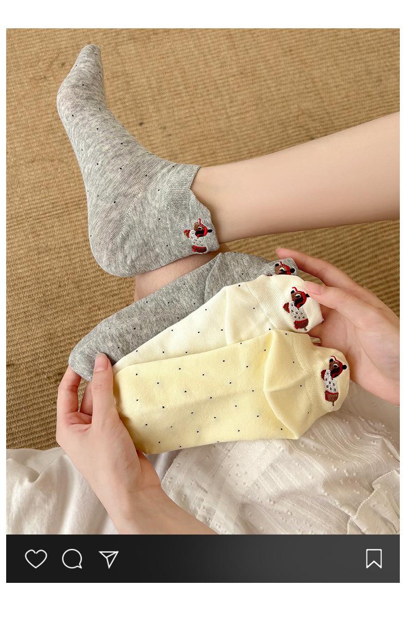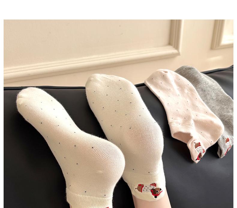 Calcetines Cortos Bordados de Cachorro Lindo para Mujer Delgados Transpirables Antibacterianos Estilo Caliente Estilo Ins Calcetines de Moda Verano Lunares Calcetines Cortos